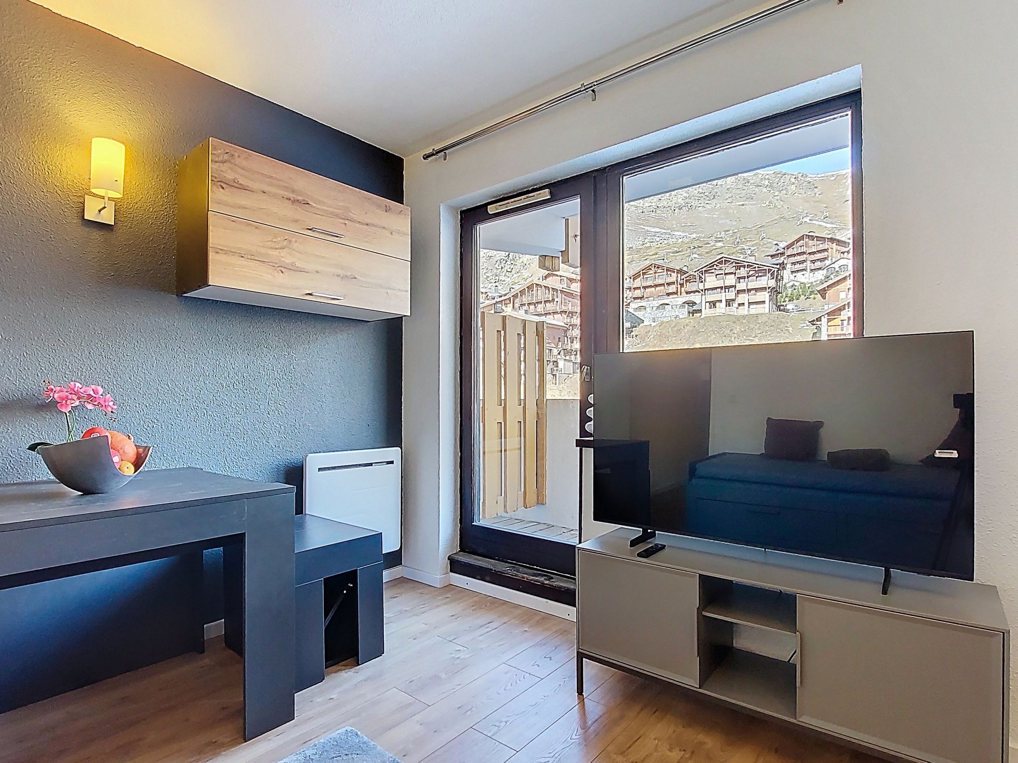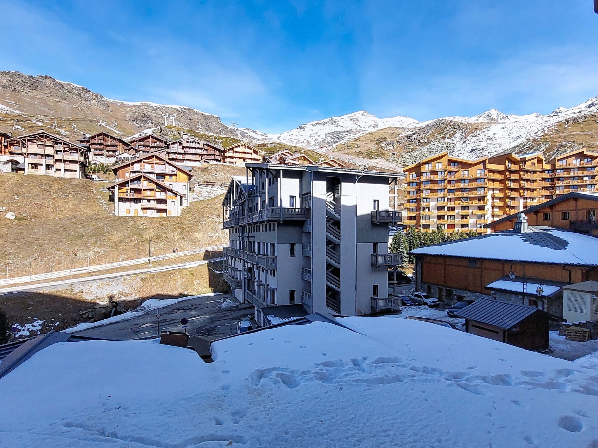 Residence "Les Olympiades", 7 storeys. In the centre of Val Thorens, in the resort, in a central, busy, sunny position in the residential district, 100 m from the skiing area. In the complex: lift, storage room for skis. In Winter: please take snow chains. Public car park at 50 m, extra. E-charging station. Shop, grocery, supermarket, shopping centre, restaurant 5 m, bar 50 m, bakery, café 5 m, pedestrian zone 2 m, bus stop "navette gratuit" 200 m, outdoor swimming pool 50 m. Sports centre 10 m, cable car 150 m, chair lift 50 m, gondola lift 10 m, slopes 50 m, ski rental 5 m, ski bus stop 150 m, ski school 100 m, ice rink 500 m. Nearby attractions: Centre Sportif 100 m. Well-known ski regions can easily be reached: domaine des 3 Vallées 100 m, Val Thorens – Orelle 100 m. Well-known lakes can easily be reached: Lac du Lou 800 m, Lac du Menuires 600 m. Please note: entertainment in the season. Suitable for families, baby equipment on request (extra). The owner does not accept any youth groups. Ski bus (free of charge). In case of good snow conditions, the house is accessible on skis. The apartment is located in a zone with limited traffic. Additional accommodations can be booked.