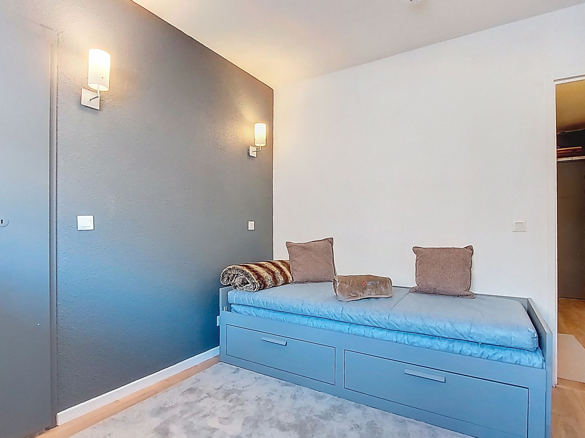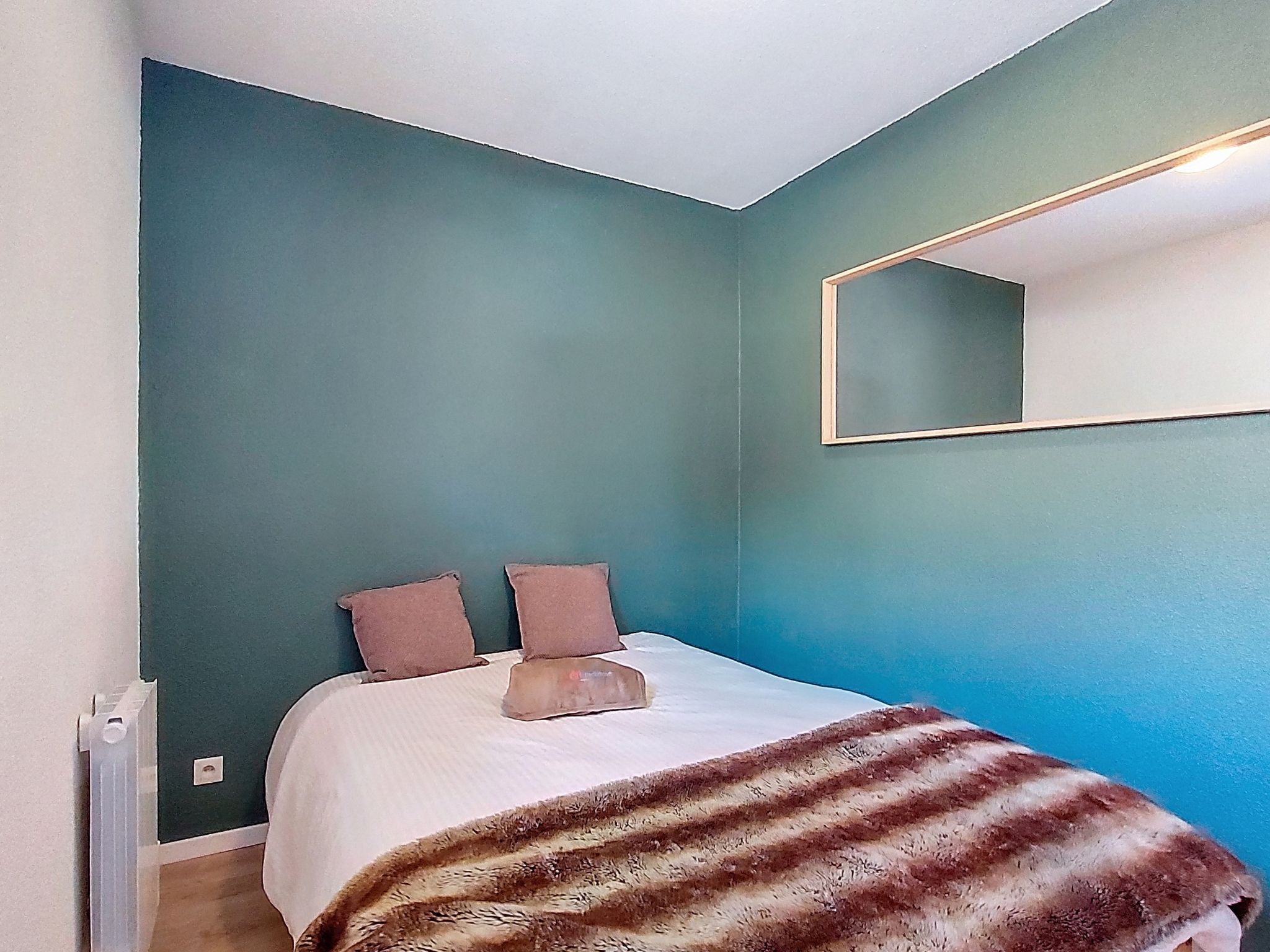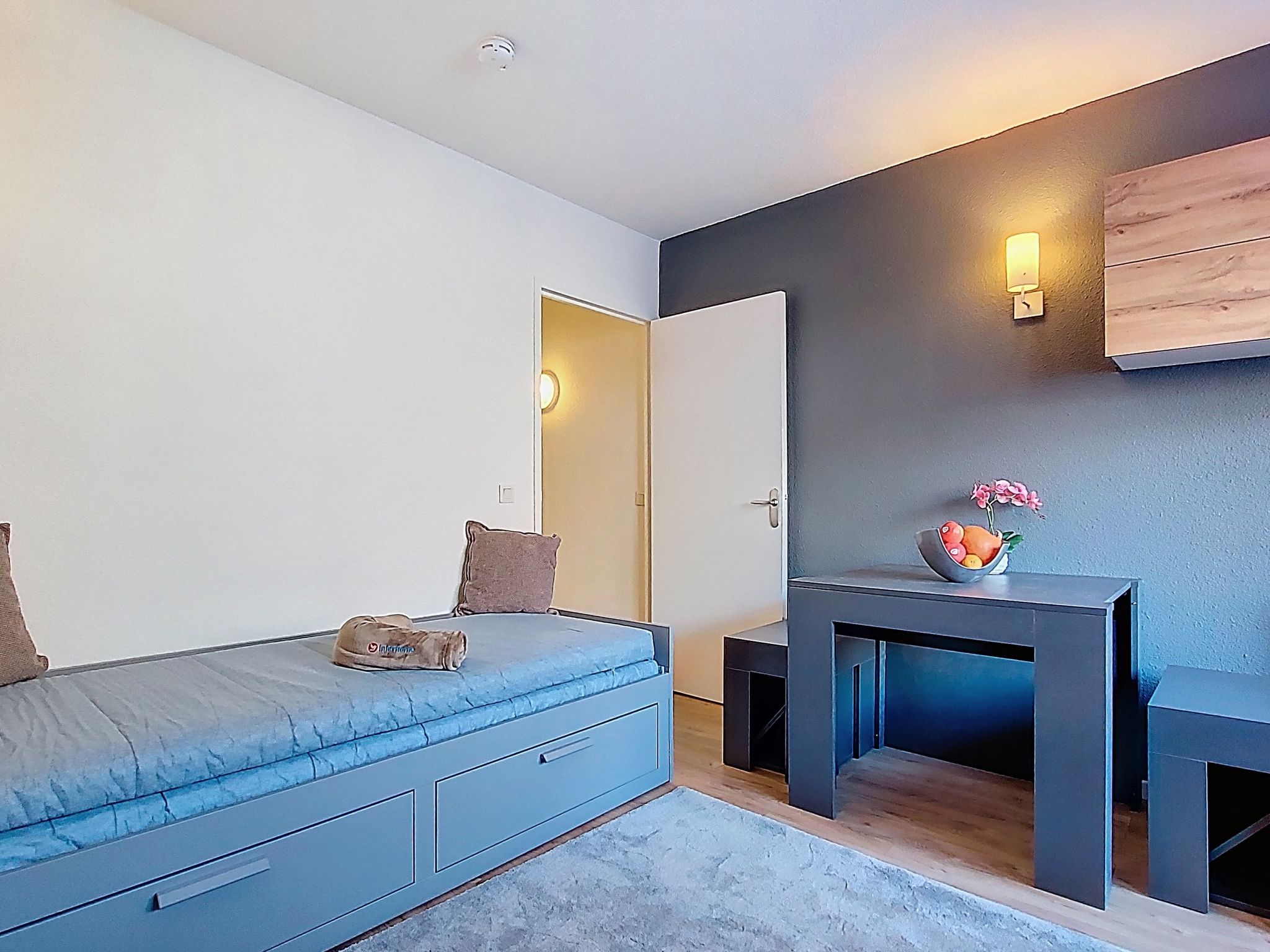 2-room apartment 25 m2 on 1st floor, north facing position. Partly renovated in 2025, practical and beautiful furnishings: living/dining room with 1 pull-out bed (1 pers. 2 x 80 cm, length 190 cm), dining table and TV (flat screen), electric heating. Entrance hall with kitchen corner. 1 large room with 1 double bed (1 x 140 cm, length 190 cm), electric heating. Kitchenette (2 hot plates, dishwasher, toaster, kettle, electric coffee machine). Bathroom, sep. WC. Parquet floors. Small balcony 3 m2. Beautiful view of the mountains, the valley, the ski run and the resort. Facilities: Internet (WiFi, extra). Please note: non-smokers only. Offer by a private individual according to Art. 155, IV of CGI.