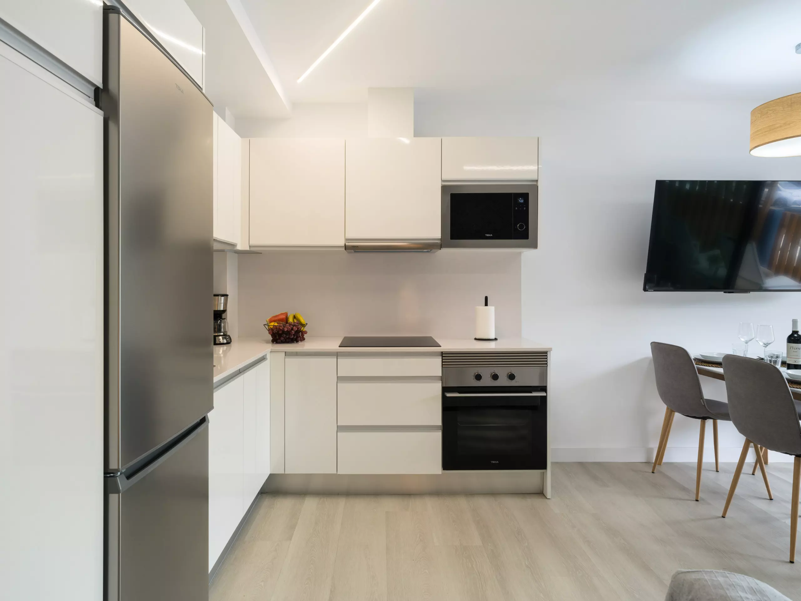 The fully equipped American-style kitchen is a major highlight of the accommodation. You'll find state-of-the-art appliances such as a washing machine, dishwasher, oven, microwave, coffee maker, toaster, kettle, and juicer. Furthermore, it has all the necessary cooking utensils to prepare delicious meals during your stay.