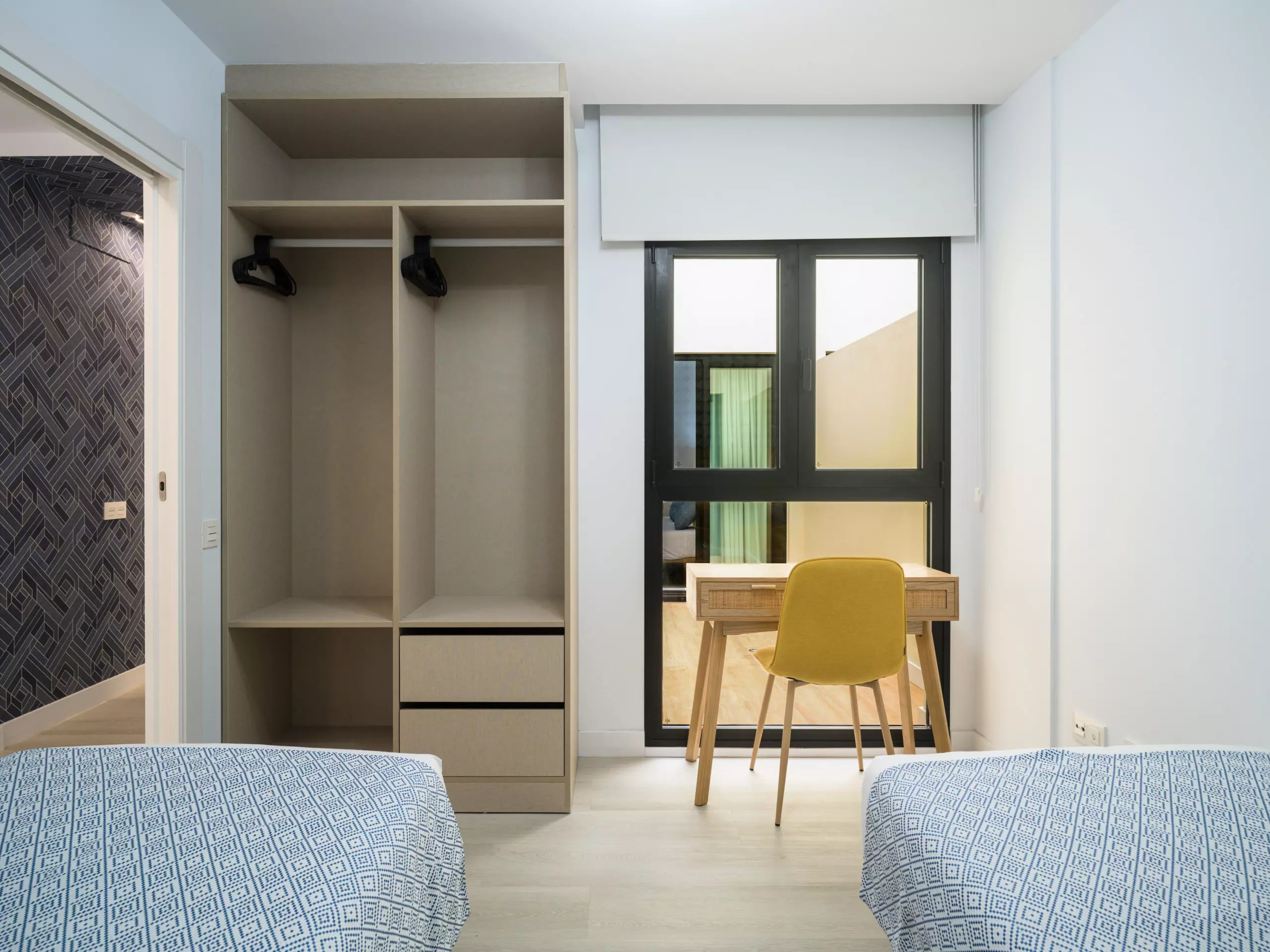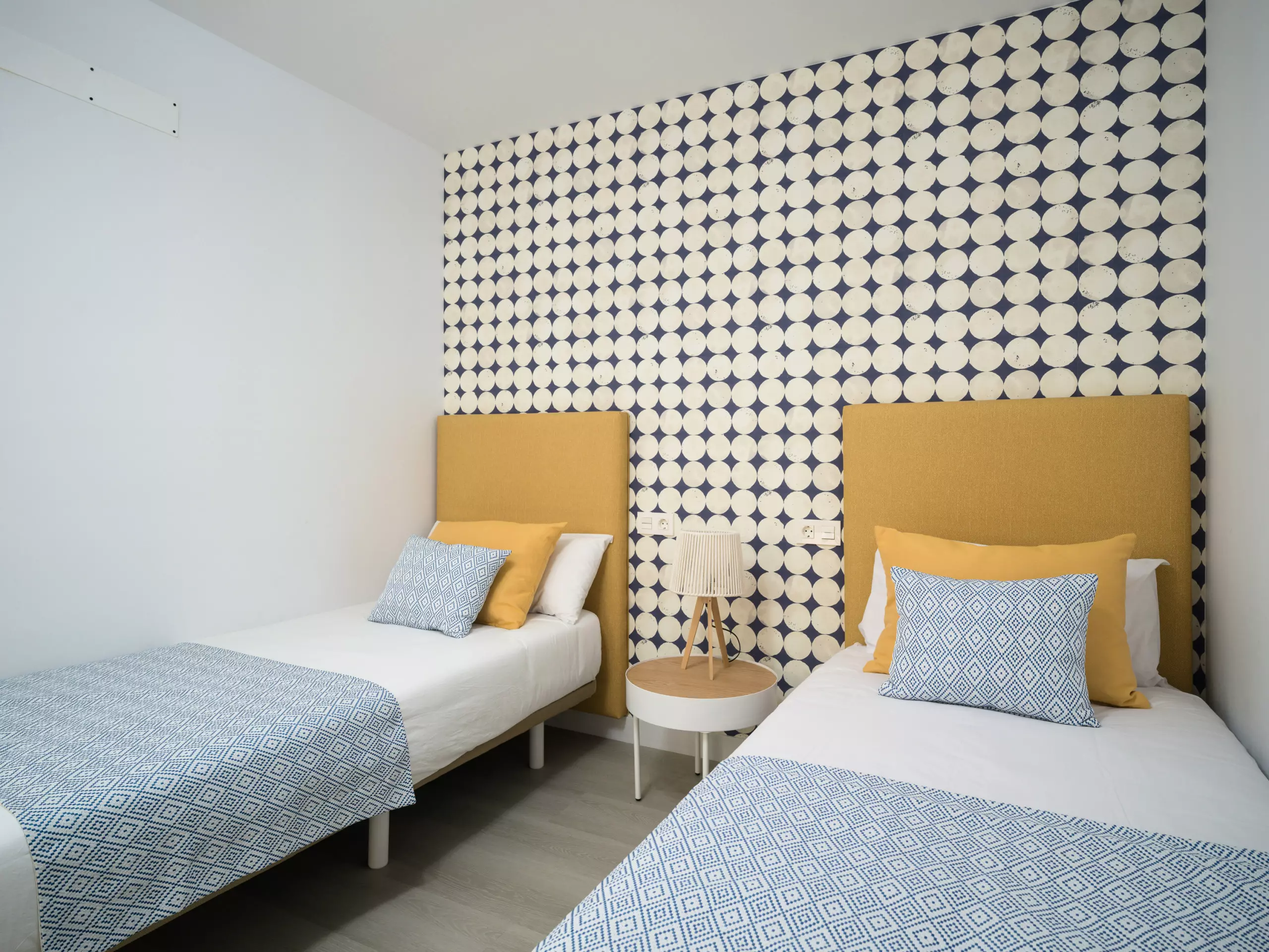 The accommodation features two bedrooms: one with a king-size bed and the other with two single beds, ideal for up to four people. The spacious layout ensures comfort for all guests. It has a single full bathroom with a shower, equipped with water-saving features.