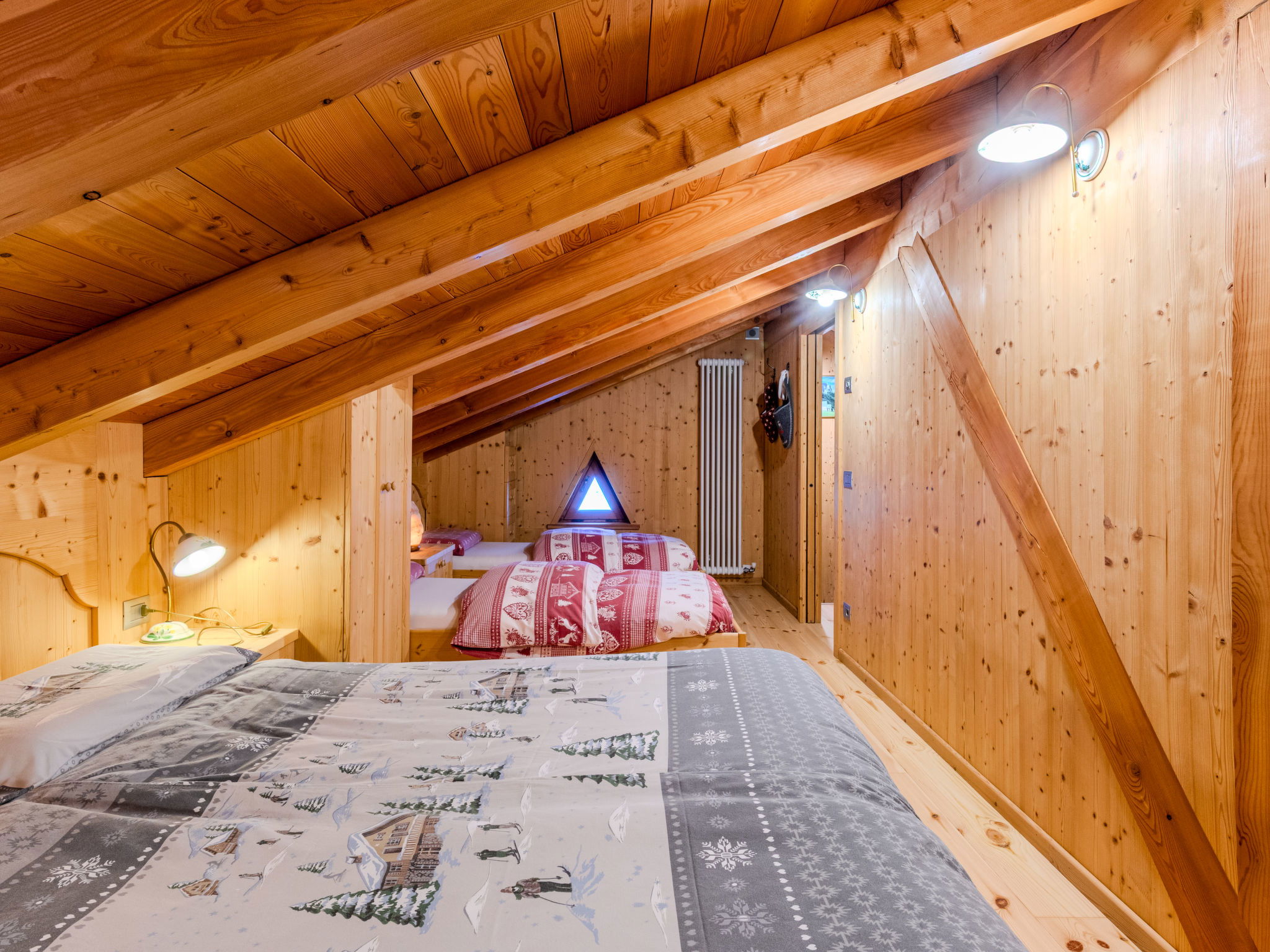 "Maset Pozzati", 4-room chalet 150 m2 on 3 levels, on the ground floor. Spacious and bright, comfortable and wooden furniture furnishings: dining room with dining table. Exit to the garden, to the patio. Open kitchen (oven, dishwasher, Gas stove, 4 gas rings, toaster, kettle, freezer) with bar. Exit to the garden, to the patio. Shower/bidet/WC, Hammam-Shower. Gas heating, wood heating, floor heating. Upper floor: living room. Exit to the balcony. 1 double bedroom. Bathroom. Gas heating. 2nd upper floor: 1 double bedroom. 1 room with 2 beds and 1 double bed. Wooden floors. Balcony 10 m2, patio 30 m2, roofed, large garden 400 m2, lawn. Barbecue, deck chairs, sitting area. Very beautiful panoramic view of the mountains and the countryside. Facilities: washing machine, iron, hair dryer, logs (free). Parking (4 cars). Please note: non-smoking house. Maximum 1 pet/ dog allowed. Private entrance, smoke alarm, fire extinguisher, no lift. IT022026C2WRIM2XEA