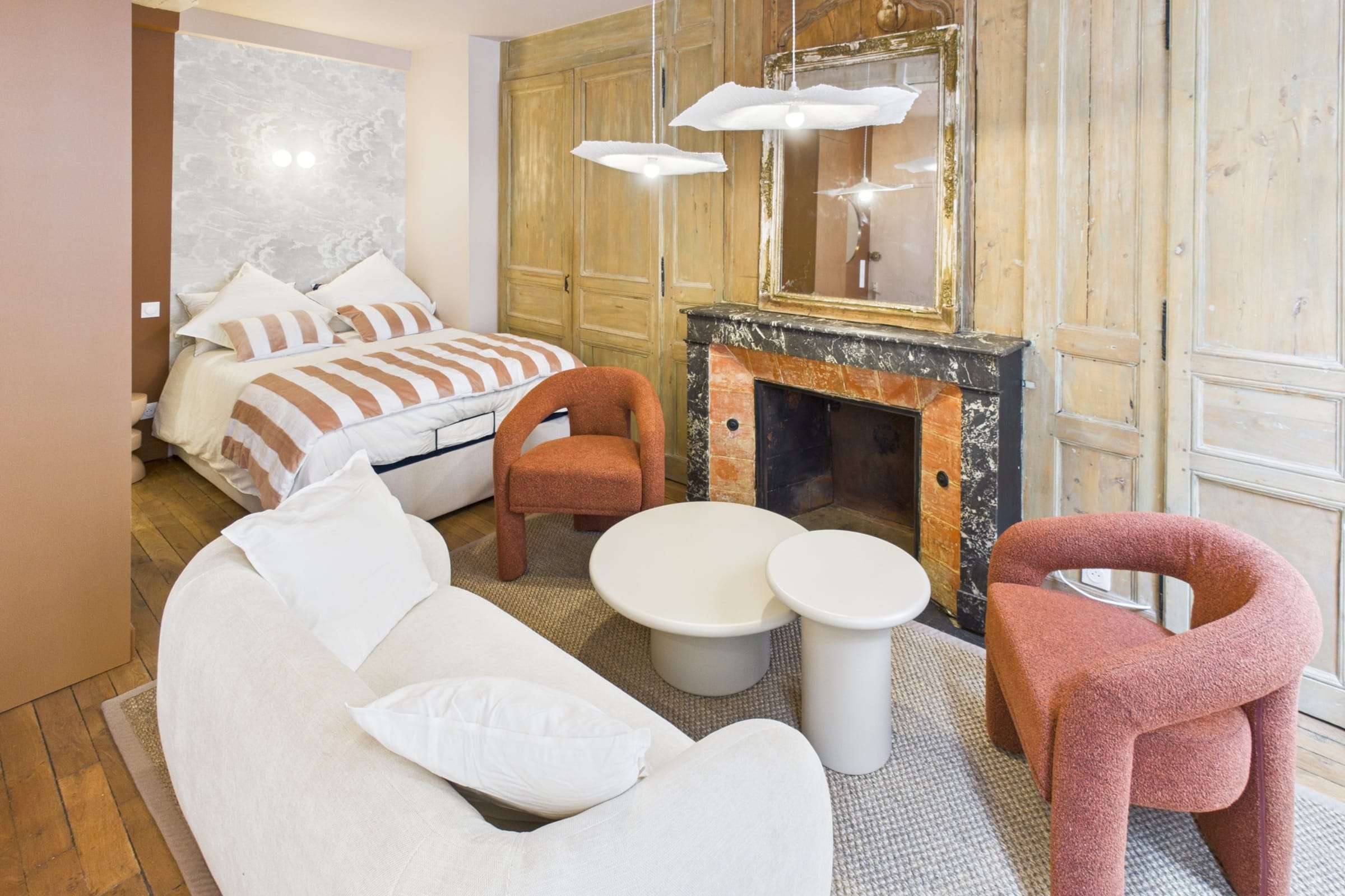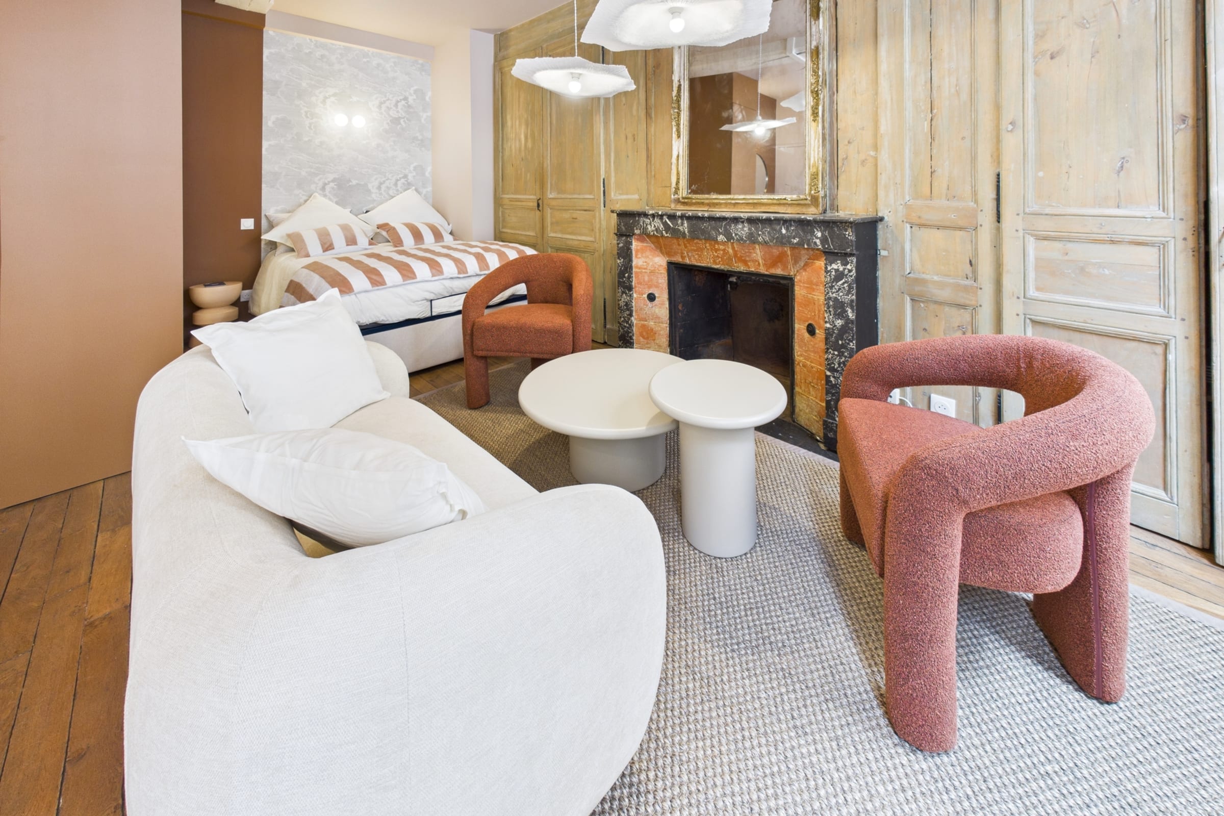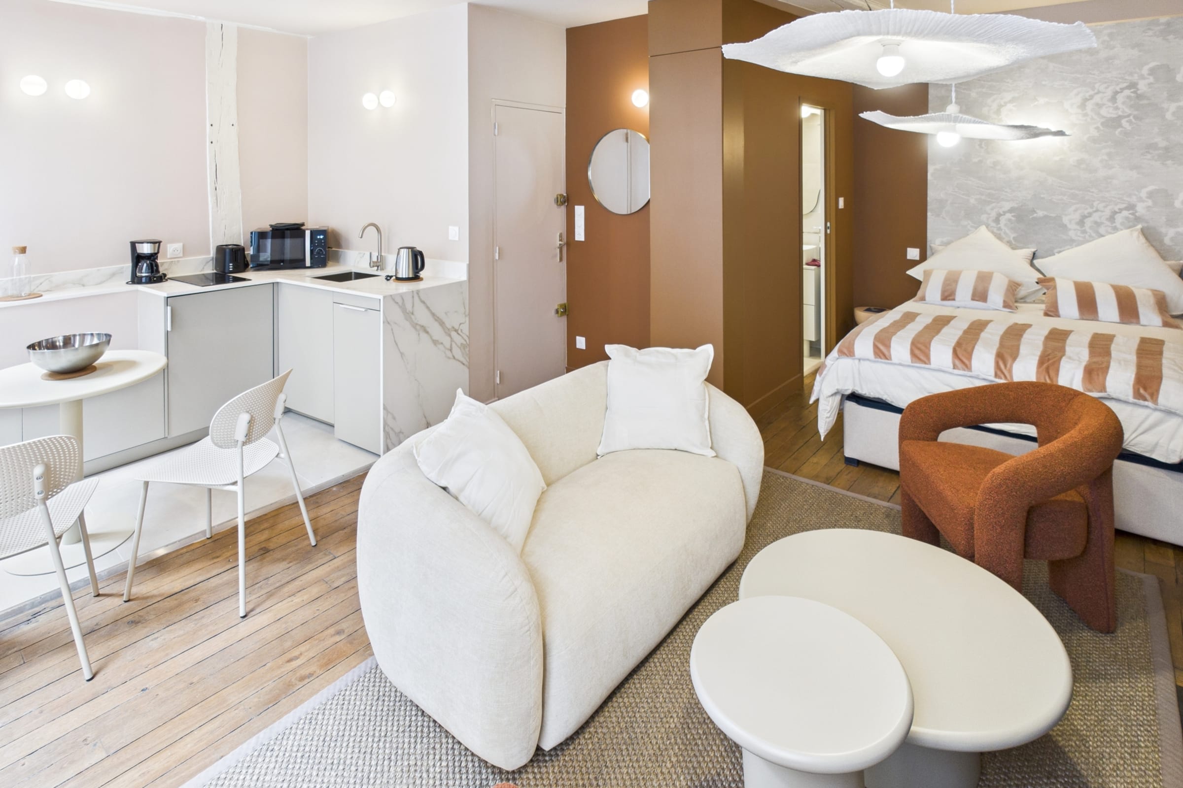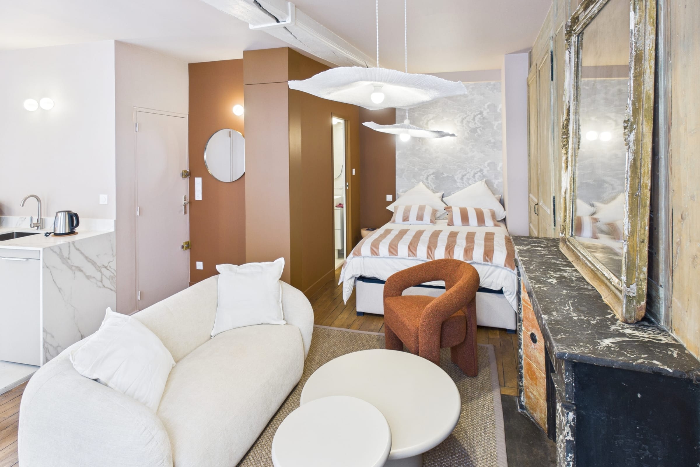 ✨ Warm and inviting studio with tasteful decor, enhanced by terracotta tones that create a soft and elegant atmosphere.