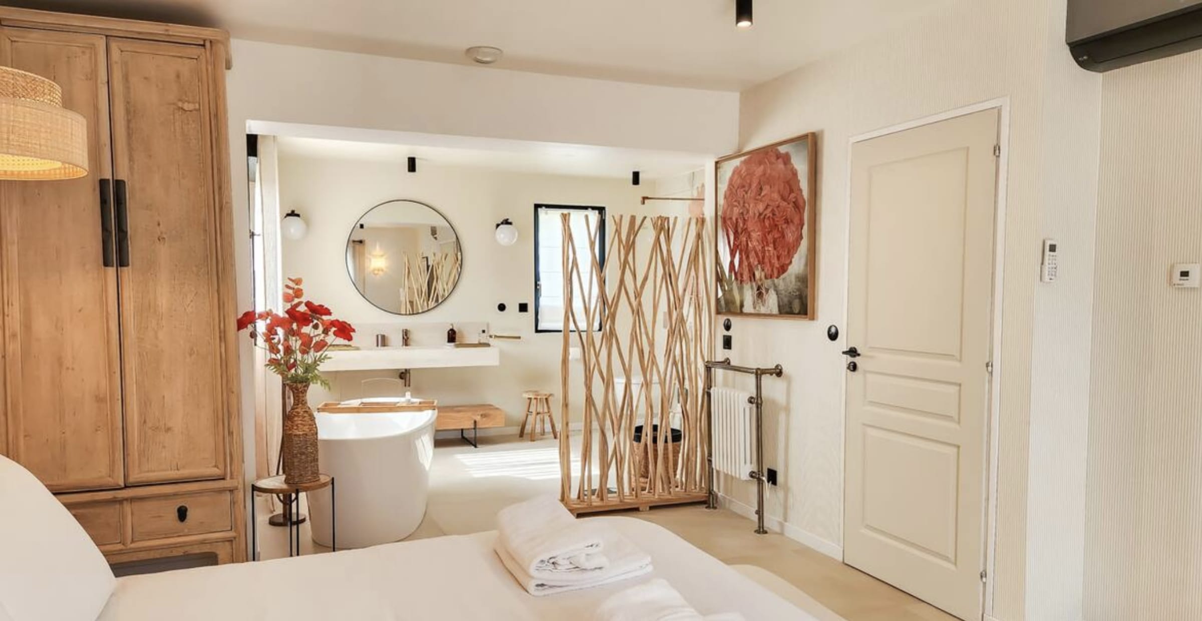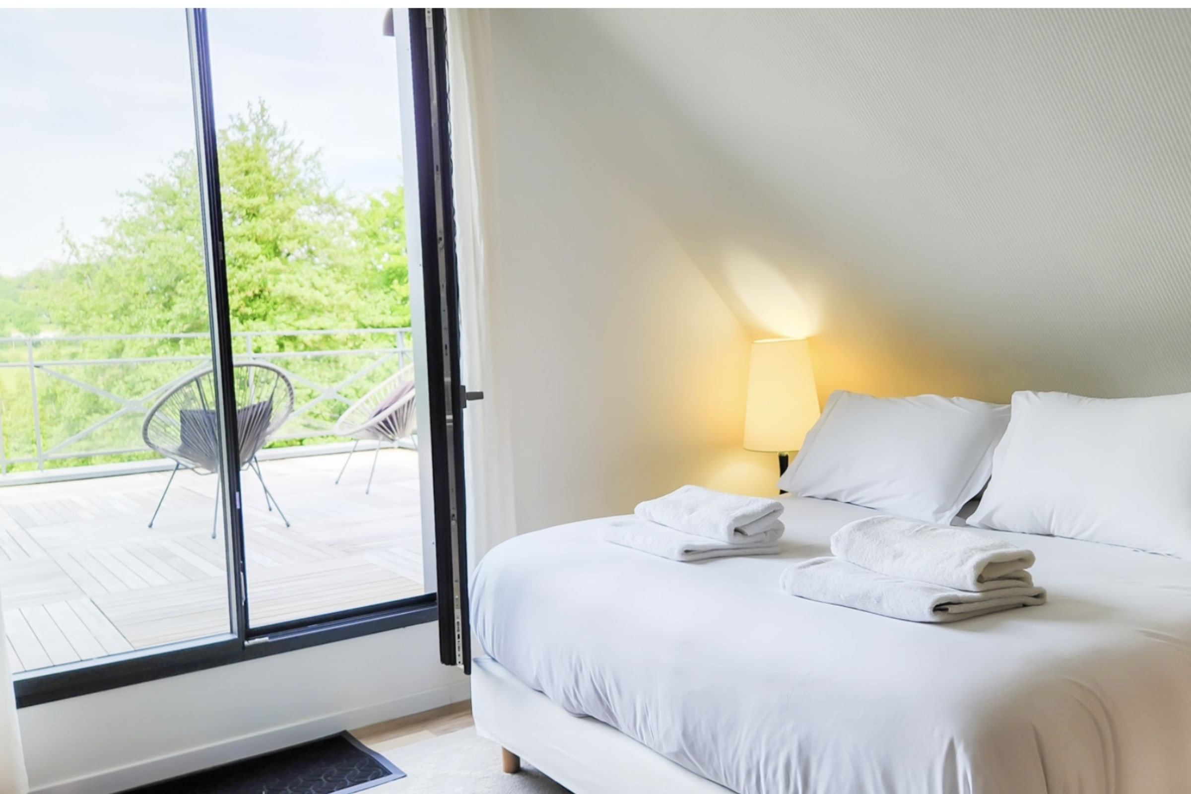 → Before your arrival and after your departure, our team performs hotel-quality housekeeping and provides you with hotel-quality towels, bed linen and a line of natural skincare products.
