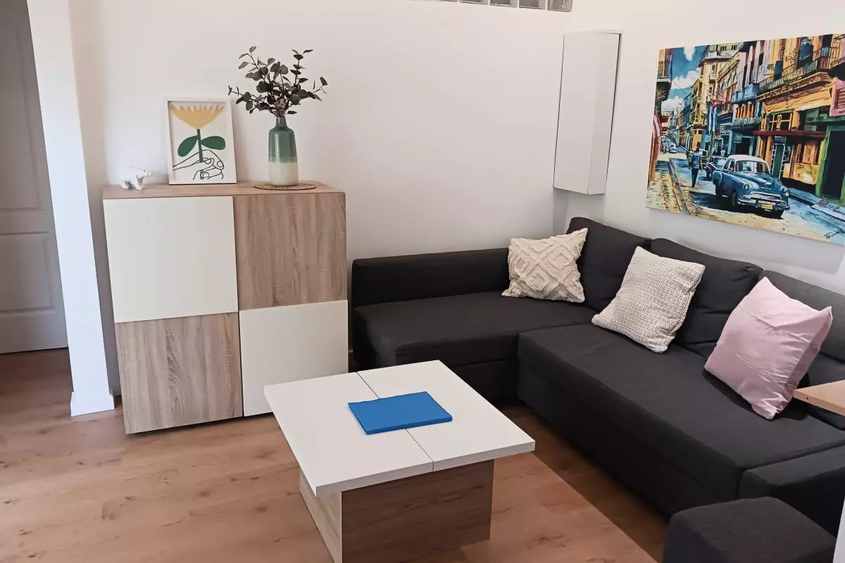 With an area of 60 square meters, it includes a bedroom, a comfortable sofa bed, a dressing room, an office area and can accommodate up to 4 people.