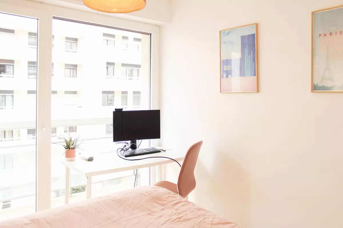 It includes a bedroom equipped with a double bed and a desk, ideal for teleworking, with all the necessary equipment: screen, webcam, keyboard and mouse.