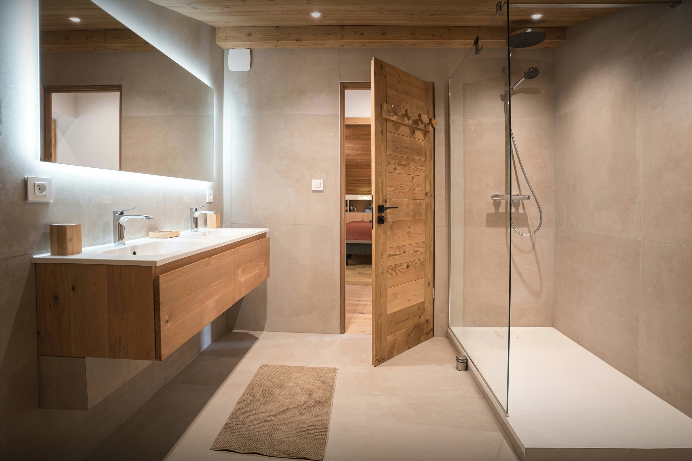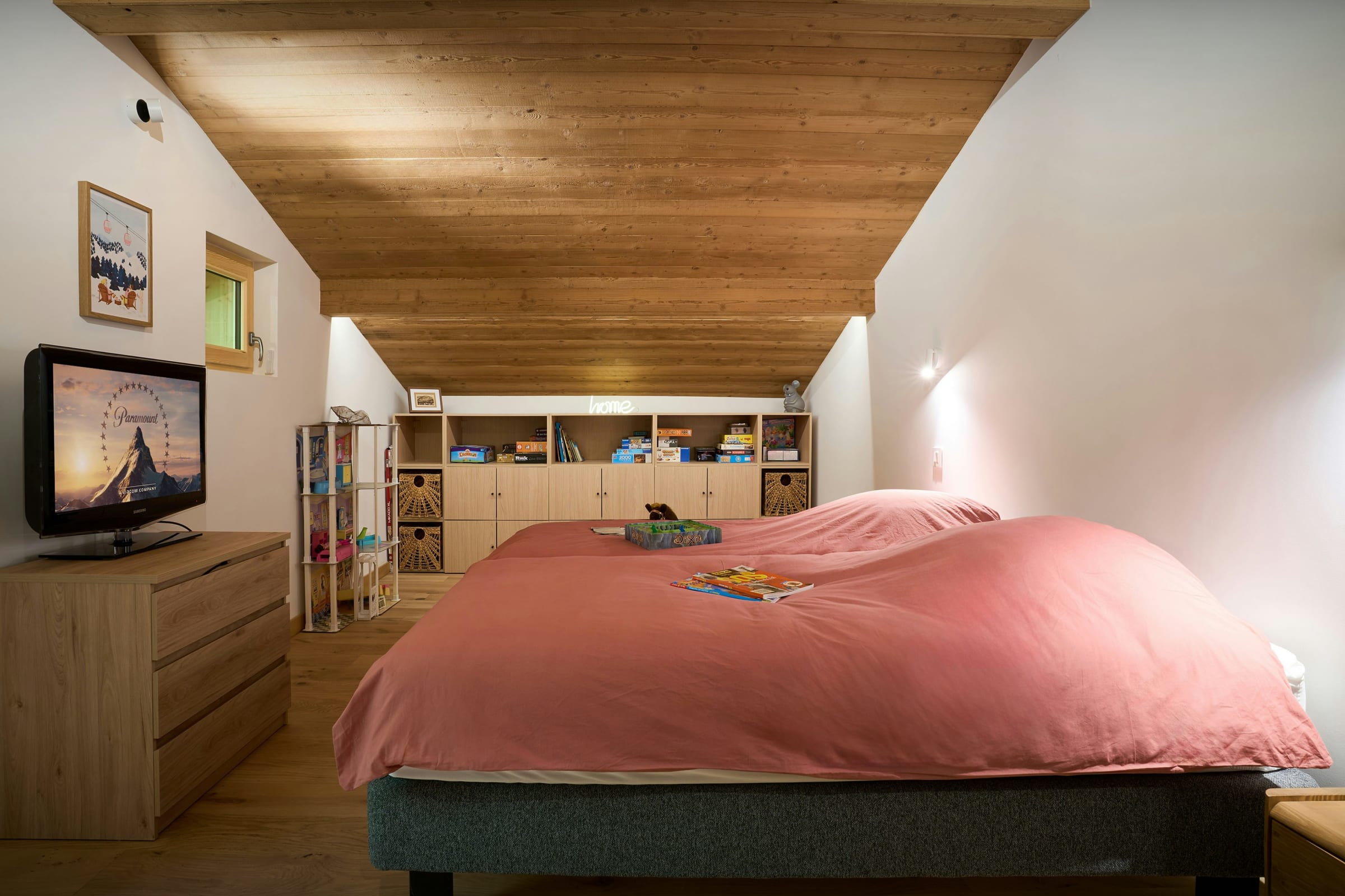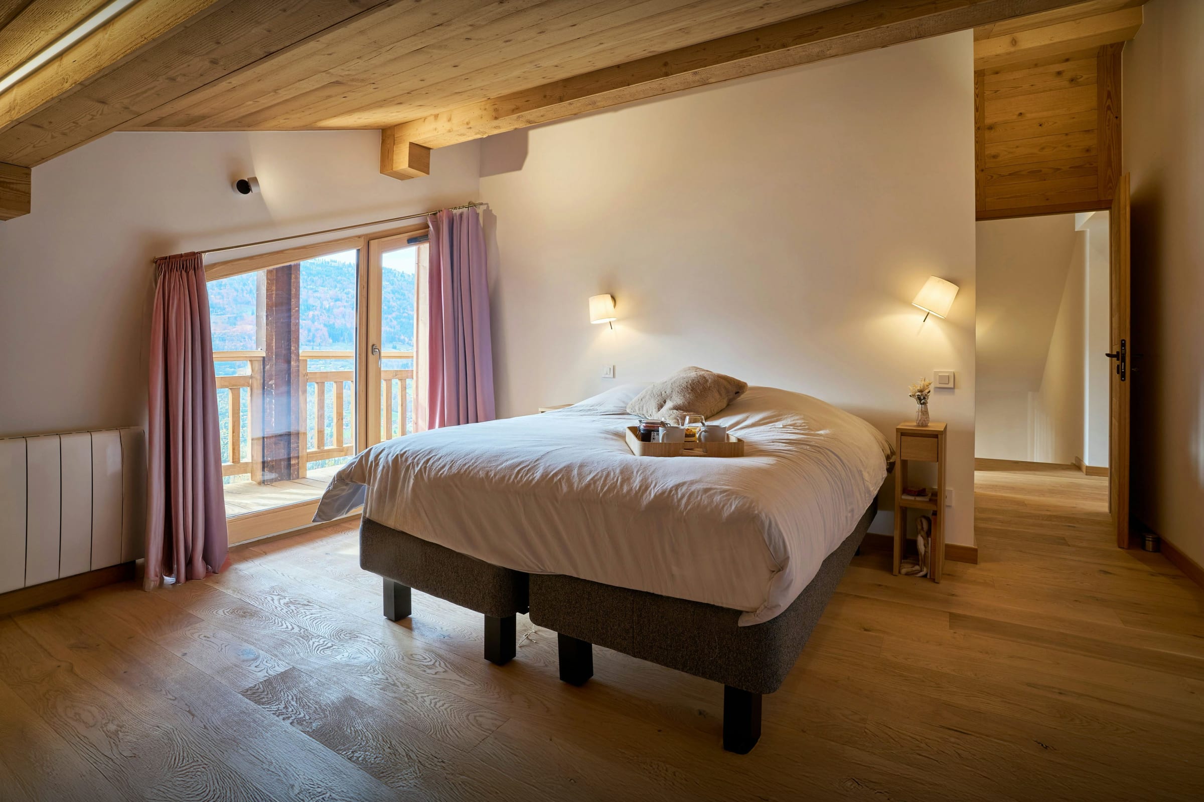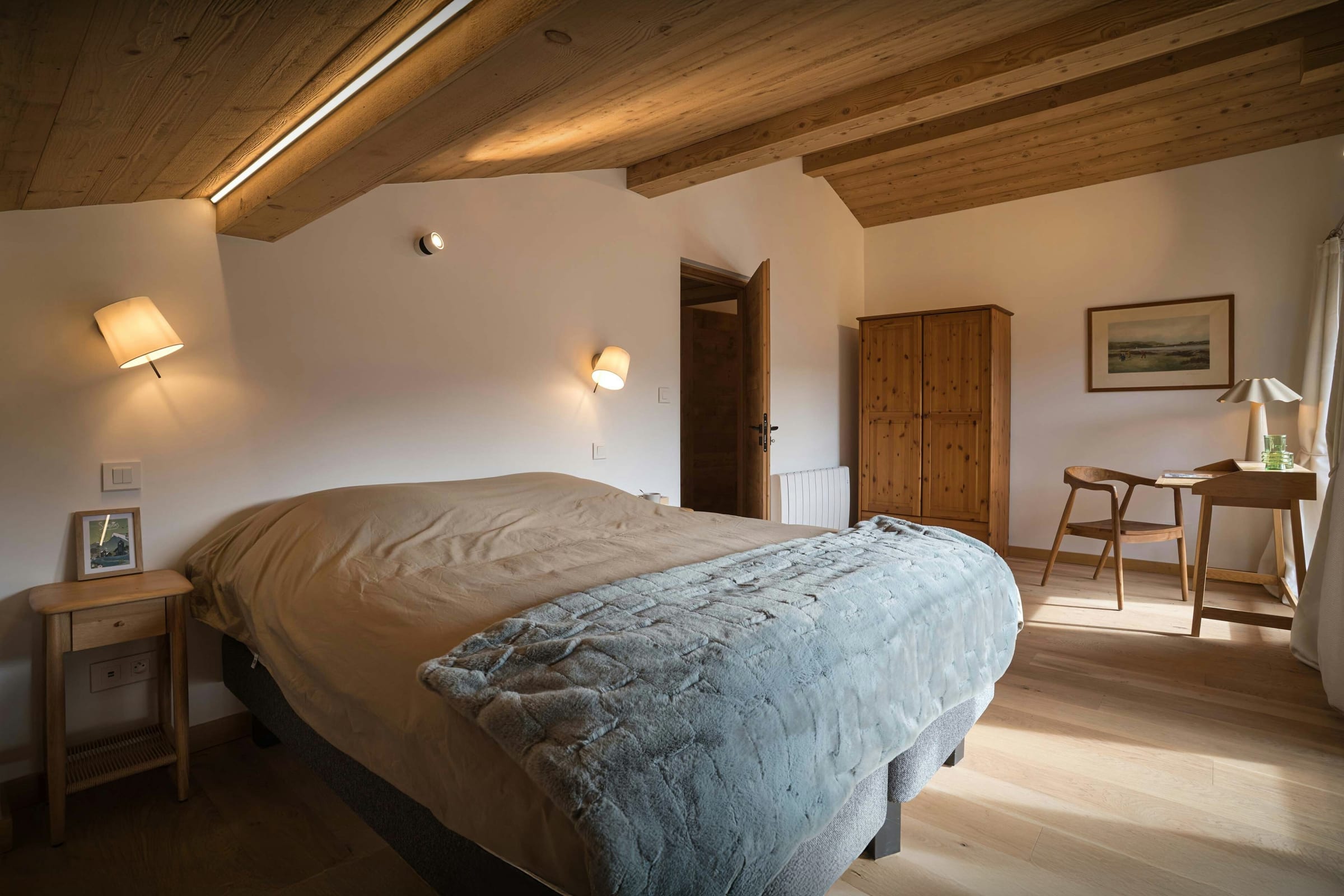 Chalet Biola Vu has three double bedrooms, two of which have a desk where you can work remotely during your stay. The two double bedrooms on the upper floor open onto a shared balcony, offering fabulous views of the village and mountains.