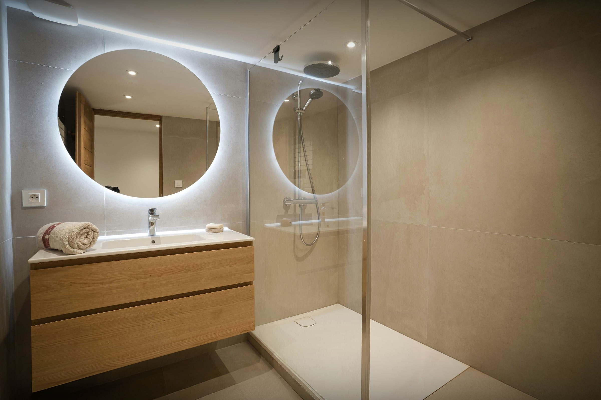 On the practical side, there’s a laundry room with a washing machine and tumble dryer, and there is space for three vehicles in front of the chalet. A large garden offers children plenty of space to play.