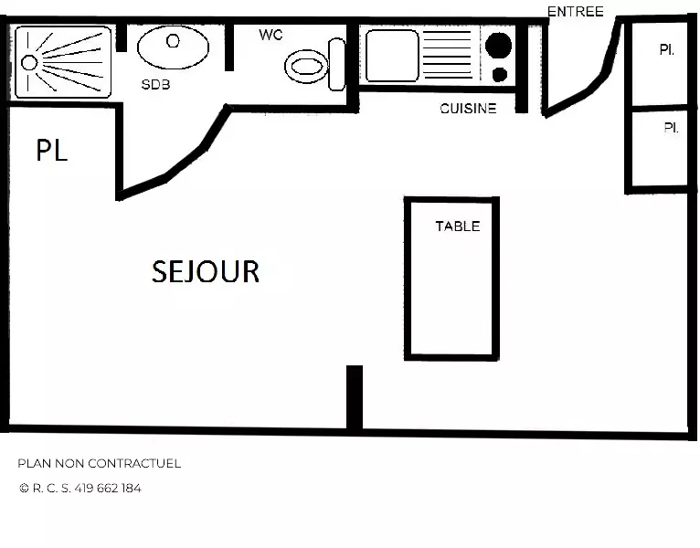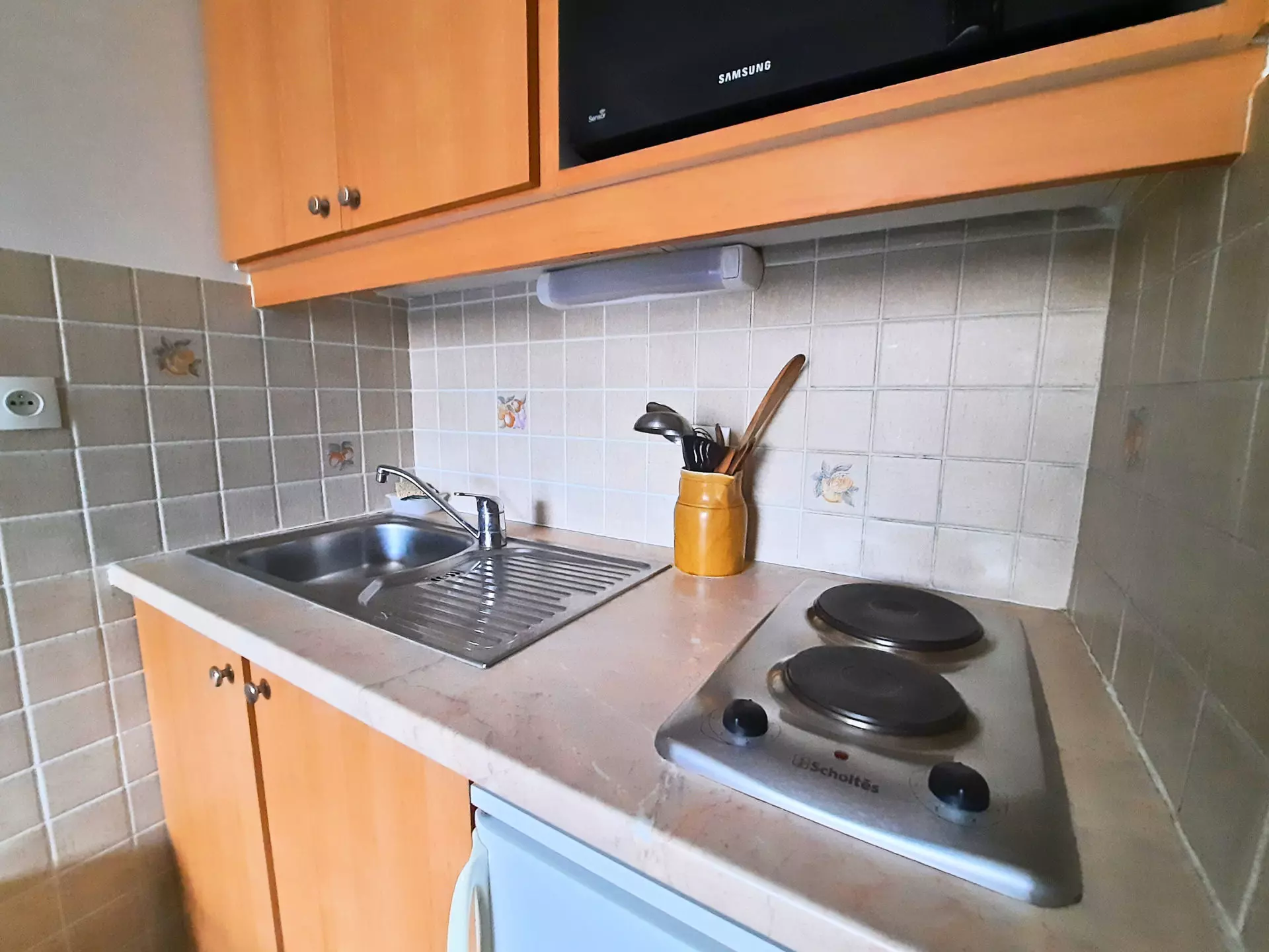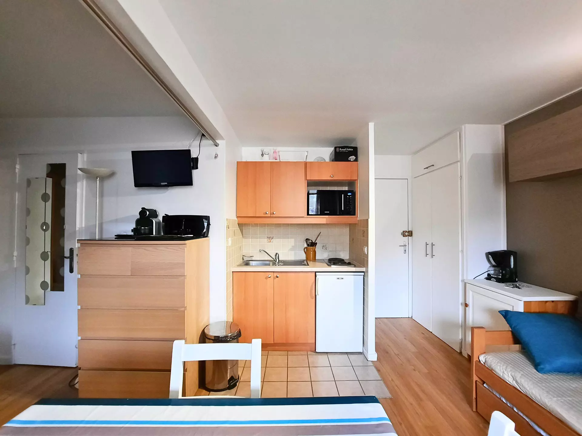 Residence (No. E7), renovated studio for 4 people, 24m², on the 5th floor (building E) with elevator that stops halfway down the floor, west-facing balcony