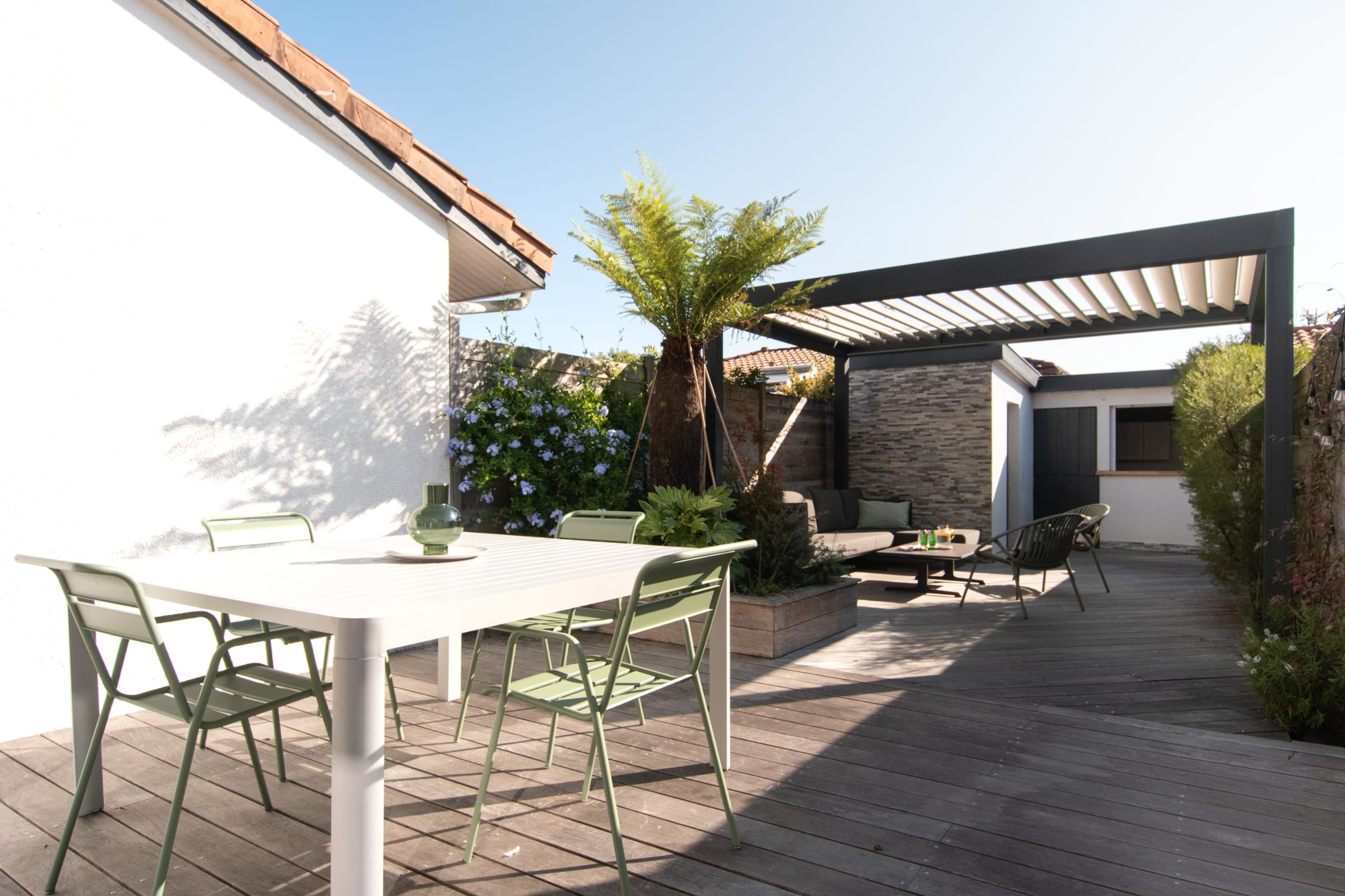 The villa also features a peaceful outdoor area, protected from view and perfect for enjoying the Landes climate: