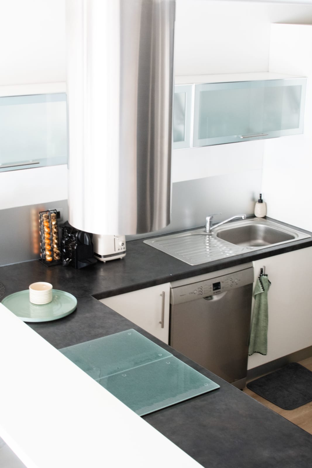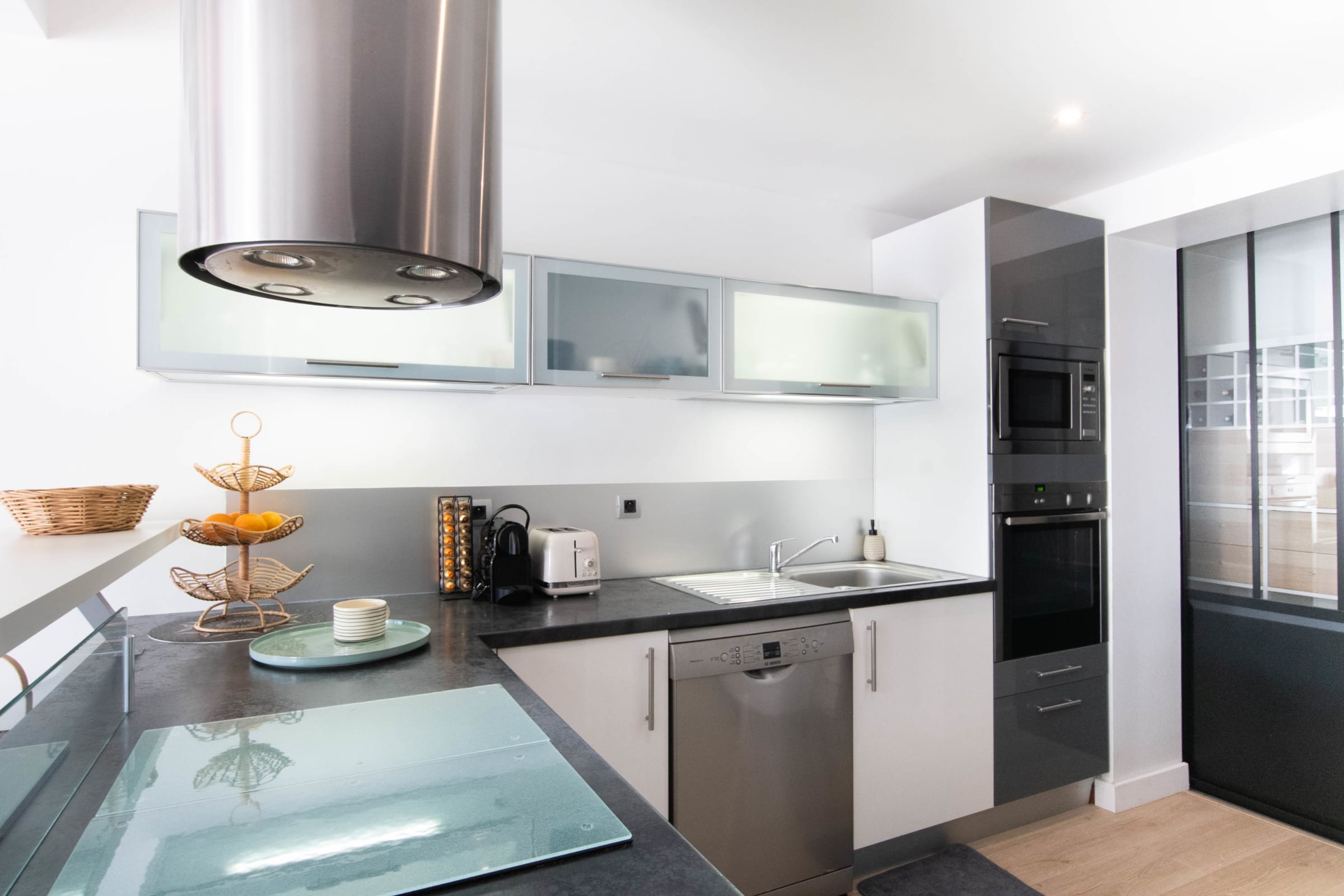 Oven, stovetop, fridge, Nespresso machine, cookware and utensils—everything you need to cook easily.