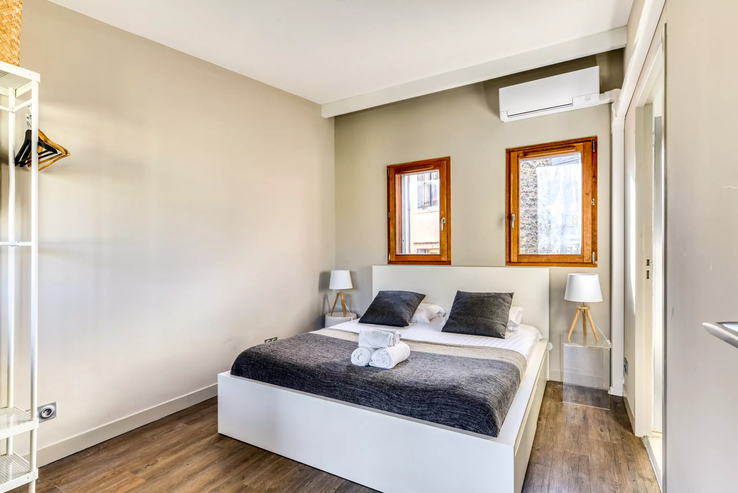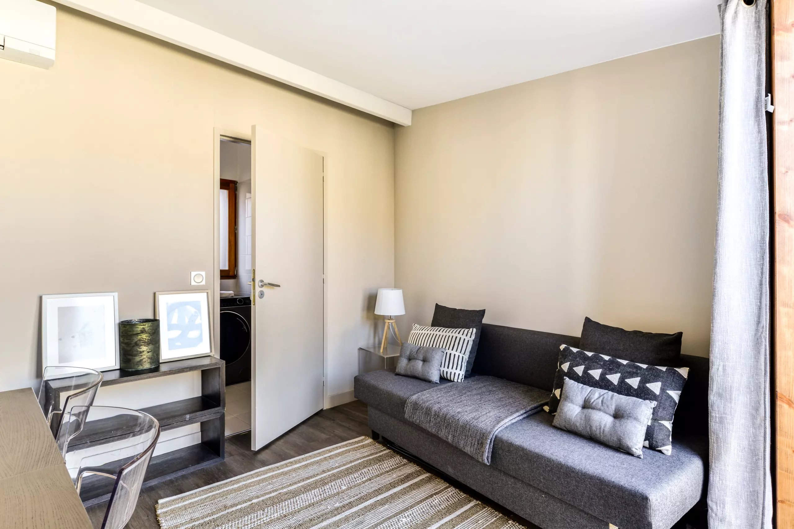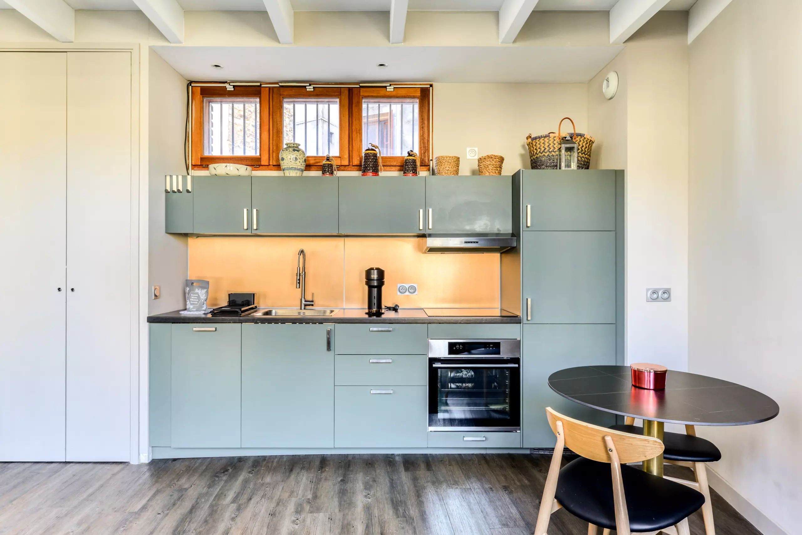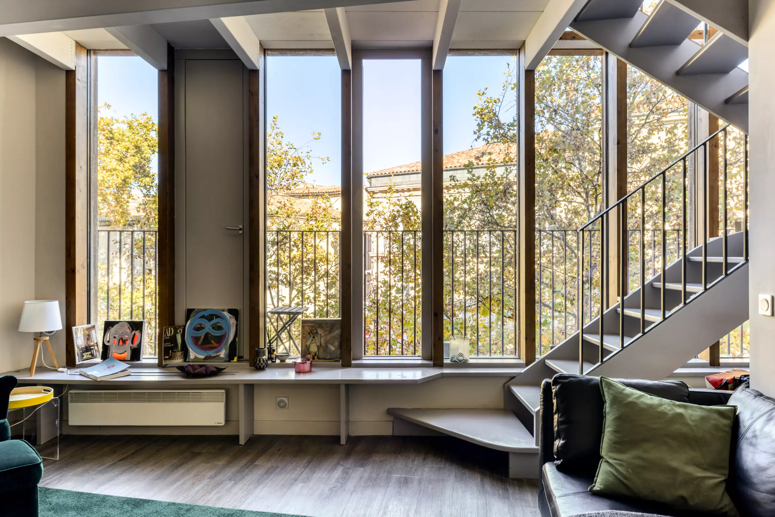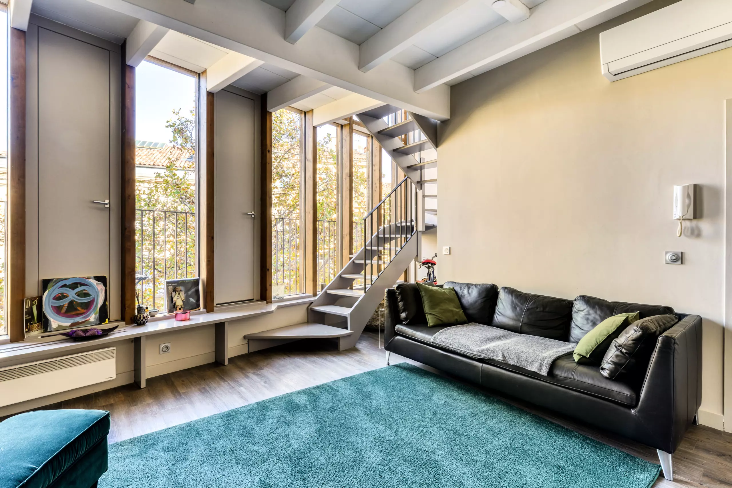 You'll be captivated by this modern and elegant duplex, located on the 2nd floor (no elevator) of a beautifully restored building. The living area is spacious and bright, featuring a fully equipped open-plan kitchen that will delight food lovers! A charming balcony and a small table complete the living space, perfect for a relaxing break. The staircase offers magnificent views overlooking the neighborhood as it leads to the upper floor, where you'll find two double bedrooms (one with a double bed and one with a sofa bed) and a bathroom with a walk-in shower.