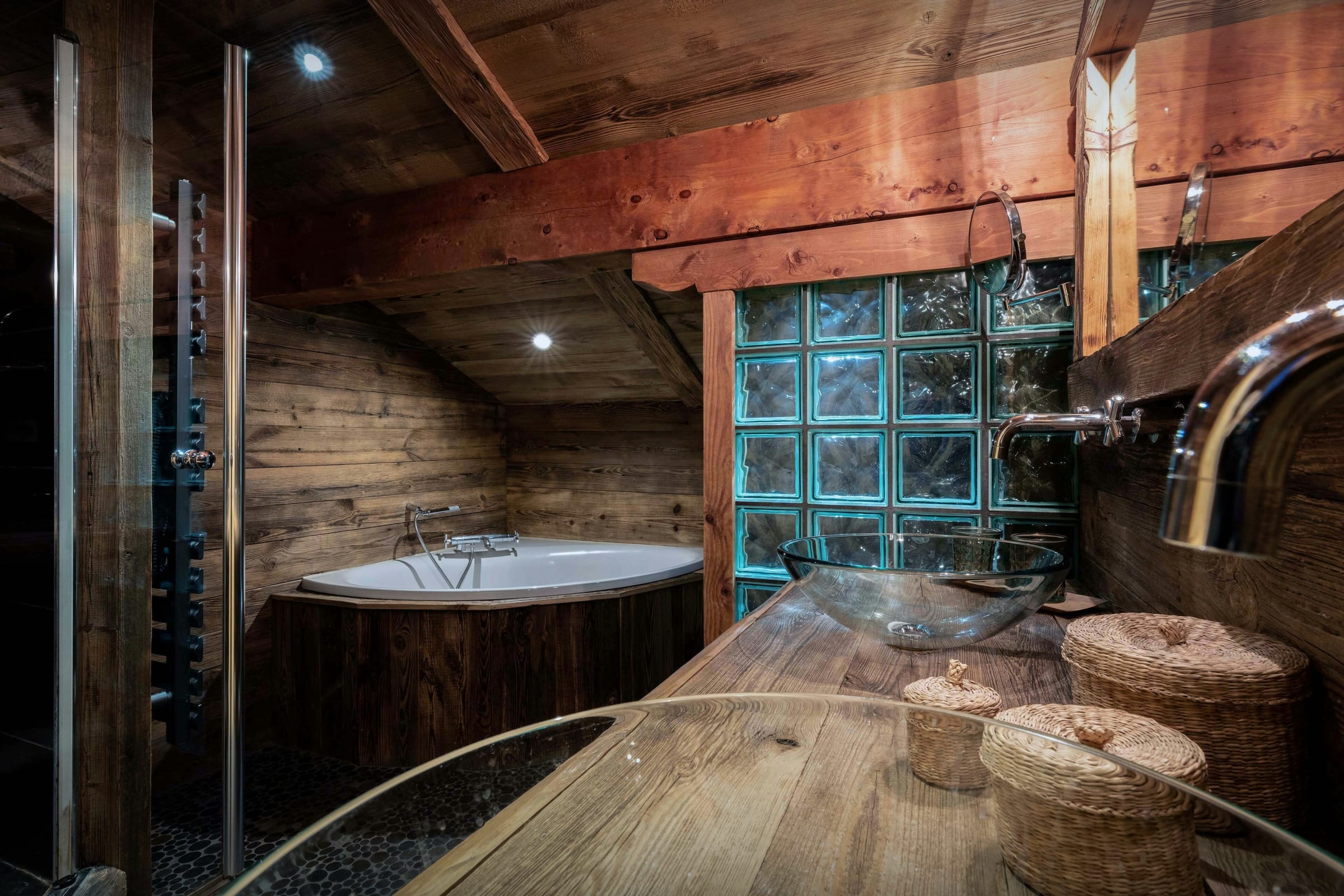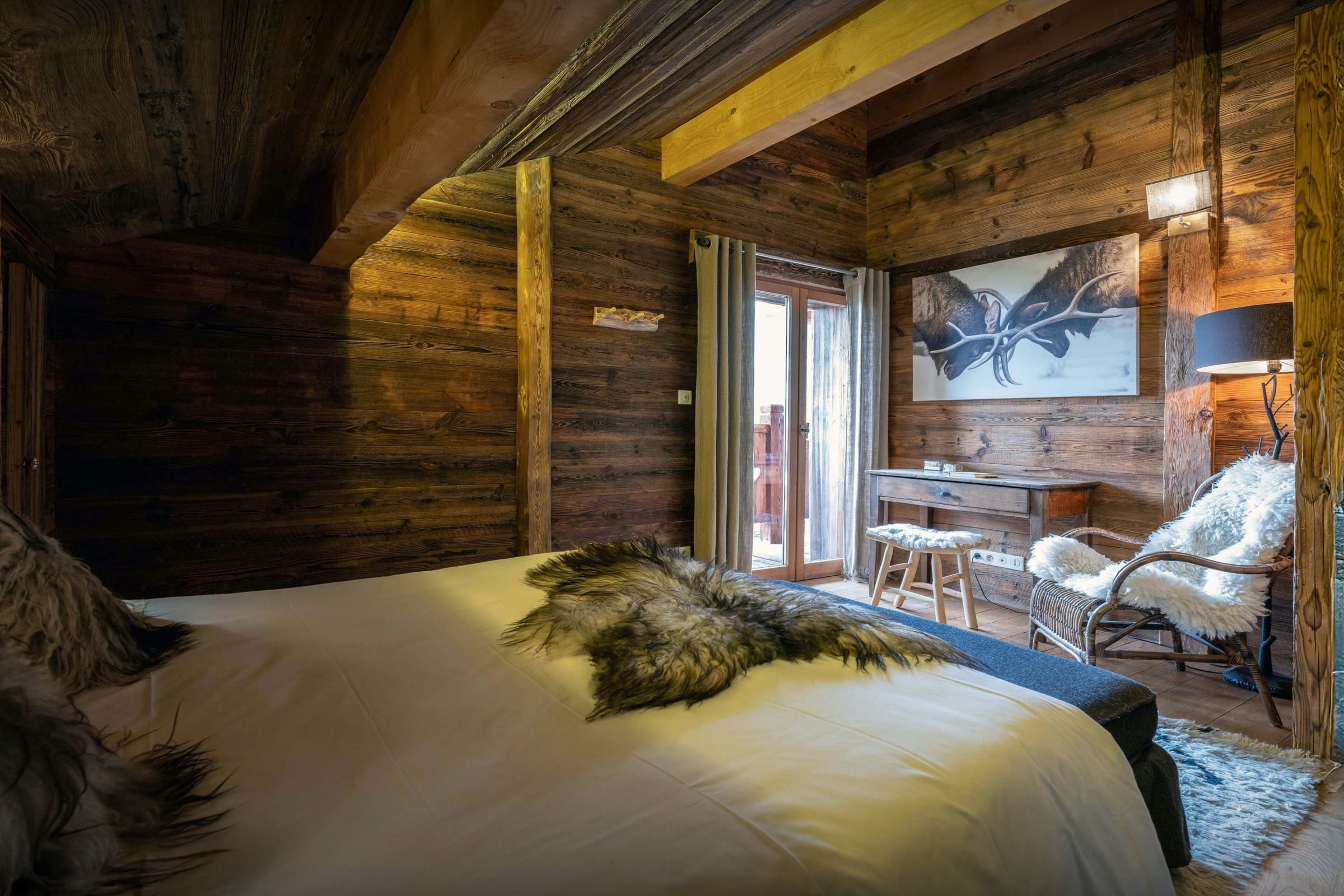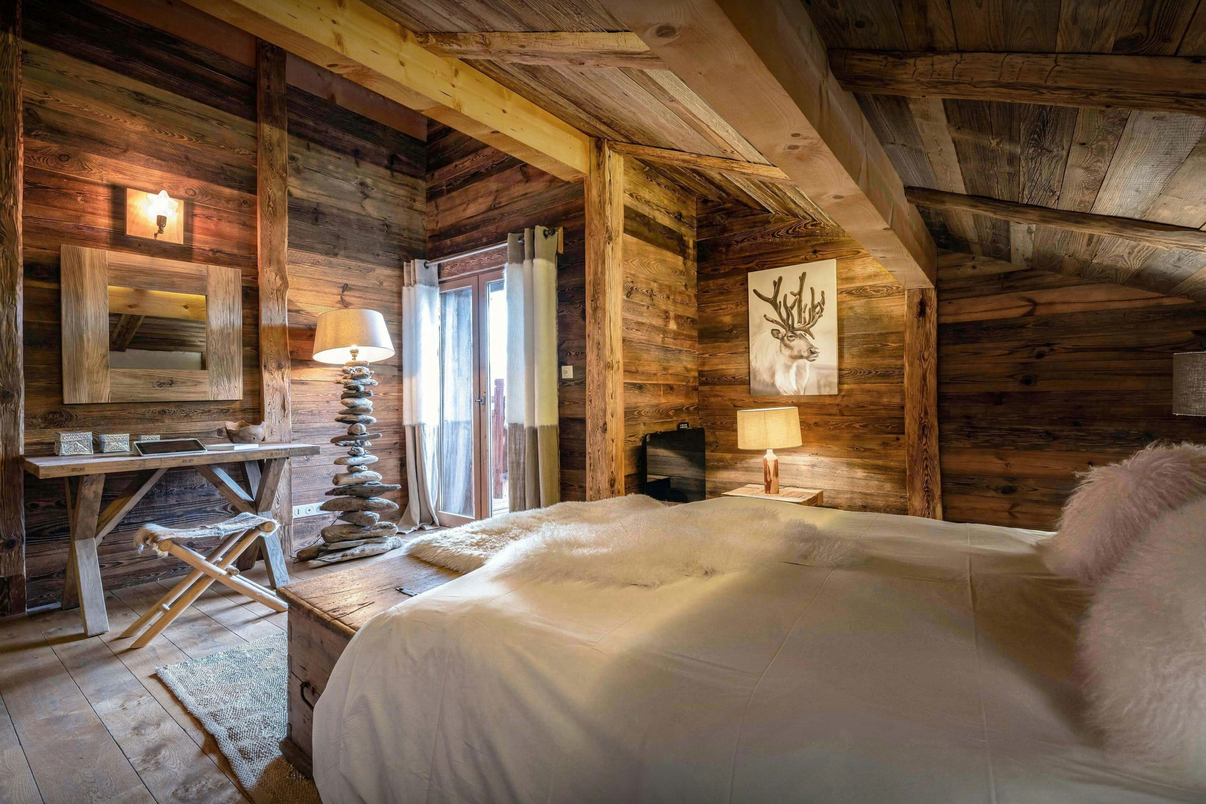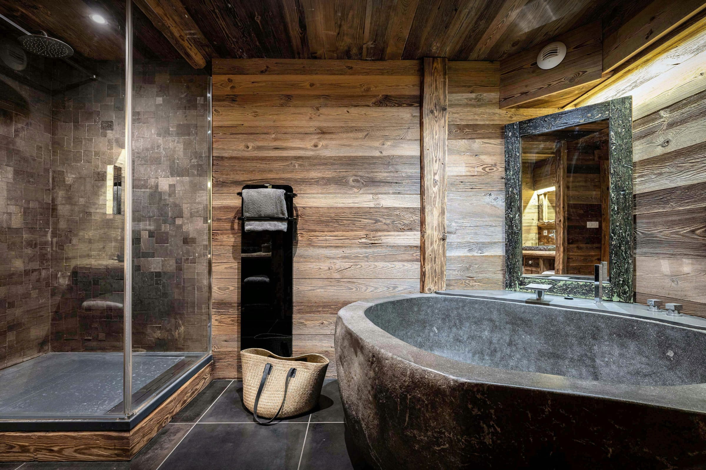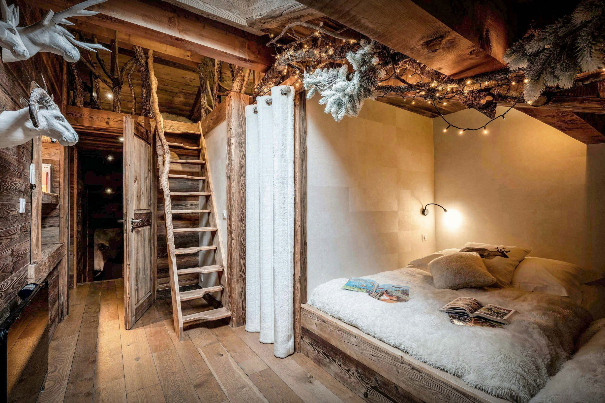 The central floor is the heart of the chalet. The spacious living area is divided into two seating areas around a fireplace while a second, more intimate sitting room provides the perfect spot for reading or sharing an aperitif. The fully equipped kitchen and large dining table make this space ideal for wonderful meals together.