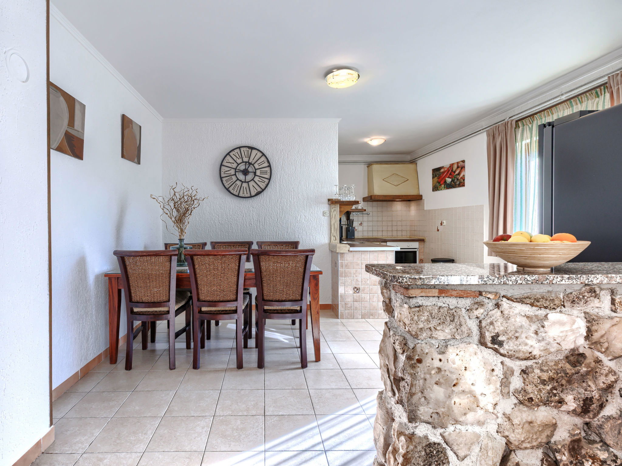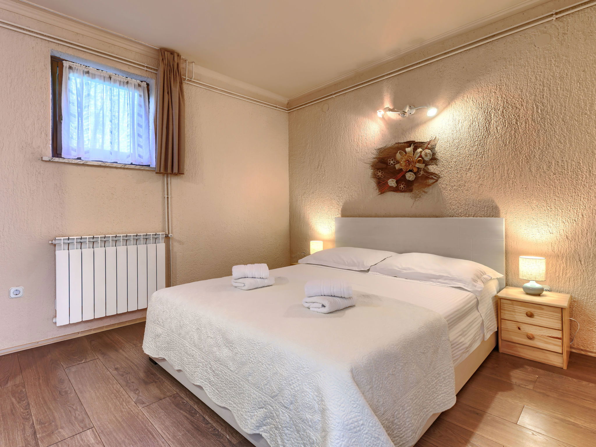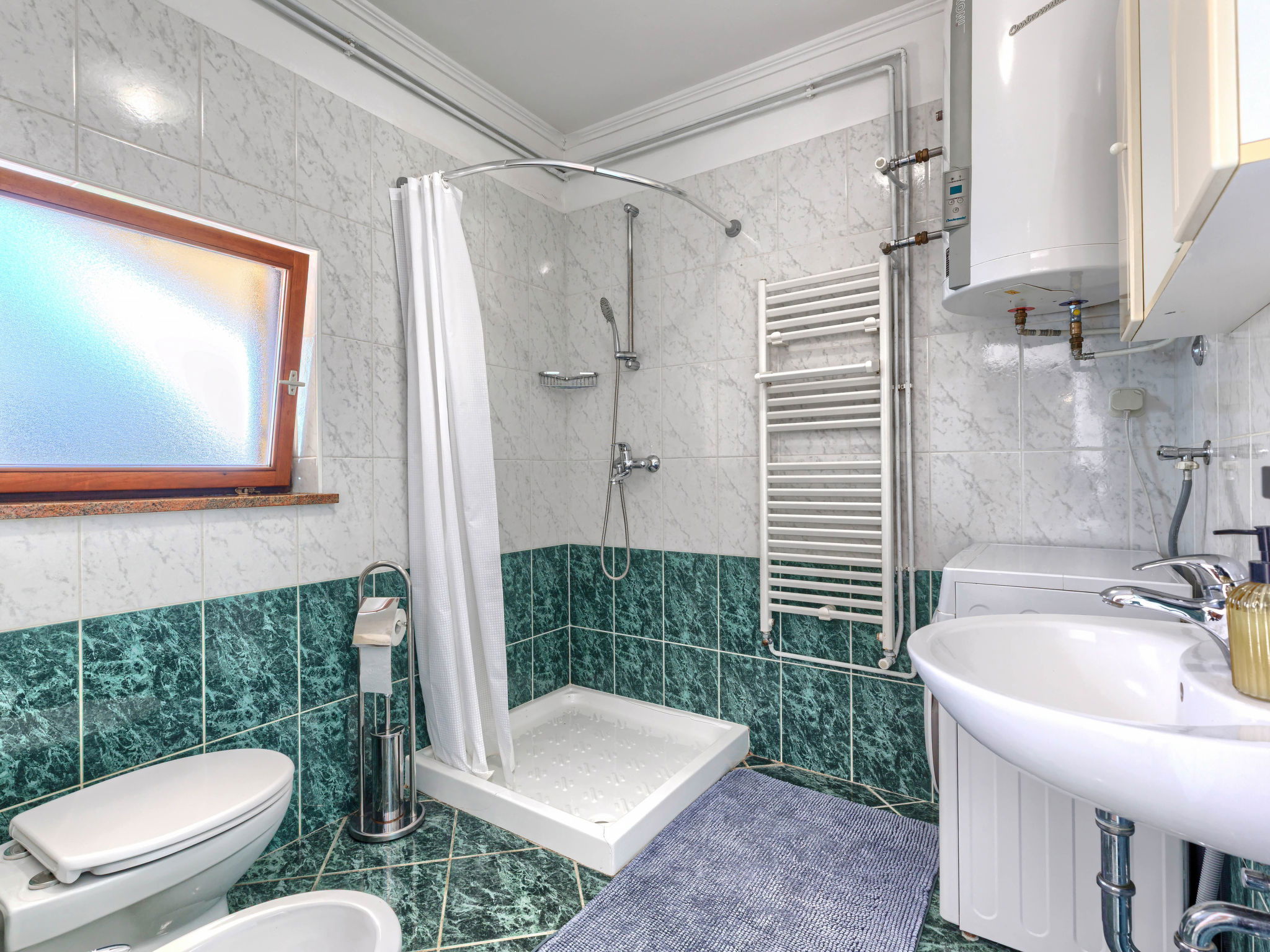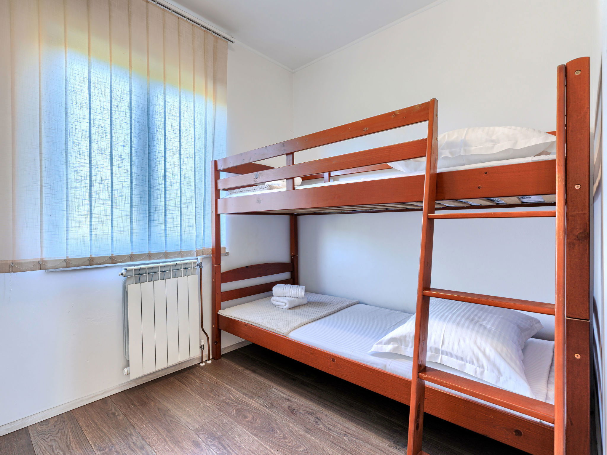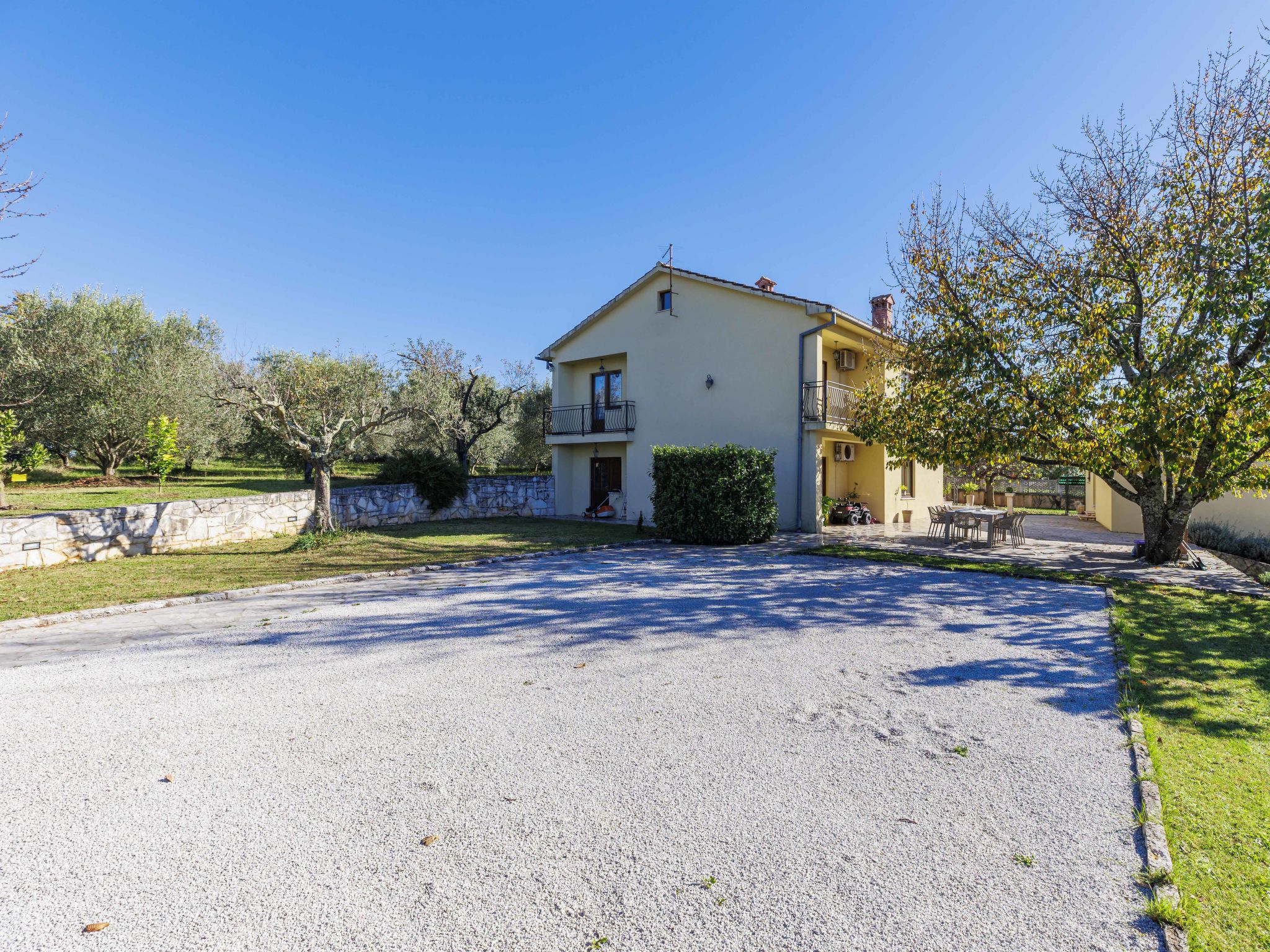 Bašići 12 km from Poreča: Villa "Elli", 2 storeys. 3 km from the centre of Tinjan, in a sunny position, 12 km from the sea, located by a road. Private: property 2'255 m2 with lawn and trees, swimming pool angular (4 x 8 m, depth 140 cm, seasonal availability: 01.May. - 01.Oct.) with internal staircase. Outdoor shower, terrace (25 m2), garden furniture, barbecue, children's playground (slide, swing), pool maintenance by the owner/gardener. In the house: internet access, washing machine. Parking (for 4 cars) at the house on the premises. Shop 3 km, supermarket 7 km, restaurant 100 m, bus stop 3 km, pebble beach 12 km, rocky beach 12 km. Surf school 12 km, walking paths from the house, cycle lane 100 m. Nearby attractions: Adrenalin Park Kringa 5 km. The owner does not accept any youth groups.