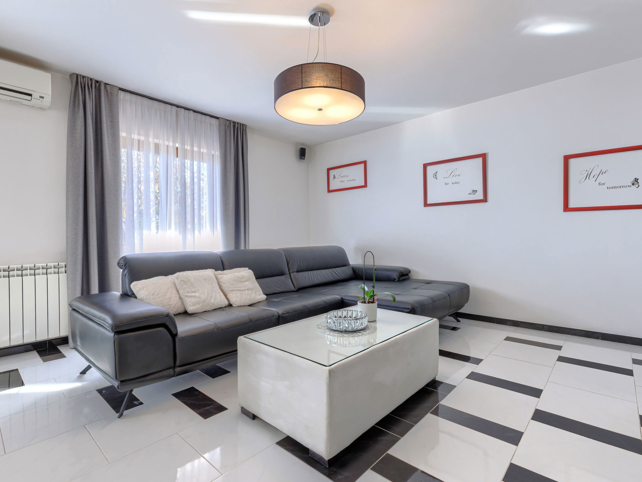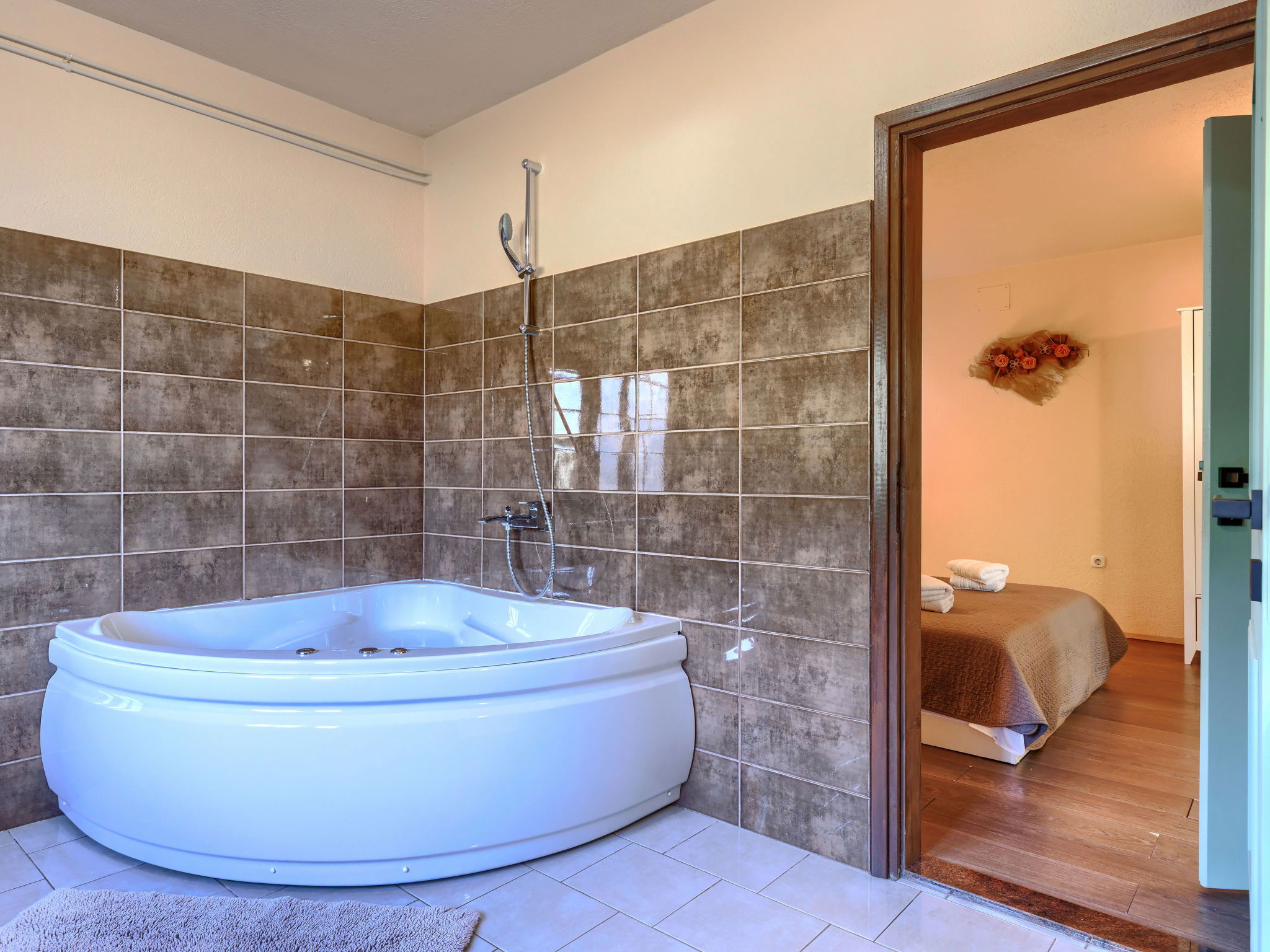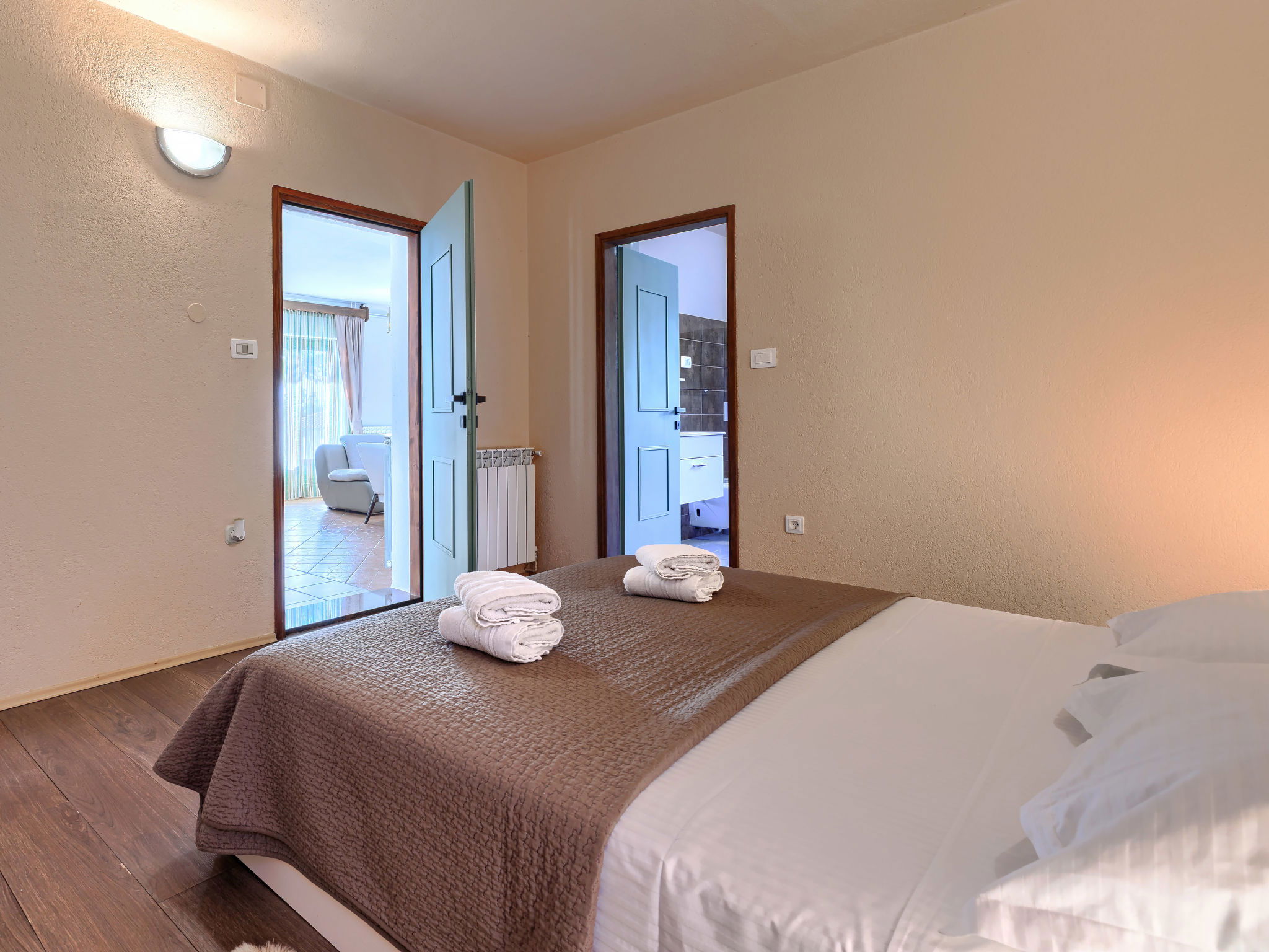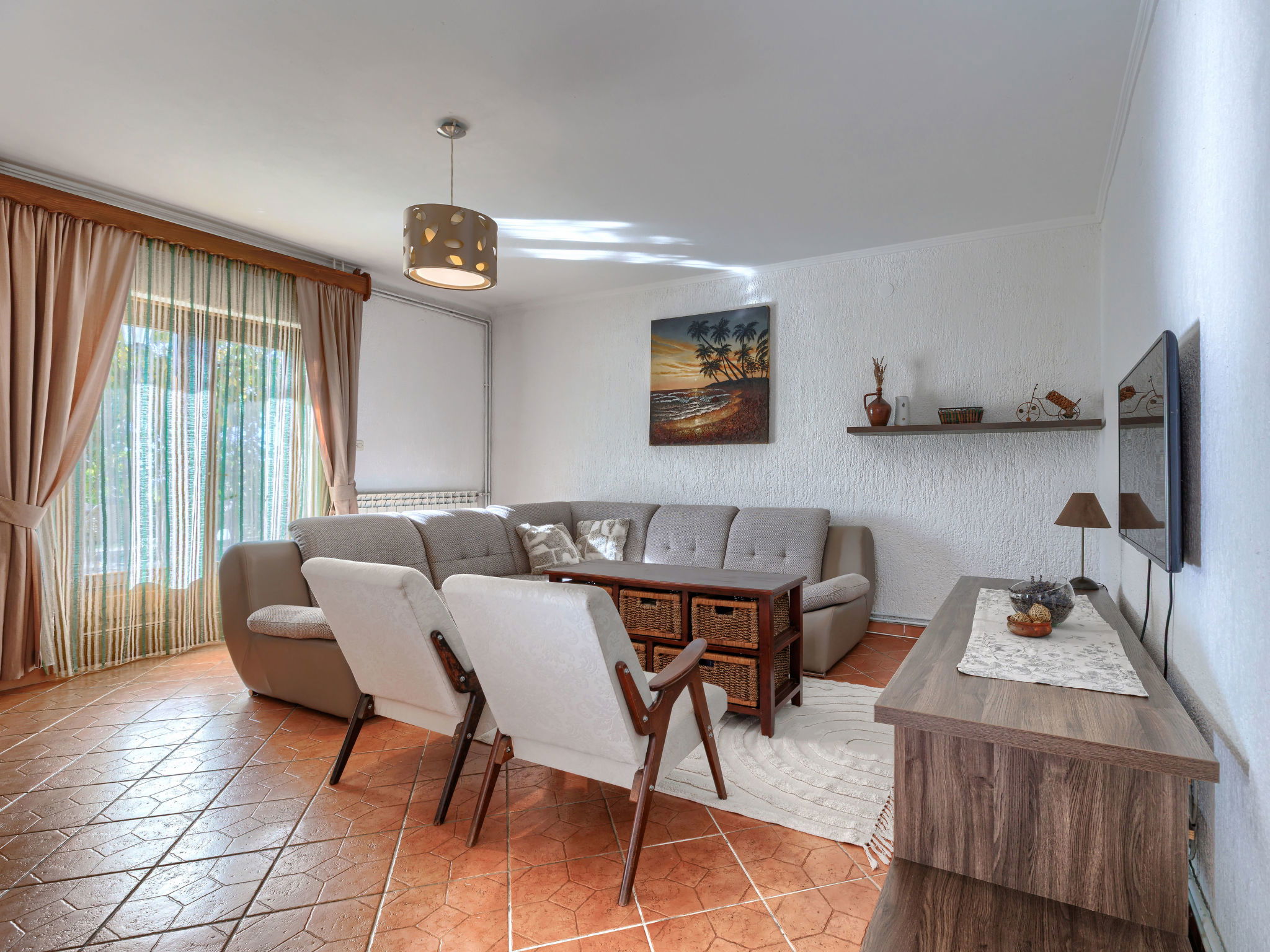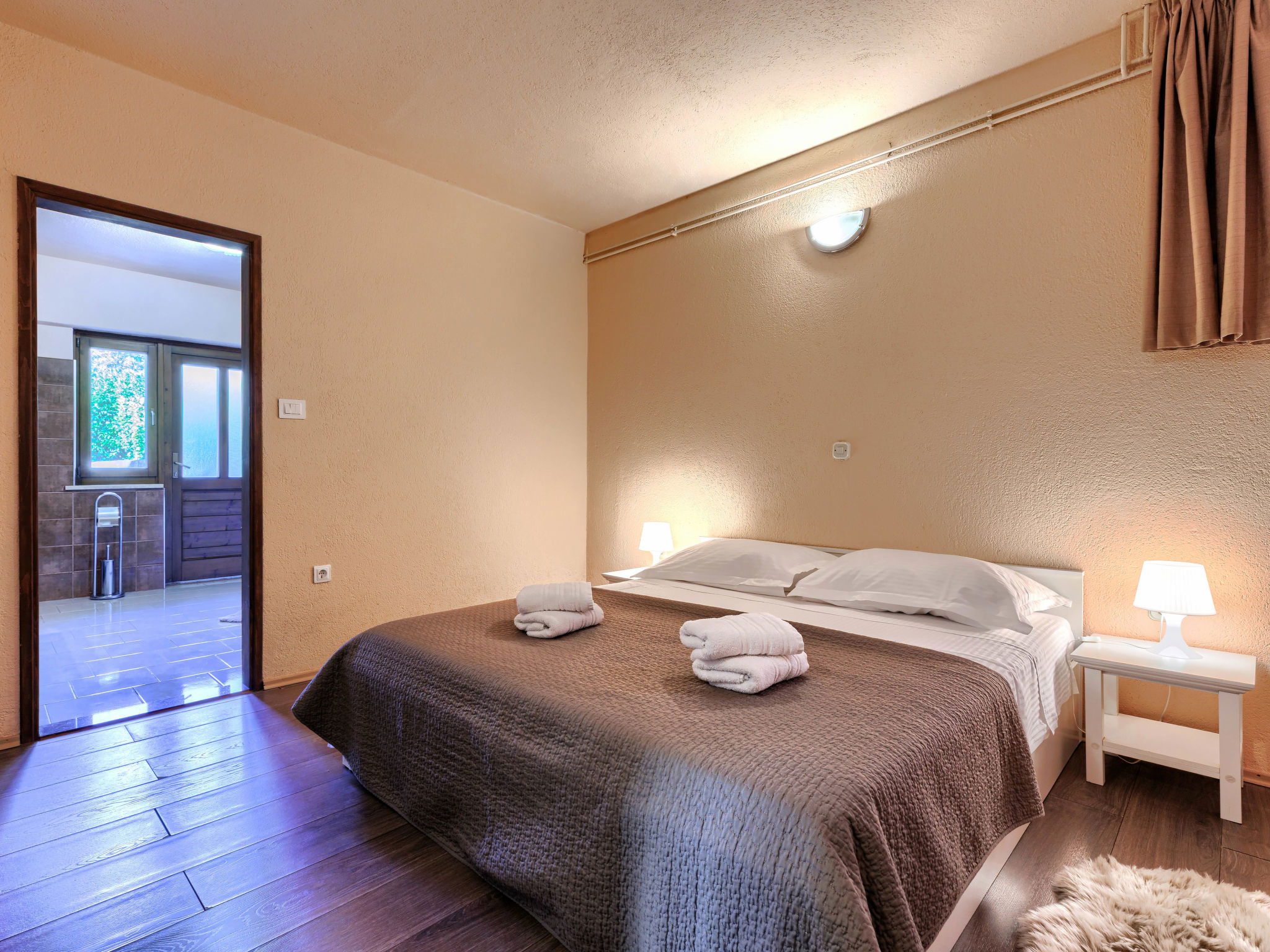 Bašići 12 km from Poreča: Villa "Elli", 2 storeys. 3 km from the centre of Tinjan, in a sunny position, 12 km from the sea, located by a road. Private: property 2'255 m2 with lawn and trees, swimming pool angular (4 x 8 m, depth 140 cm, seasonal availability: 01.May. - 01.Oct.) with internal staircase. Outdoor shower, terrace (25 m2), garden furniture, barbecue, children's playground (slide, swing), pool maintenance by the owner/gardener. In the house: internet access, washing machine. Parking (for 4 cars) at the house on the premises. Shop 3 km, supermarket 7 km, restaurant 100 m, bus stop 3 km, pebble beach 12 km, rocky beach 12 km. Surf school 12 km, walking paths from the house, cycle lane 100 m. Nearby attractions: Adrenalin Park Kringa 5 km. The owner does not accept any youth groups.