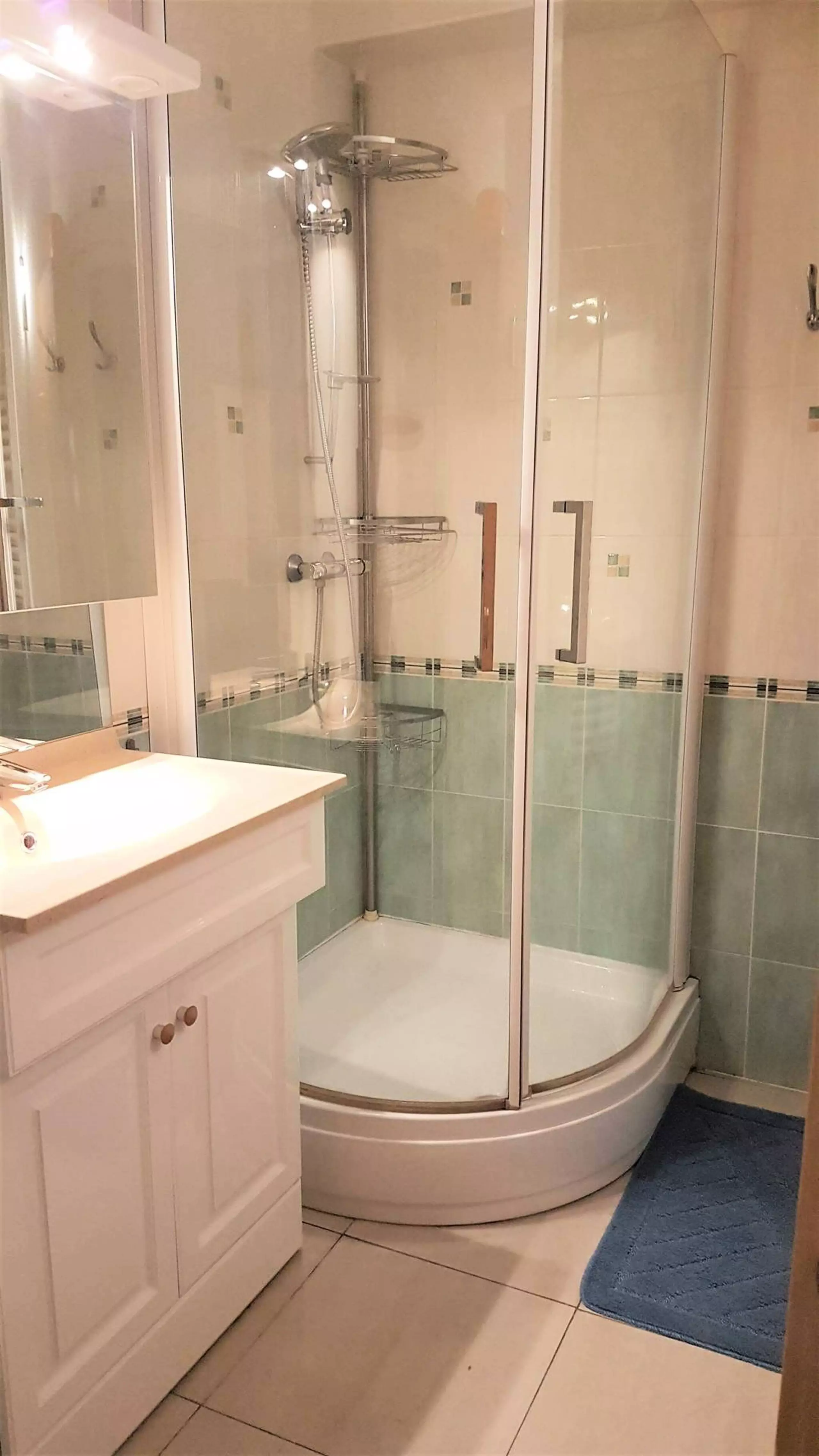 Bathroom: Sink, shower and toilet