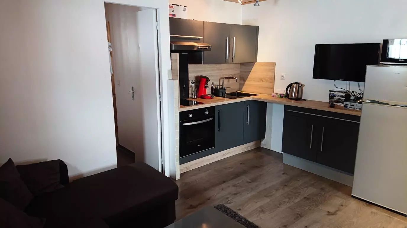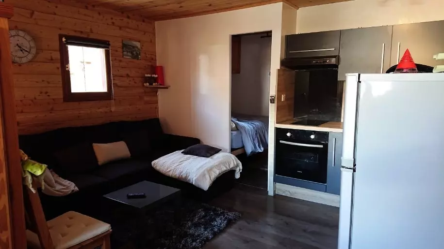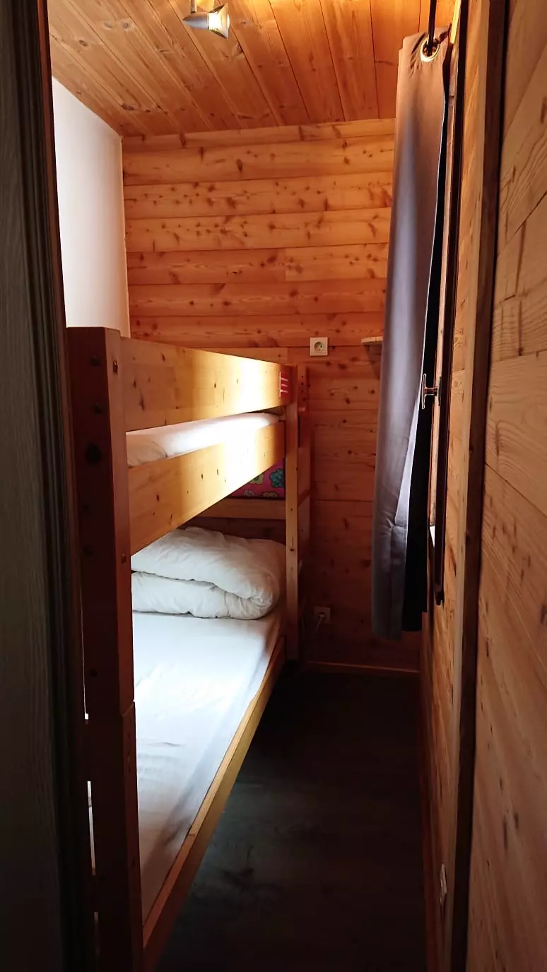 The accommodation includes a bedroom with a double bed (140x190), a mountain corner equipped with bunk beds to accommodate two additional people, as well as a sofa bed (140x190) in the living room, bringing the total capacity of the apartment to six people.
