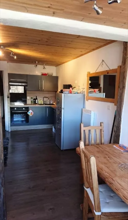 The kitchen is fully equipped with a refrigerator including a freezer compartment, a kettle, a Senseo coffee machine, a crepe maker, and a raclette grill for six people. A clothes drying rack and a hairdryer are also available for added convenience.
