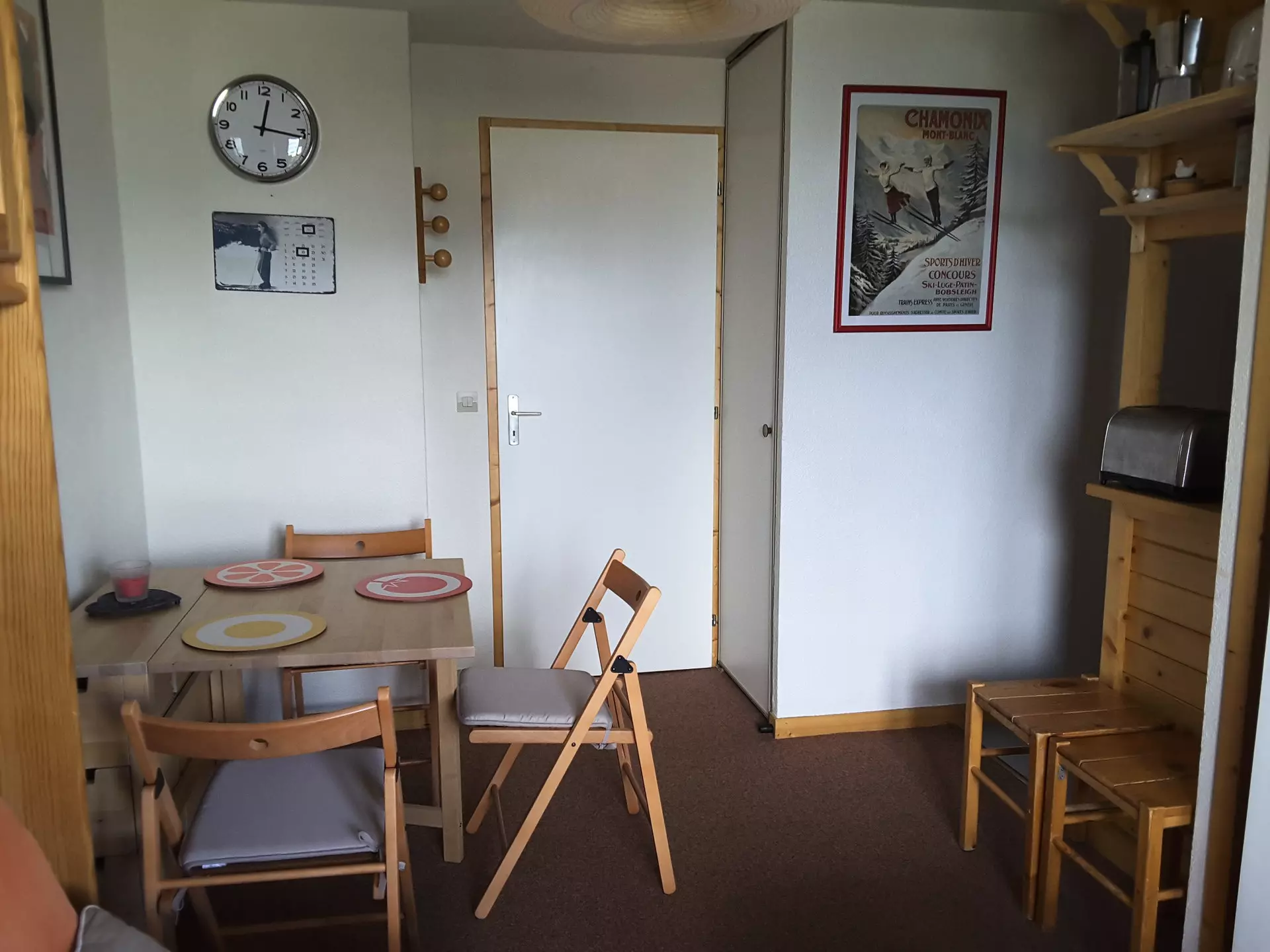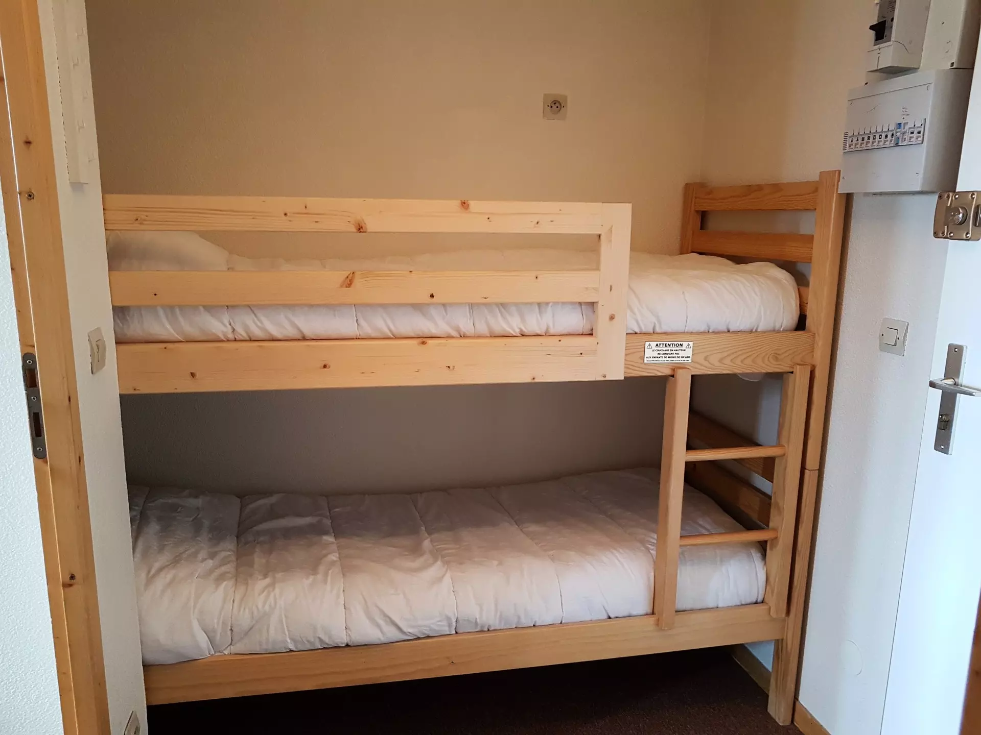 It consists of a living room with kitchenette opening onto a balcony offering a beautiful north/east view, a bathroom with bath and separate WC, a small bedroom with bunk beds and a sleeping area in the entrance with bunk beds.