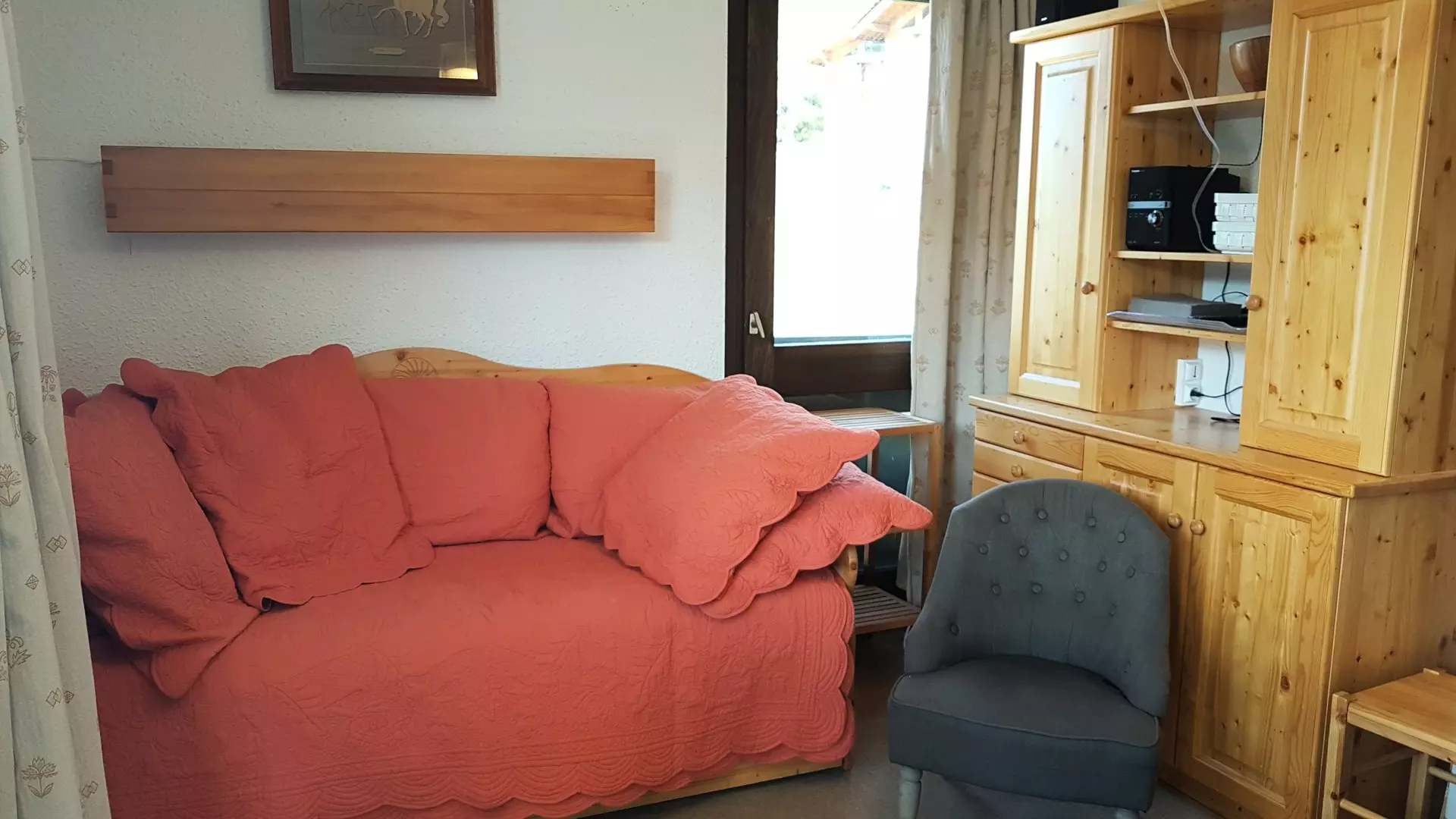 A quiet and sunny 1970s residence offering beautiful views. Free, uncovered municipal parking is available below the residence. Access is via stairs. The ski slopes are approximately 300 meters away, accessible via two different routes.