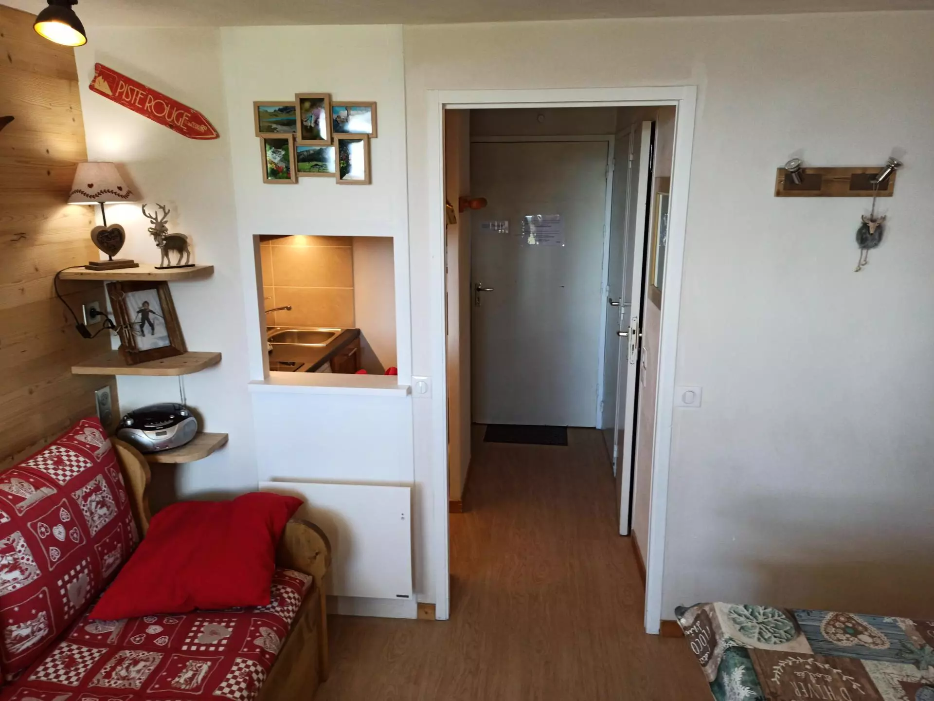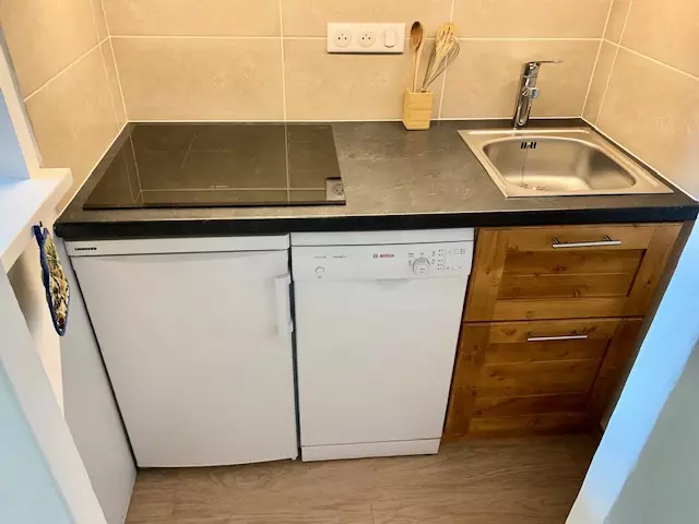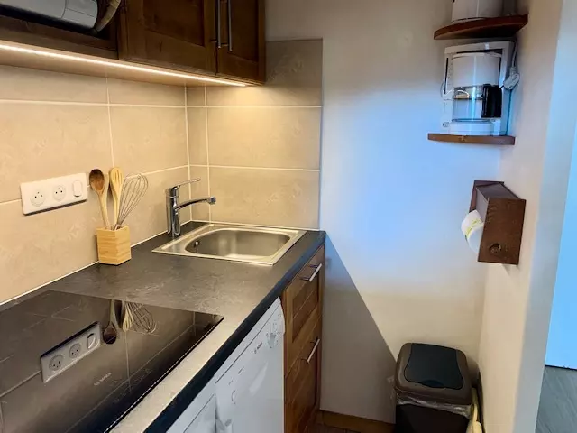 Rented for 4 people, this apartment consists of a small bedroom equipped with a double bed, a living room with a pull-out sofa bed, a kitchenette and a bathroom and separate toilet.