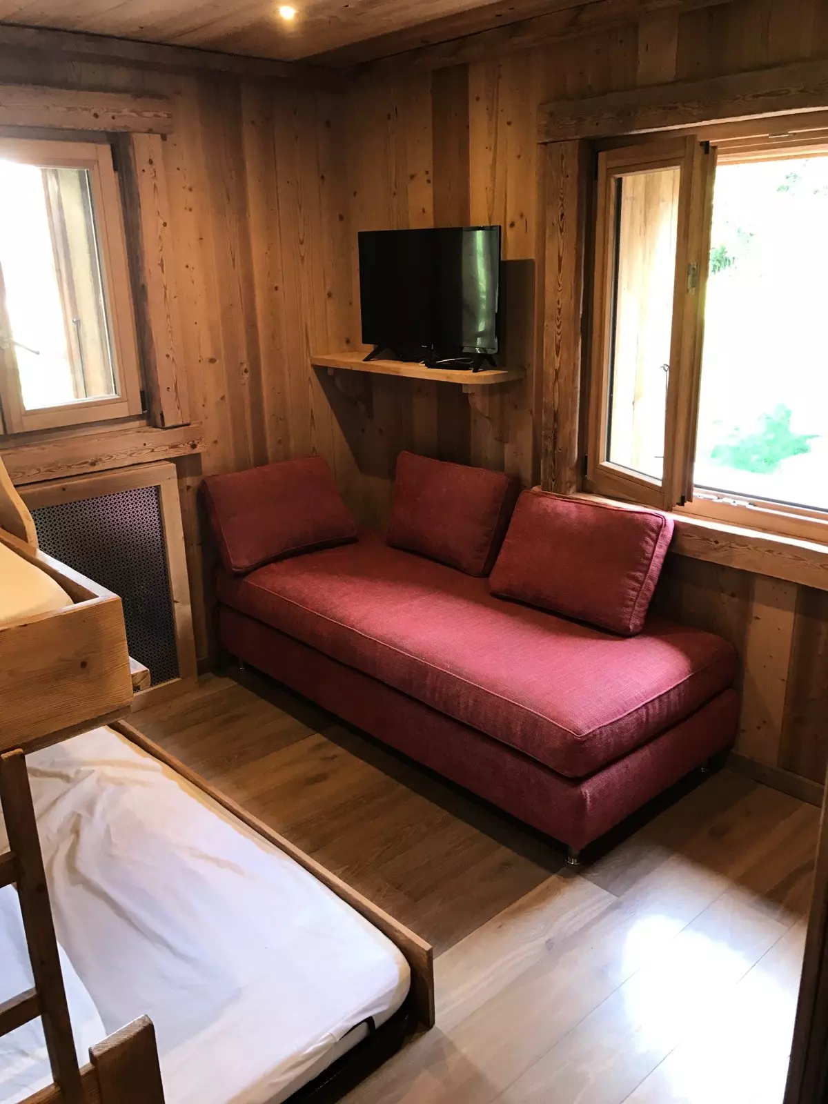 - Sleeping arrangements: One bedroom with a double bed (160 cm) and television, one bedroom with a single bed, a pull-out bed and a sofa bed (3 x 90 cm) + television, a double sofa bed (180 cm) in the living room