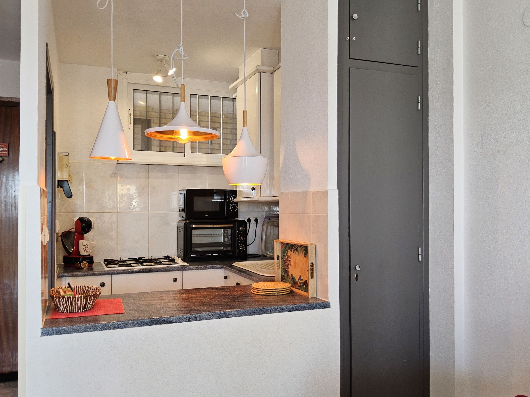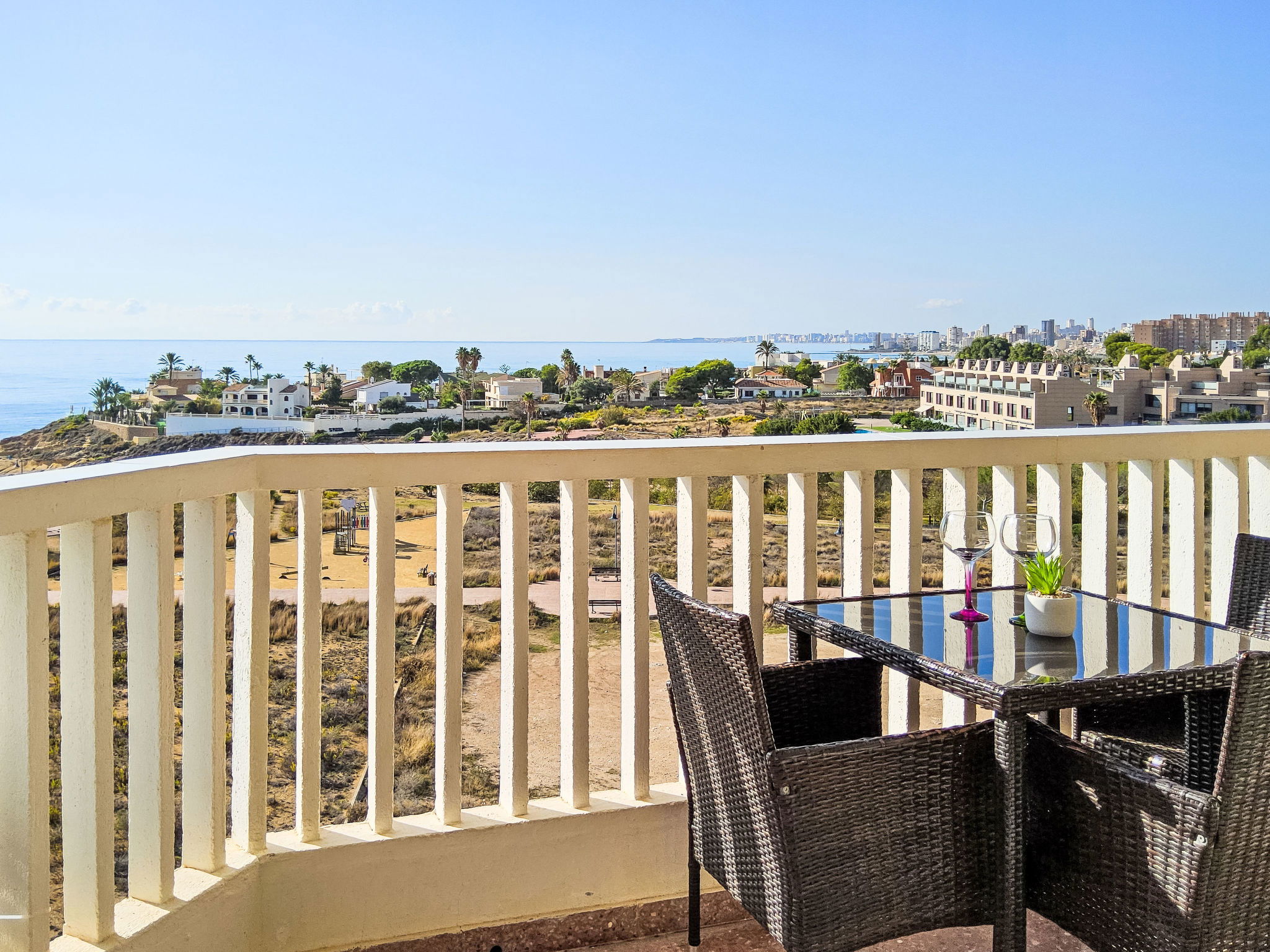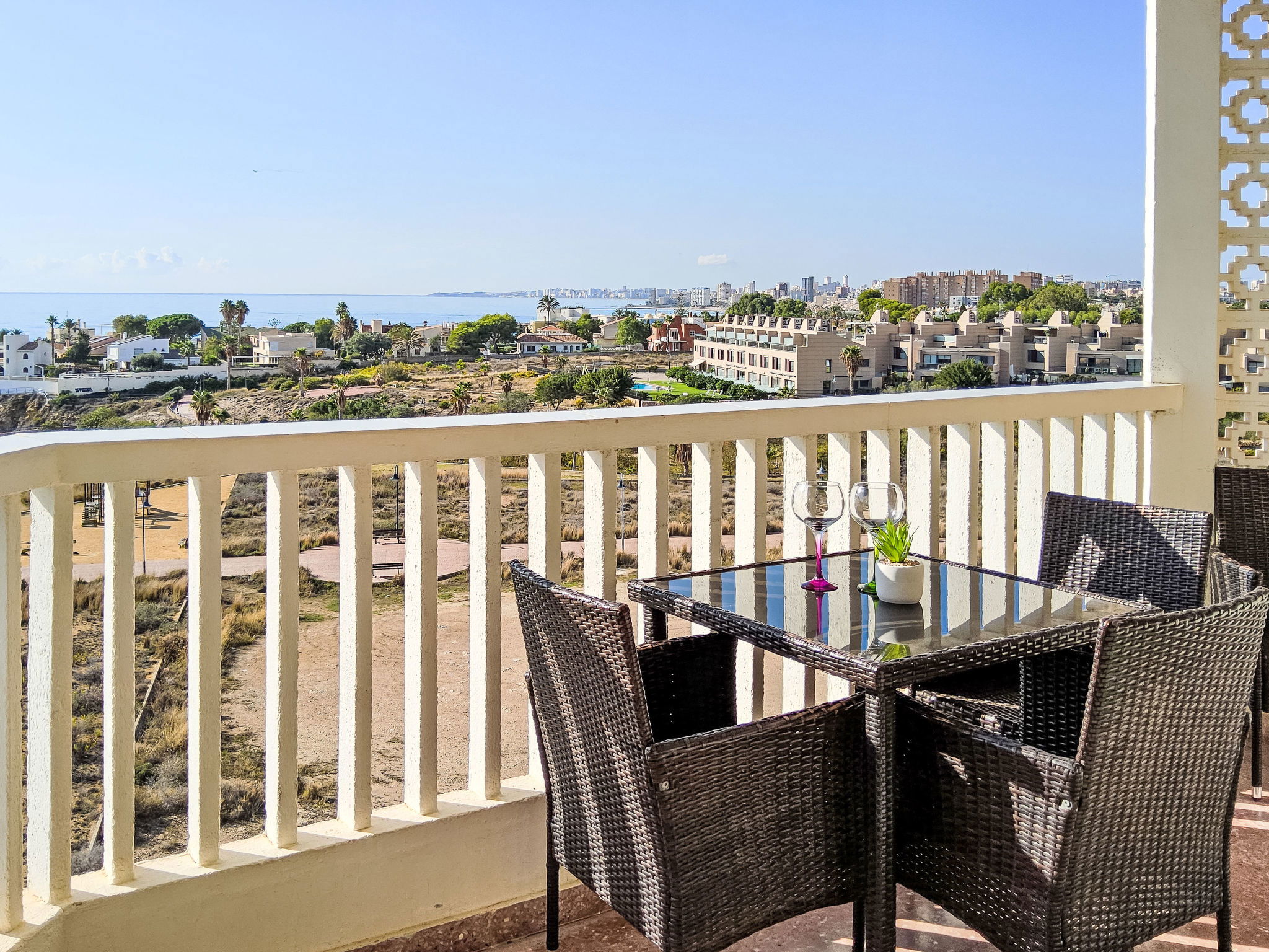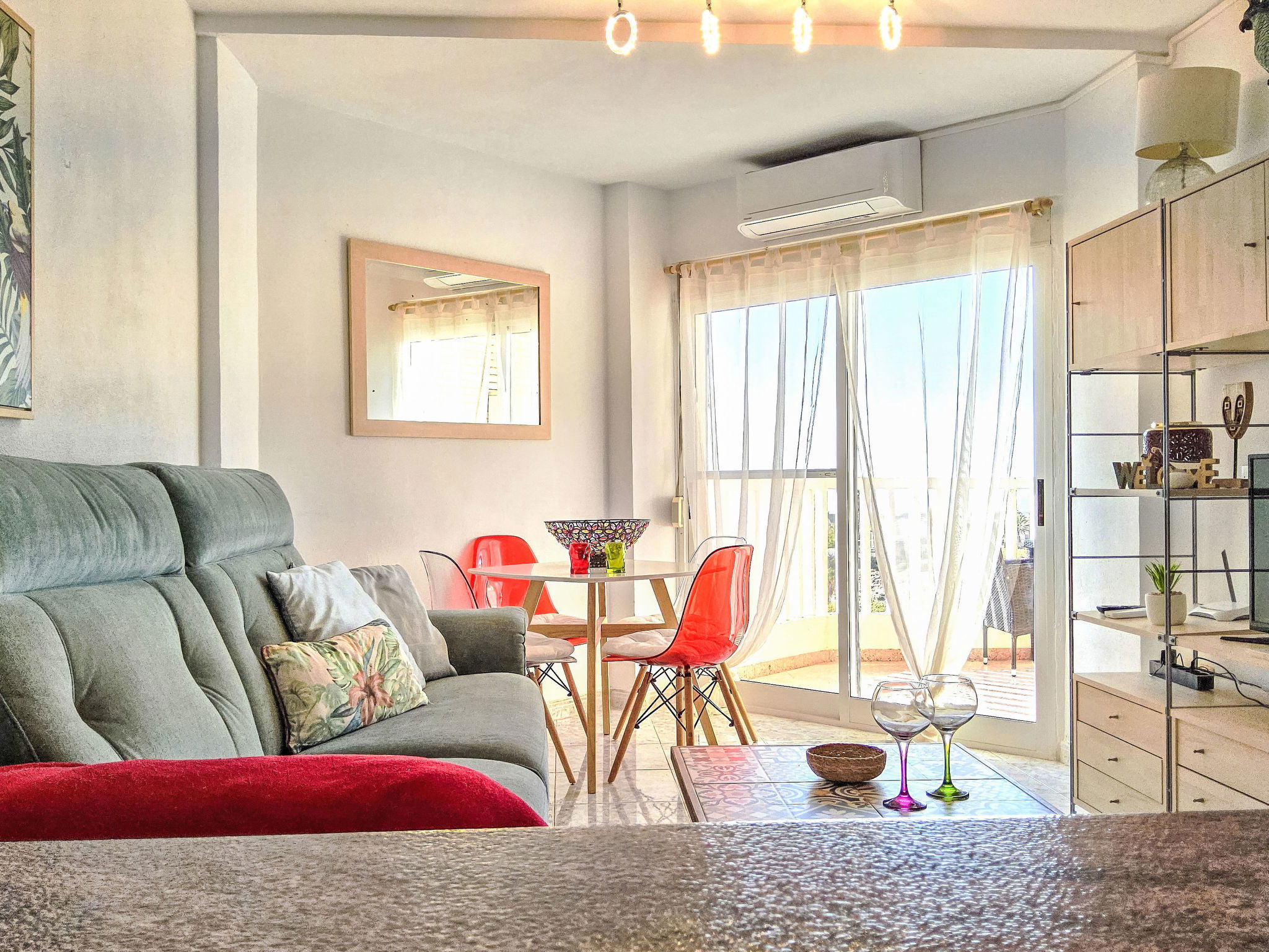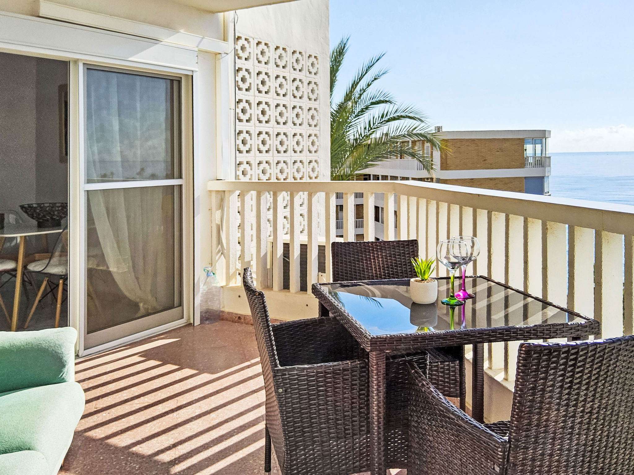"Parque Amerador", 2-room apartment 38 m2. Object suitable for 3 adults. Bright, simple and practical furnishings: living/dining room 12 m2 with 1 double sofabed (160 cm, length 190 cm), digital TV, air conditioning and forced-air heating. Exit to the terrace. 1 room 6 m2 with 1 french bed (150 cm, length 200 cm), fan. Kitchenette (oven, 2 ceramic glass hob hotplates, toaster, kettle, microwave, freezer, electric coffee machine). Shower/WC. Forced-air heating. Terrace 8 m2. Terrace furniture. View of the sea. Facilities: washing machine, iron, hair dryer. Internet (WiFi, free). Maximum 1 small pet/ dog allowed. EGTV593-A. VT-485099-A // Reg. Nr.: ESFCTU00000305600011721400000000000000000VT-485099-A4
