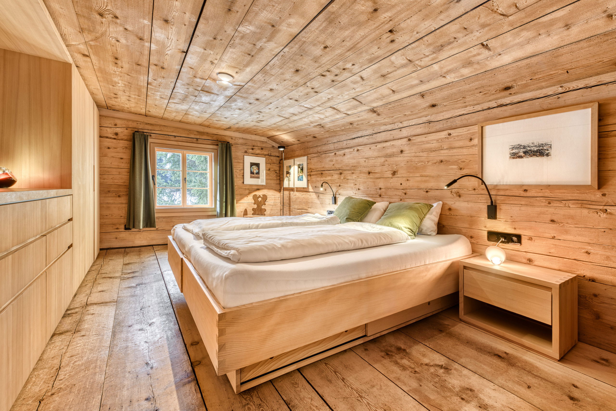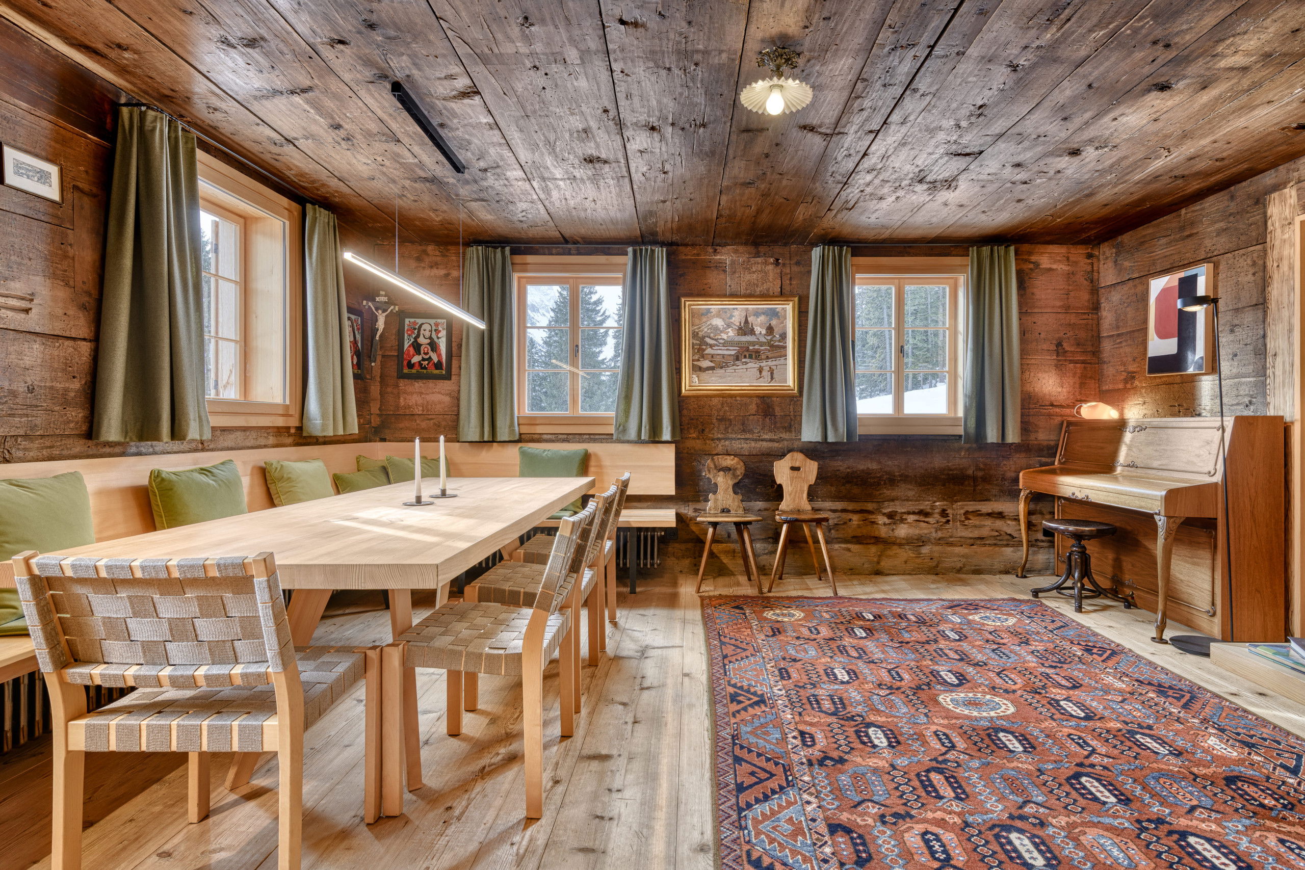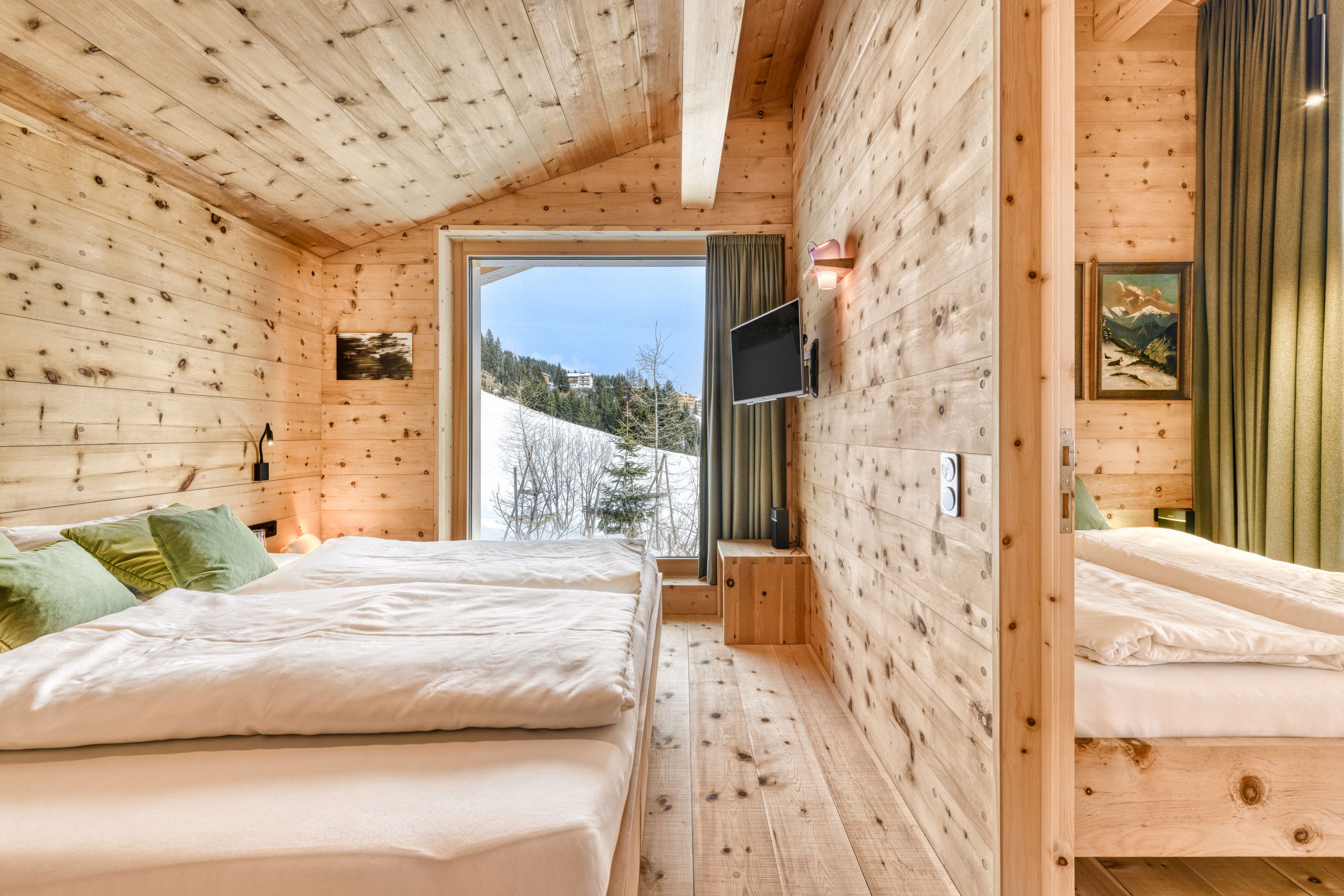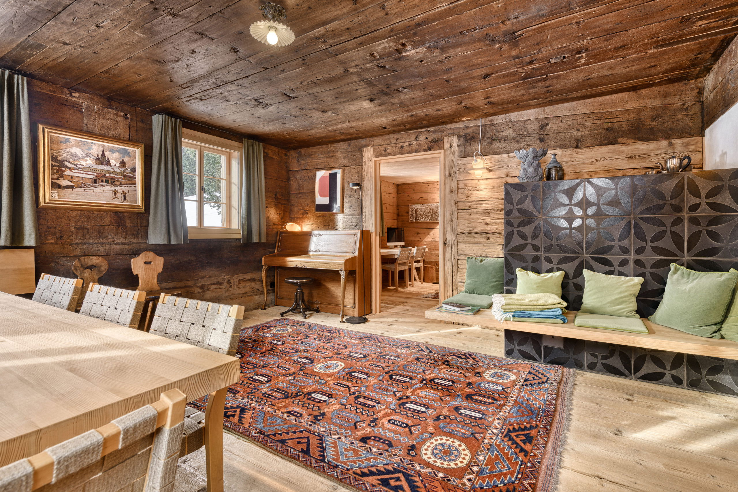 On 200 m² you will find space for up to eight people. Four stylishly designed bedrooms with large double beds and modern bathrooms, a spacious living room with an open fireplace and tiled stove as well as a cosy reading corner create comfortable retreat opportunities. The kitchen is fully equipped – from wine cooler to Thermomix – and if desired, you can have someone cook for you. Sound system, flat-screen TV and loving details such as a library or a separate dining room round off the comfort. A ski storage room and underground garage spaces are of course included.