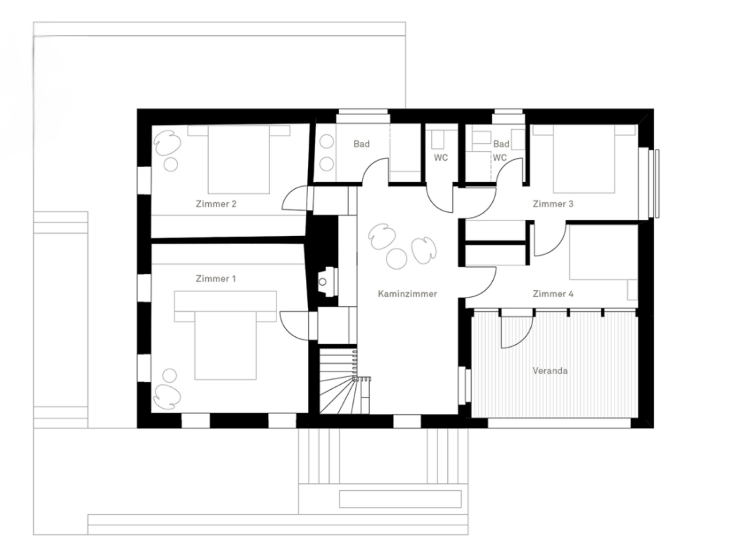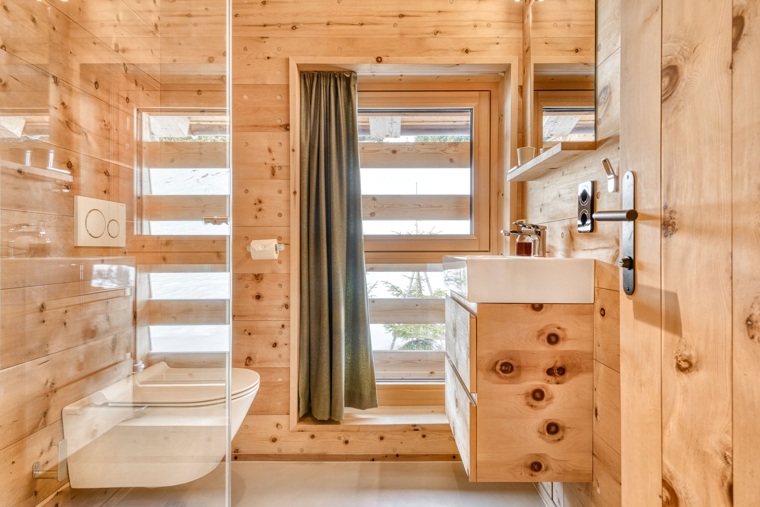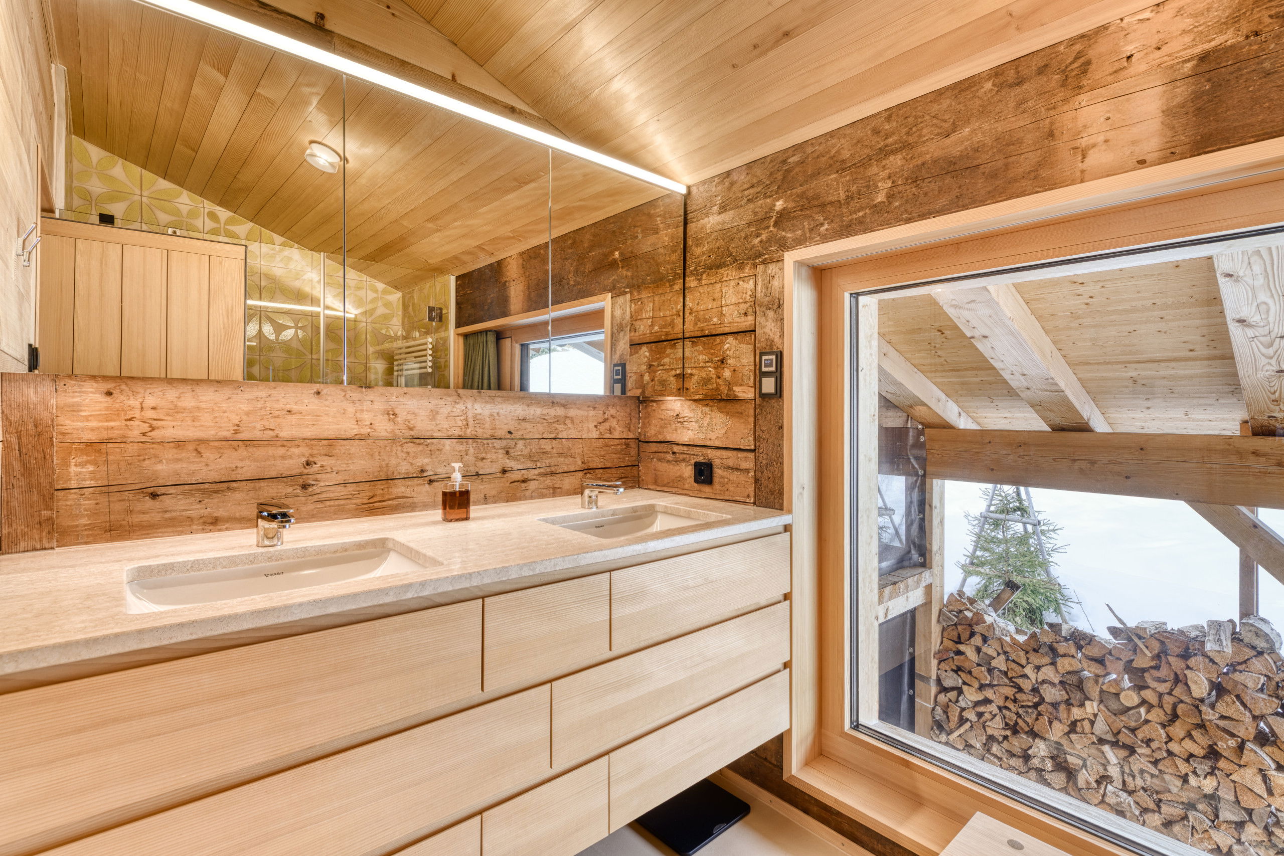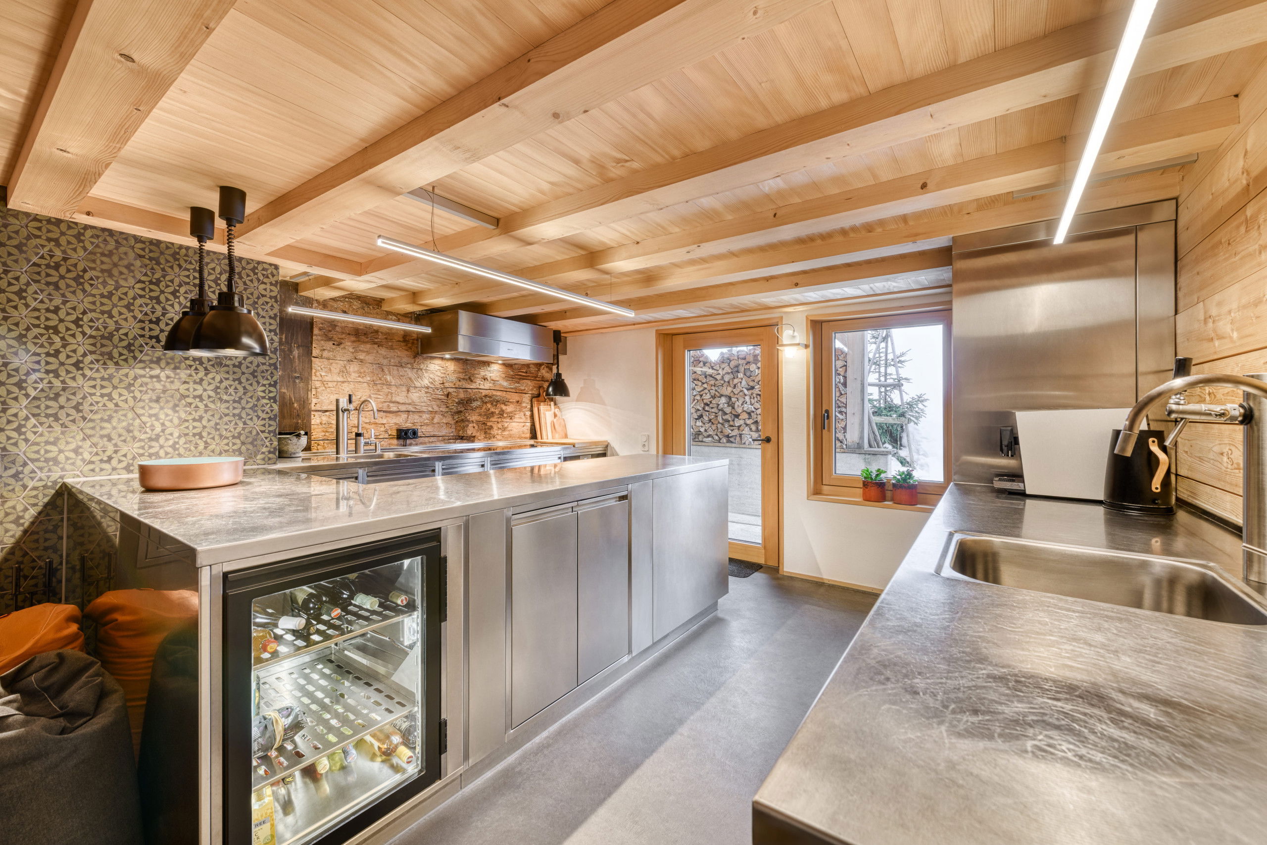 On 200 m² you will find space for up to eight people. Four stylishly designed bedrooms with large double beds and modern bathrooms, a spacious living room with an open fireplace and tiled stove as well as a cosy reading corner create comfortable retreat opportunities. The kitchen is fully equipped – from wine cooler to Thermomix – and if desired, you can have someone cook for you. Sound system, flat-screen TV and loving details such as a library or a separate dining room round off the comfort. A ski storage room and underground garage spaces are of course included.