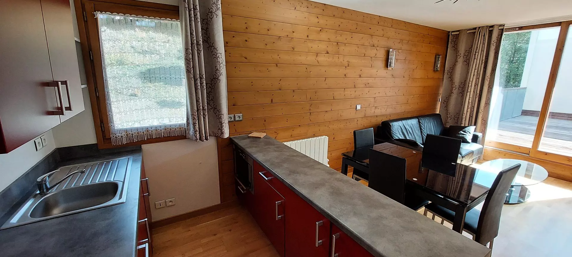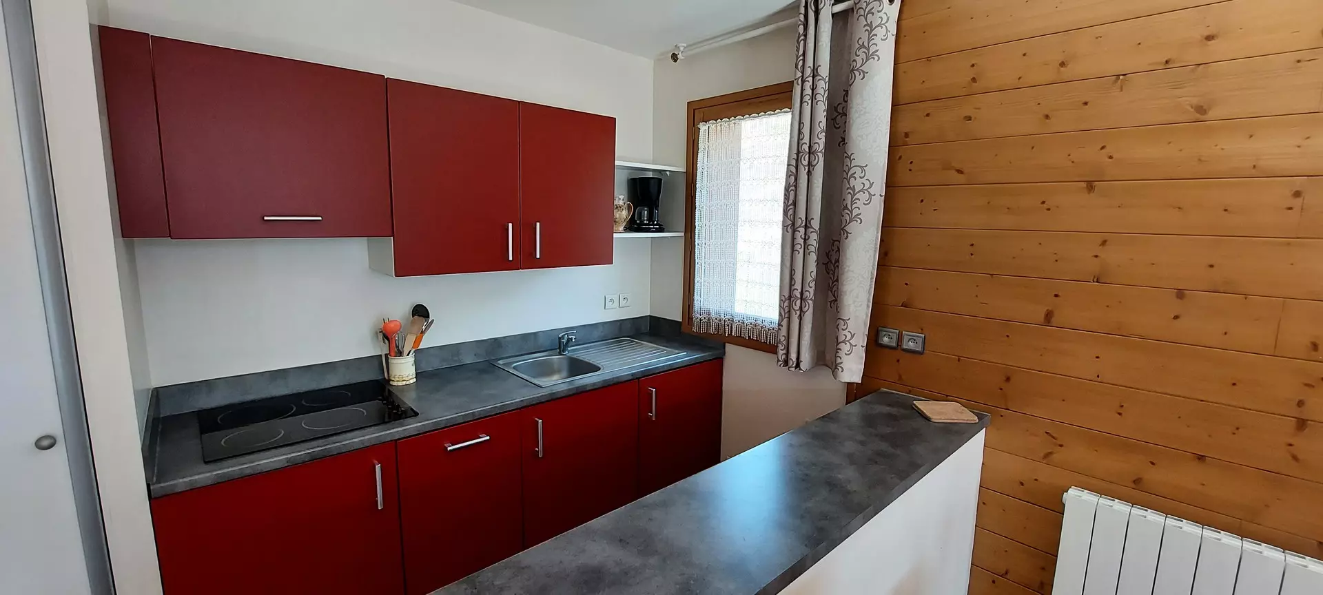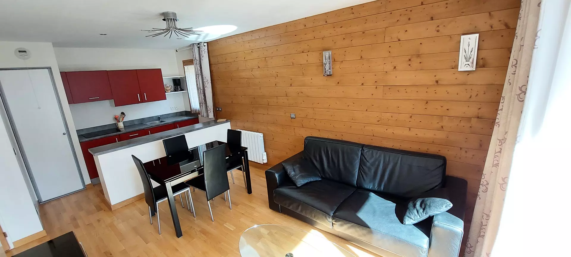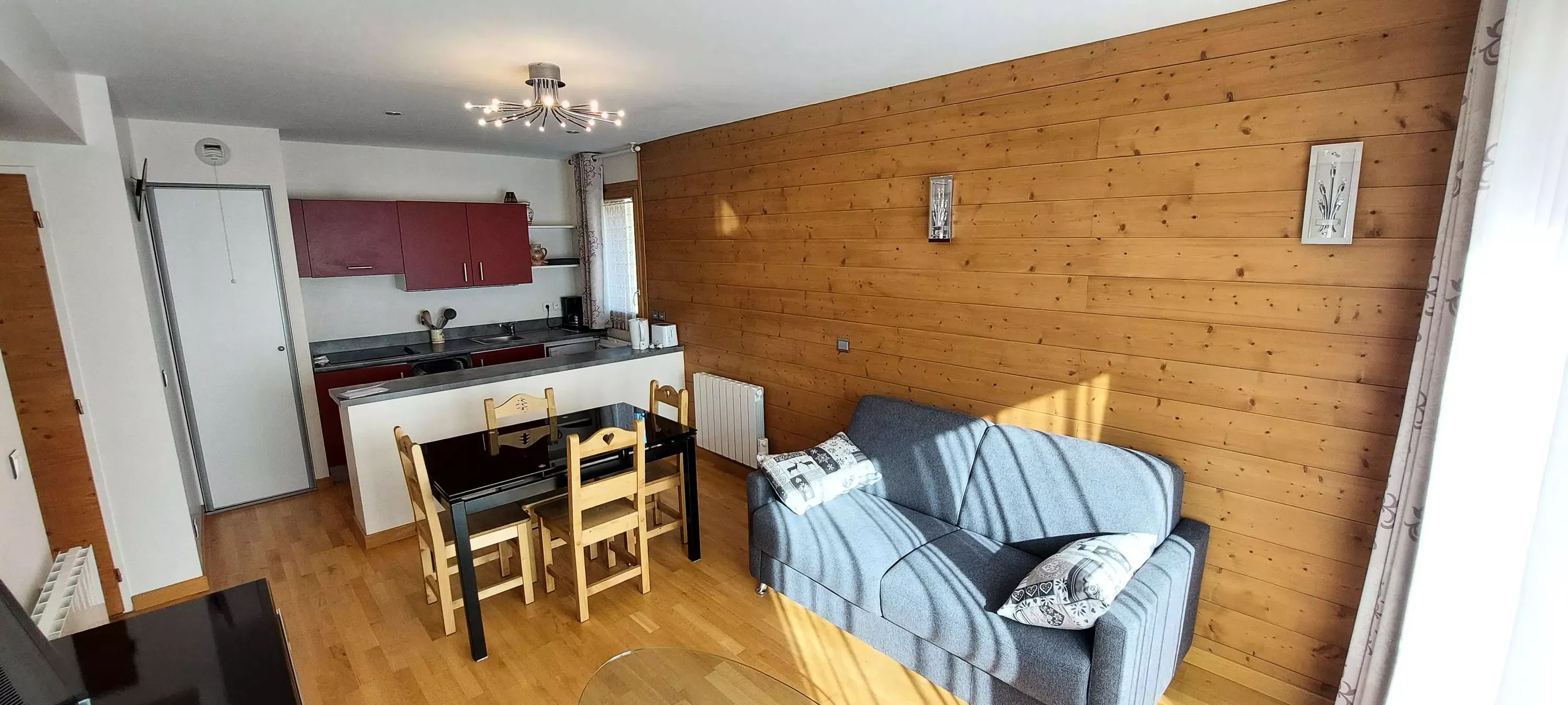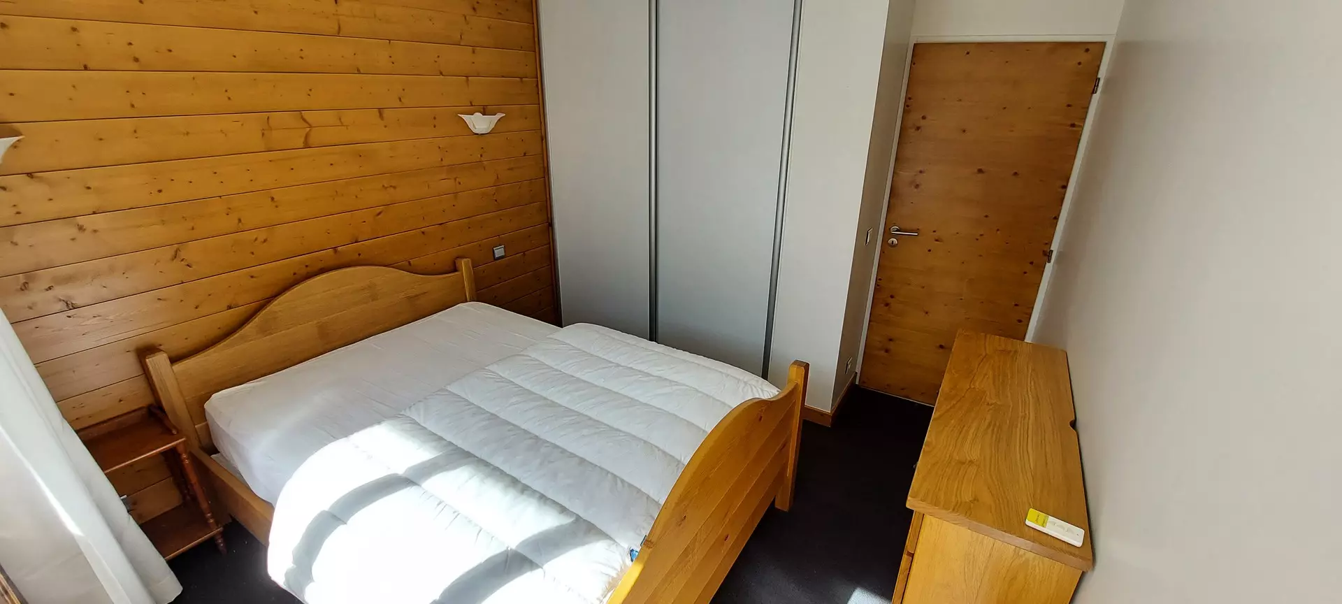 This apartment, rented for 4 people, consists of an entrance, a bedroom with a double bed, a bathroom with separate WC, an open kitchen leading to the living room equipped with a sofa bed for 2 people.