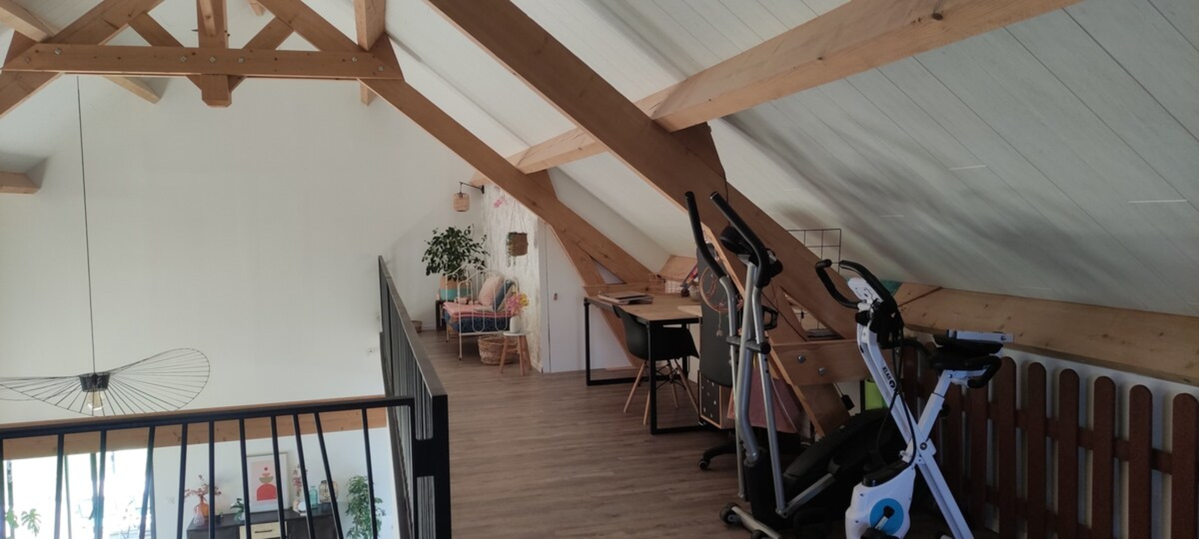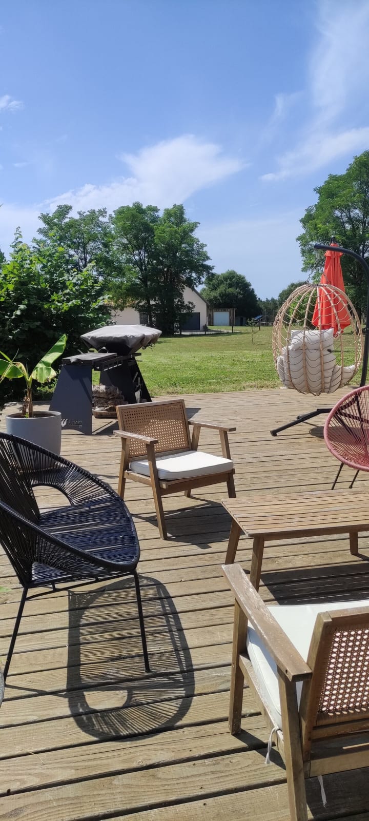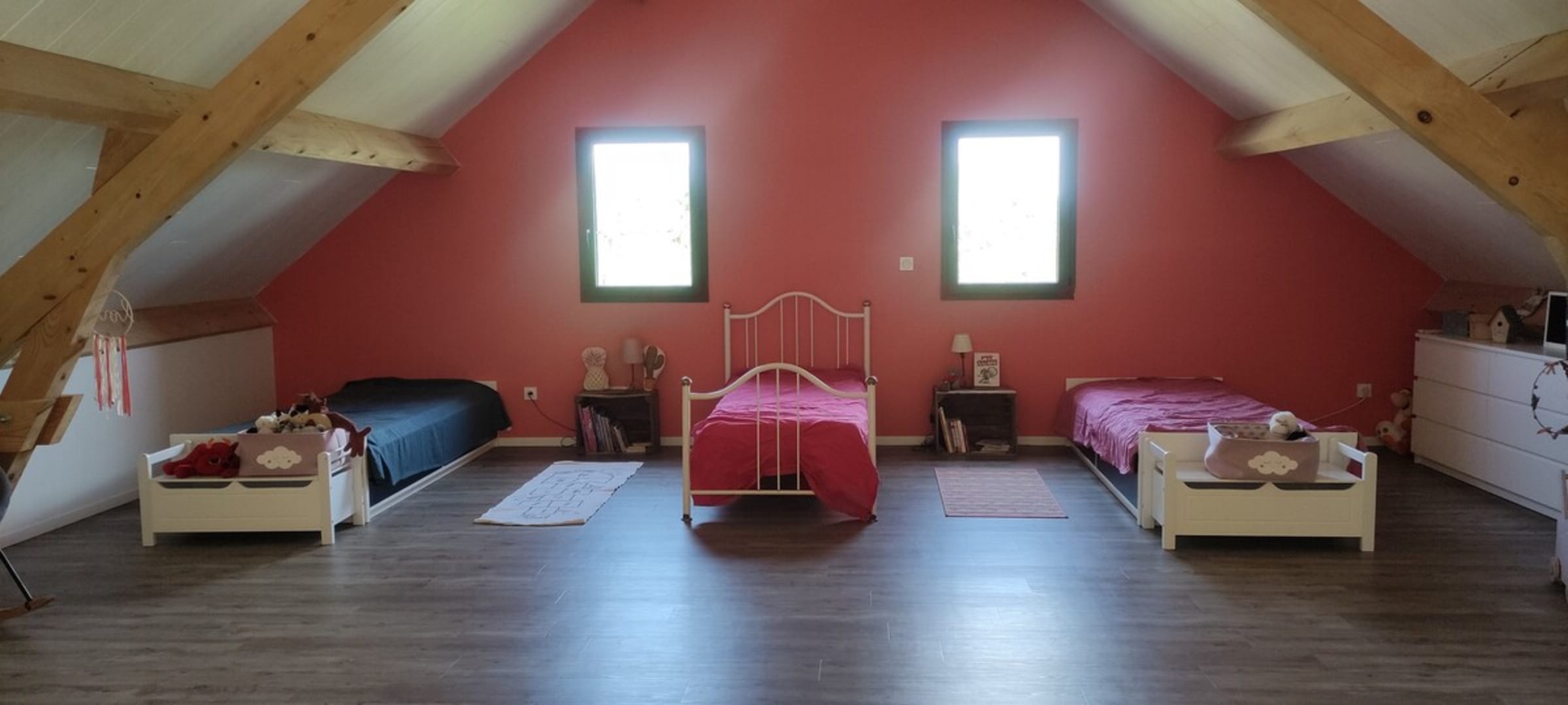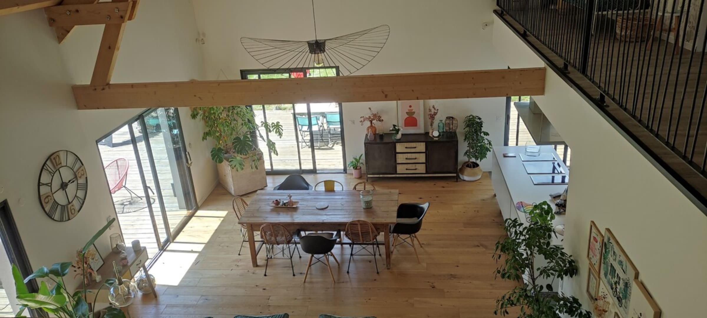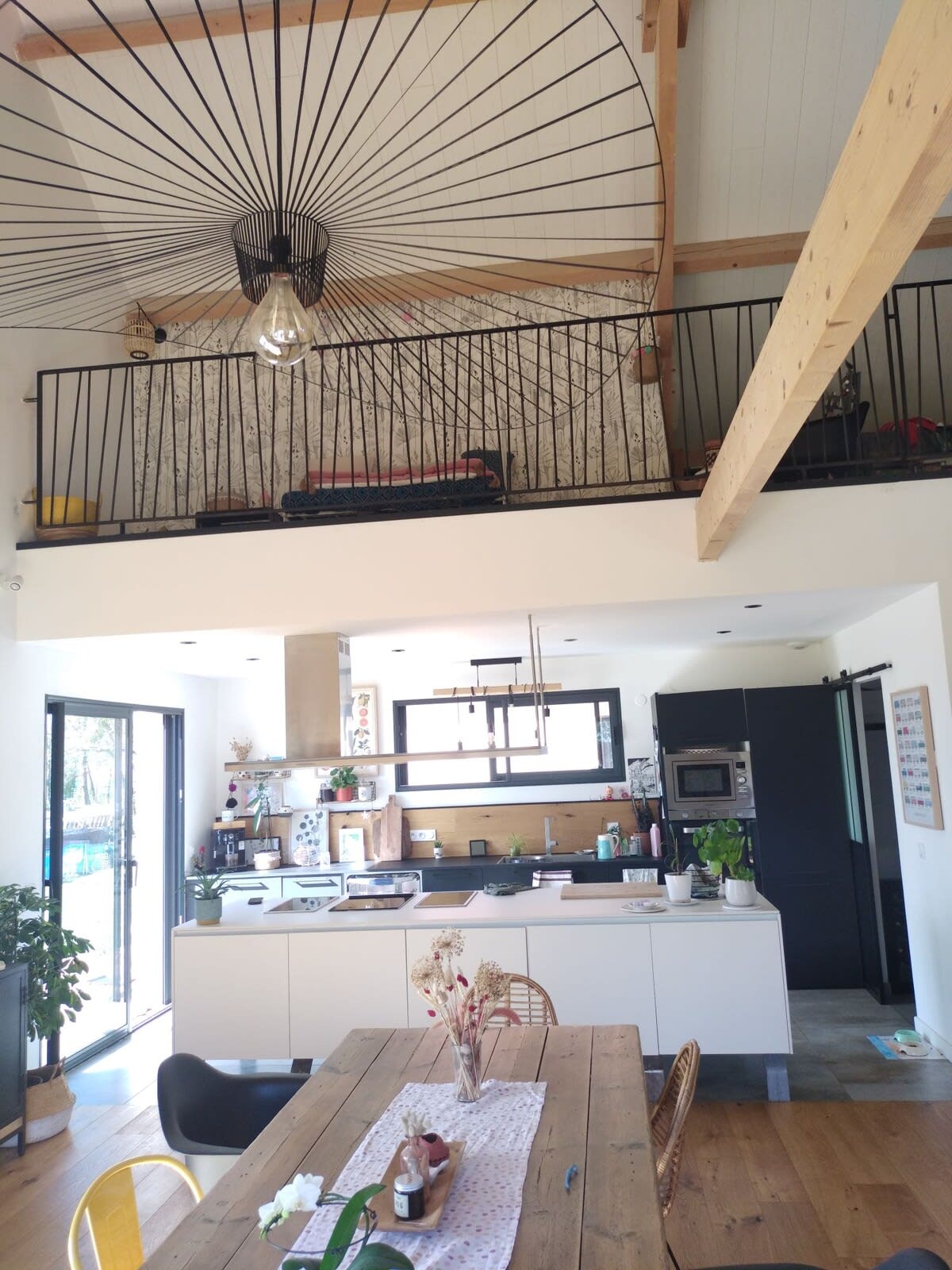 La maison est composée d'une entrée, d'un grand séjour, salle àmanger, une cuisine tout équipé a laquelle est attenant un cellier/buanderie avec tout le nécessaire (machine a laver, sèche linge...). Elle dispose de 3 chambres de plain pied ( 2 avec un lit en 160x200 et 1 avec un lit en 90x 190), une salle de bain et un toilette. L'étage est composé d'une grande mezzanine de 80m2 dans laquelle il y a un espace enfant, avec 3 lits en 90x190. La maison est implantée sur une parcelle d'environ 4000m2, elle dispose d'une grande terrasse pour profiter de l'extérieur.