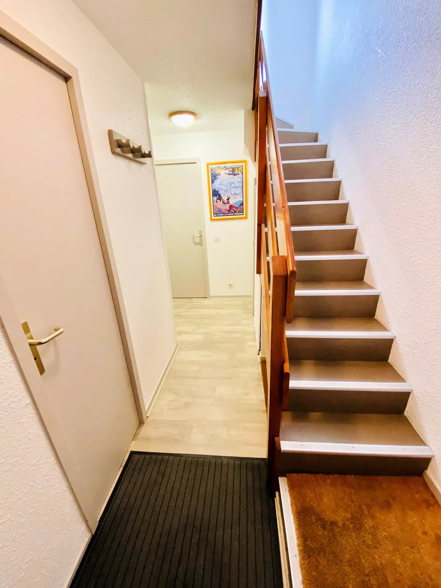 The upper floor is accessible via a staircase.