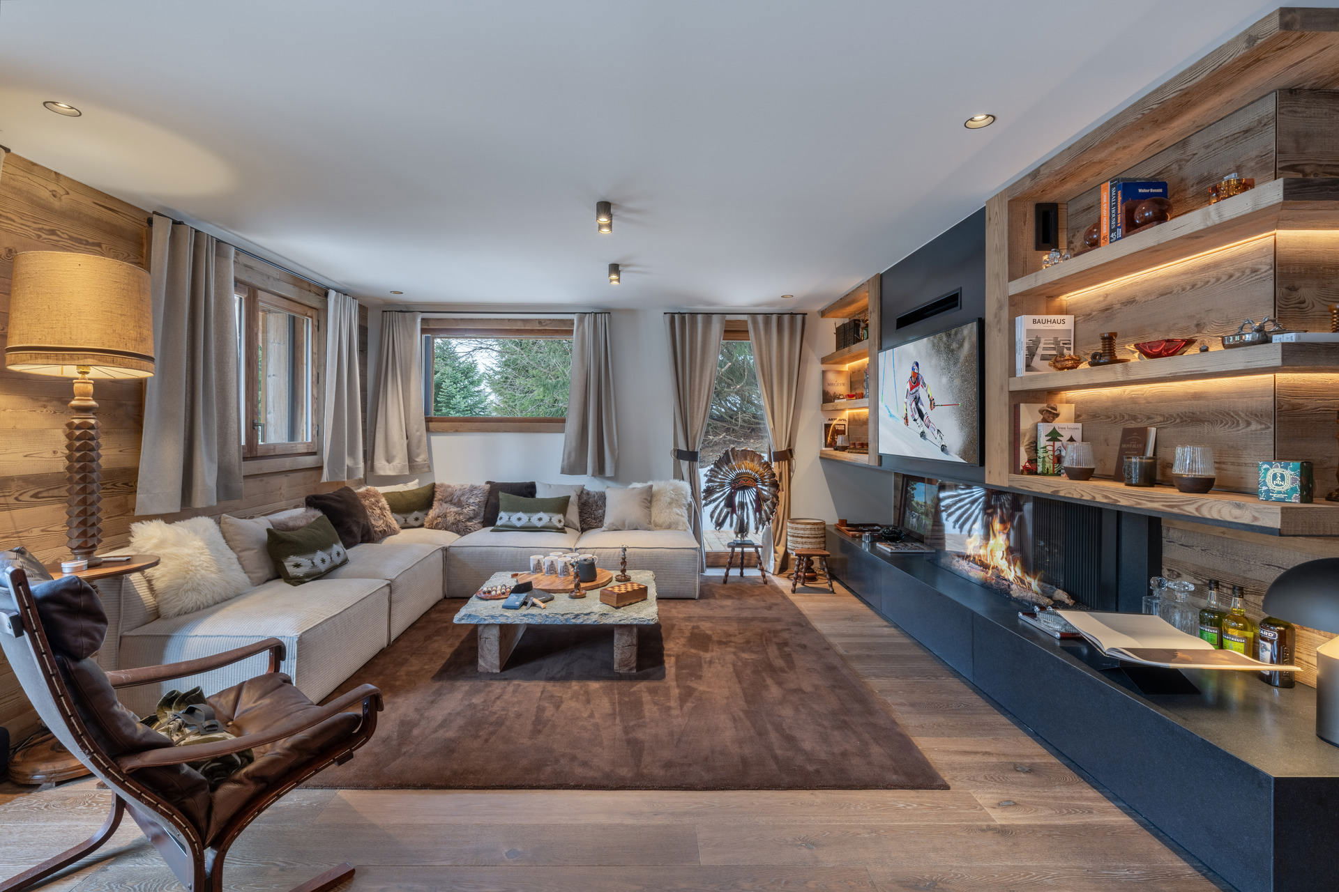 - Living room with lounge area and gas fireplace