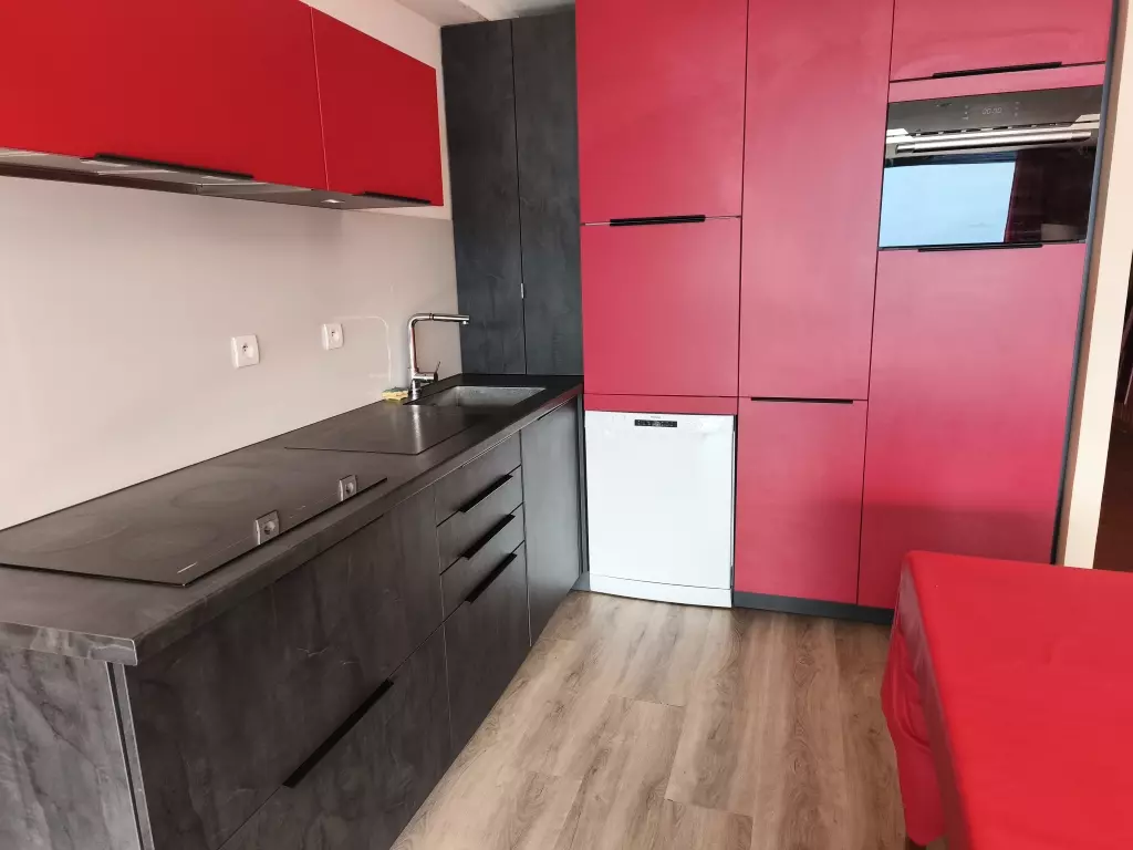 Kitchen area: with kettle, coffee maker, refrigerator, induction hob, dishwasher and microwave.
