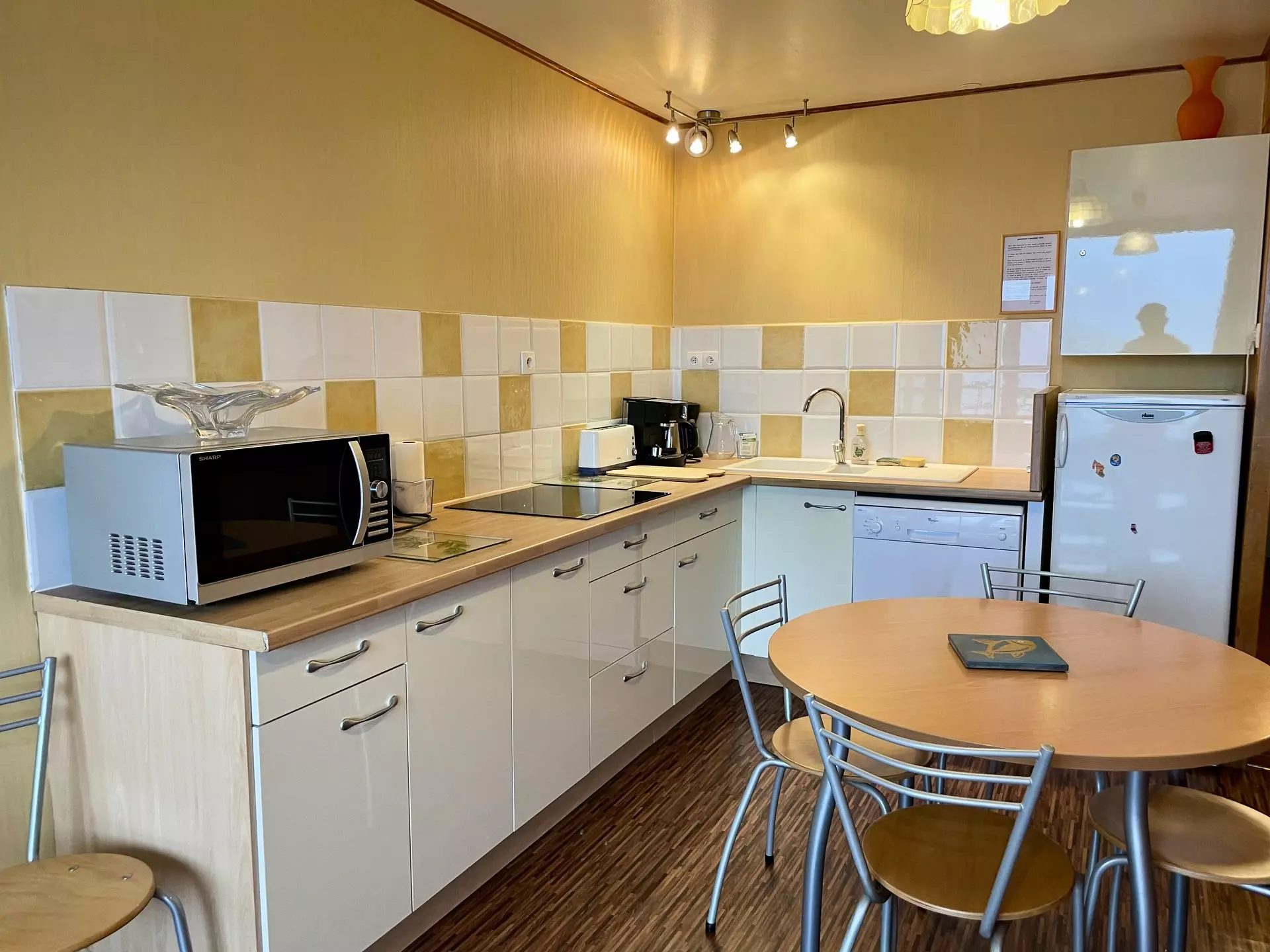 Kitchen area: with coffee maker, refrigerator, induction hob, dishwasher and microwave.