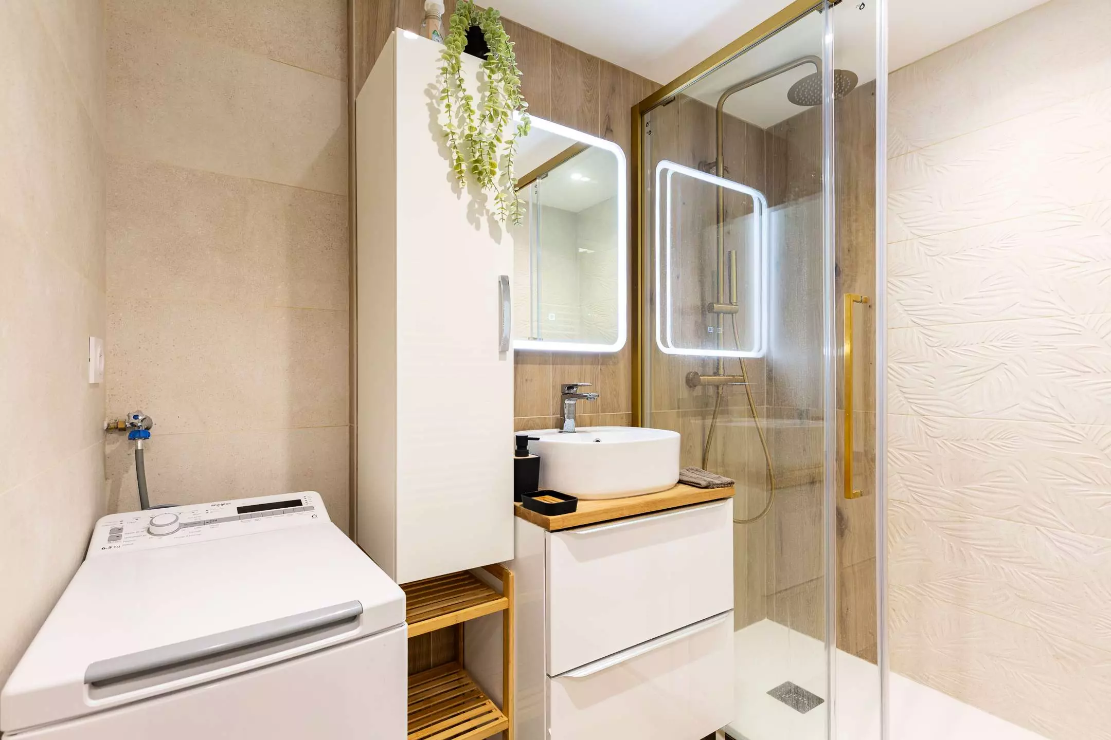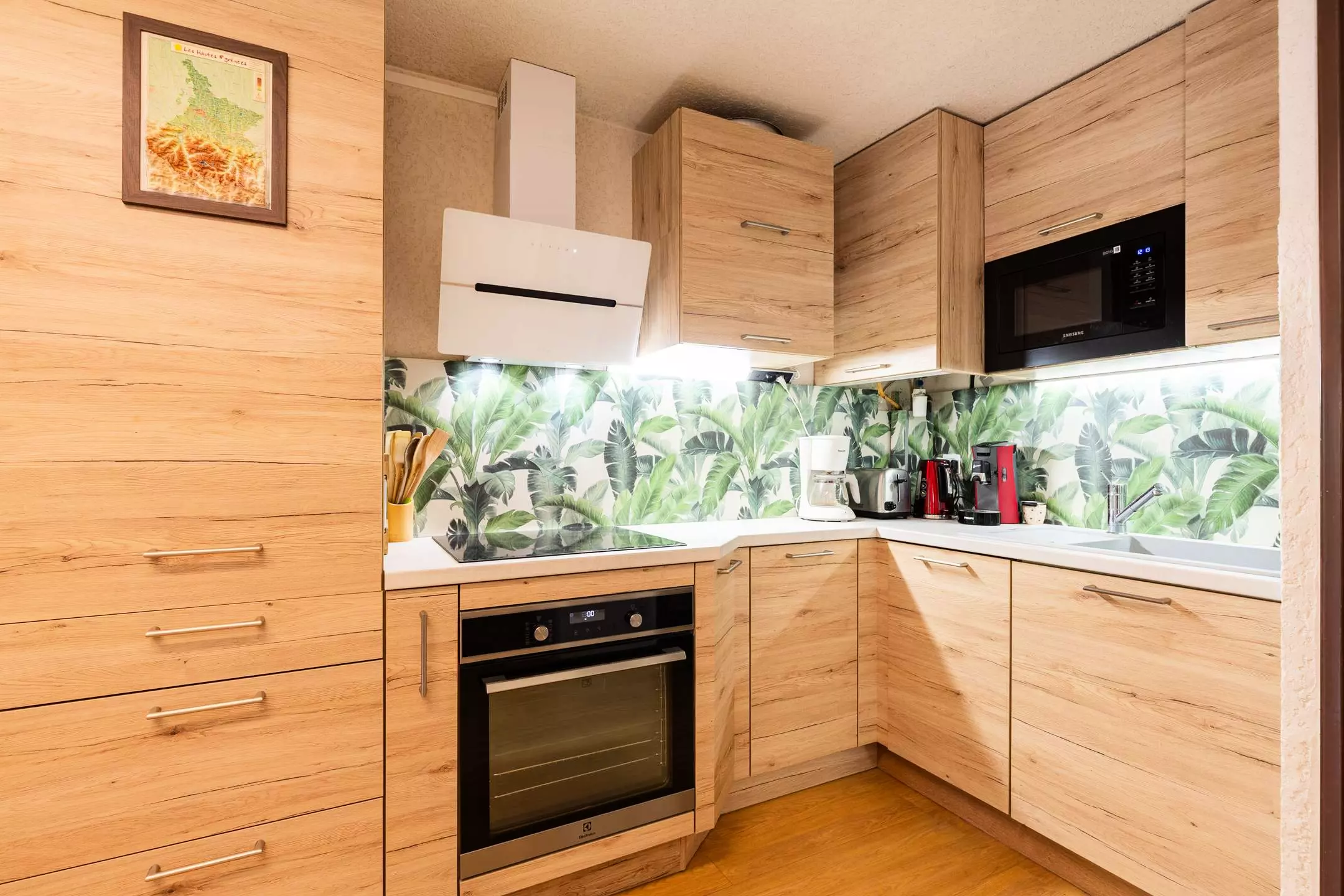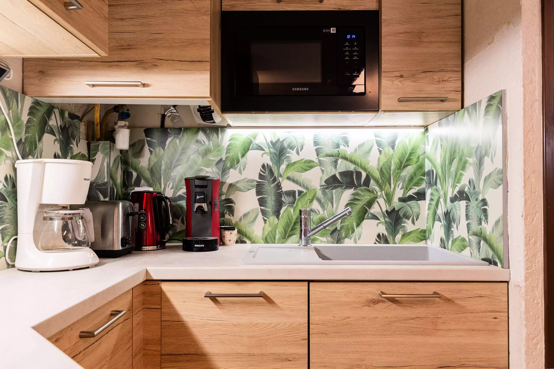 Finally, the kitchenette equipped with a mini-oven and microwave opens onto the living room.