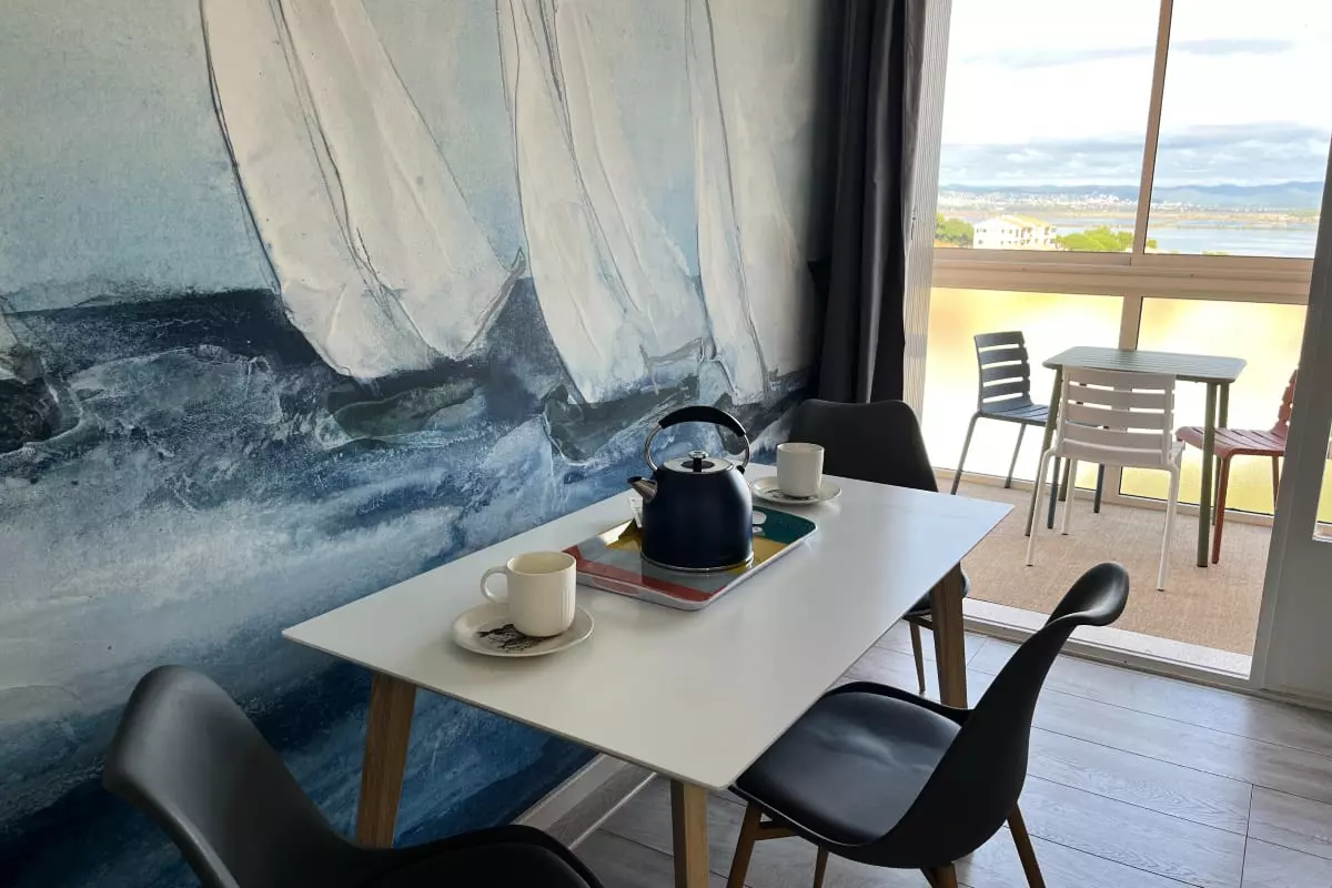 Enjoy a private balcony with views of the salt marshes and observe the flamingos in their natural habitat. You'll particularly appreciate the practicality and tranquility of this space.