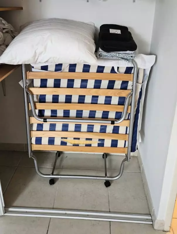 For added flexibility, a 90x190 folding bed is also available in the cupboard.
