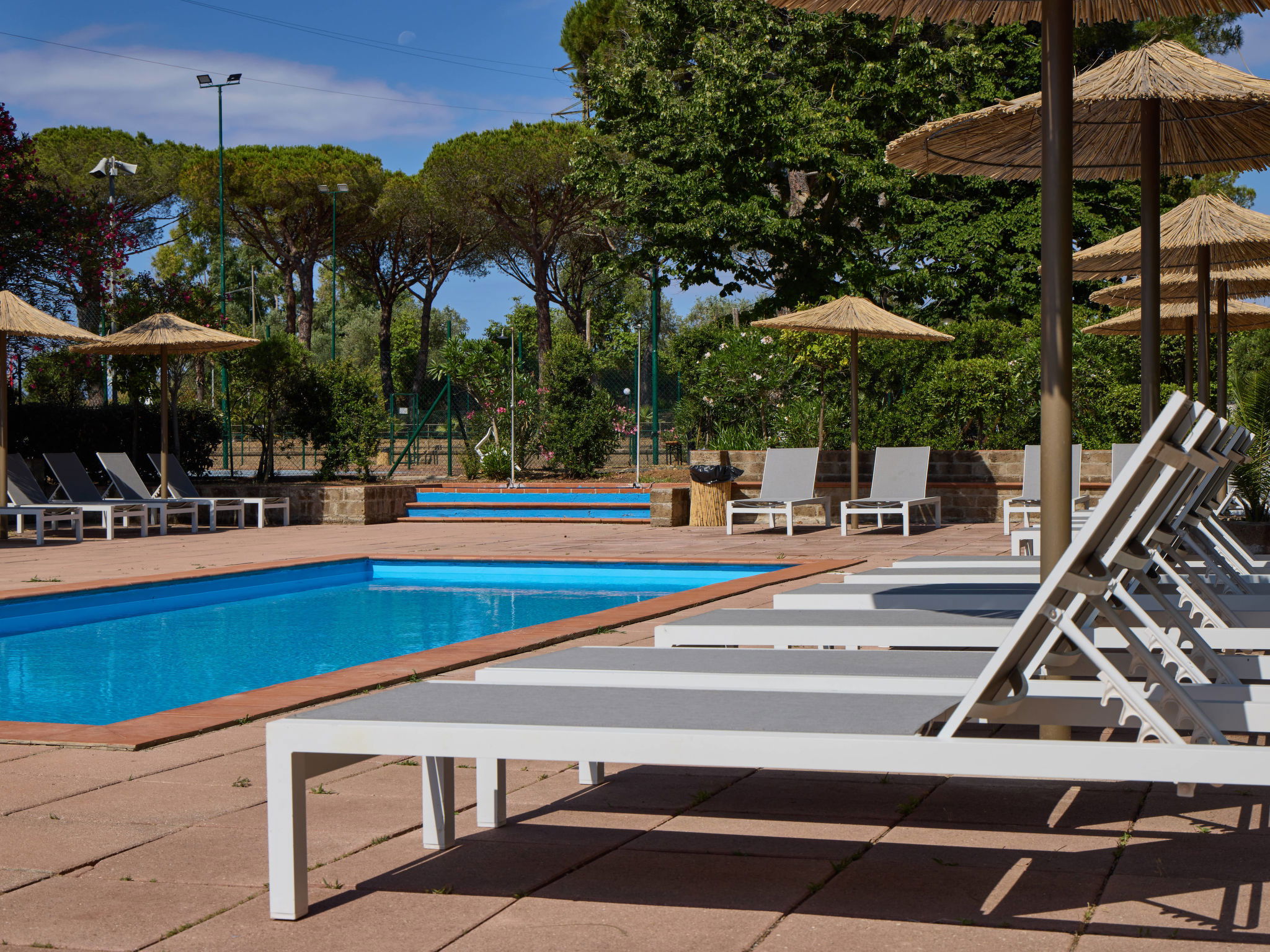 Maremma Toscana: Resort "Costa D'Argento". Outside the resort, 13 km from the centre of Capalbio, 3 km from the sea, 3 km from the beach, in the countryside. For shared use: natural state property with trees, swimming pool (seasonal availability: 15.Jun. - 30.Sep.). Children's pool, outdoor shower. In the complex: reception, restaurant, bar, shopping facilities, washing machine (extra) (for shared use). Parking. Bus stop 600 m, railway station "Capalbio Scalo" 7 km, ferry "Porto Santo Stefano" 24 km, sandy beach "Shuttle Bus free July - August" 3 km, park "Parco Regionale della Maremma" 44 km. Nearby attractions: Porto Santo Stefano 24 km, Grosseto 50 km, Roma 150 km. Well-known lakes can easily be reached: Lago di Bolsena 83 km. Please note: baby equipment on request (extra). The owner does not accept any groups. The owner does not accept any youth groups. Obligation to wear bathing caps.
