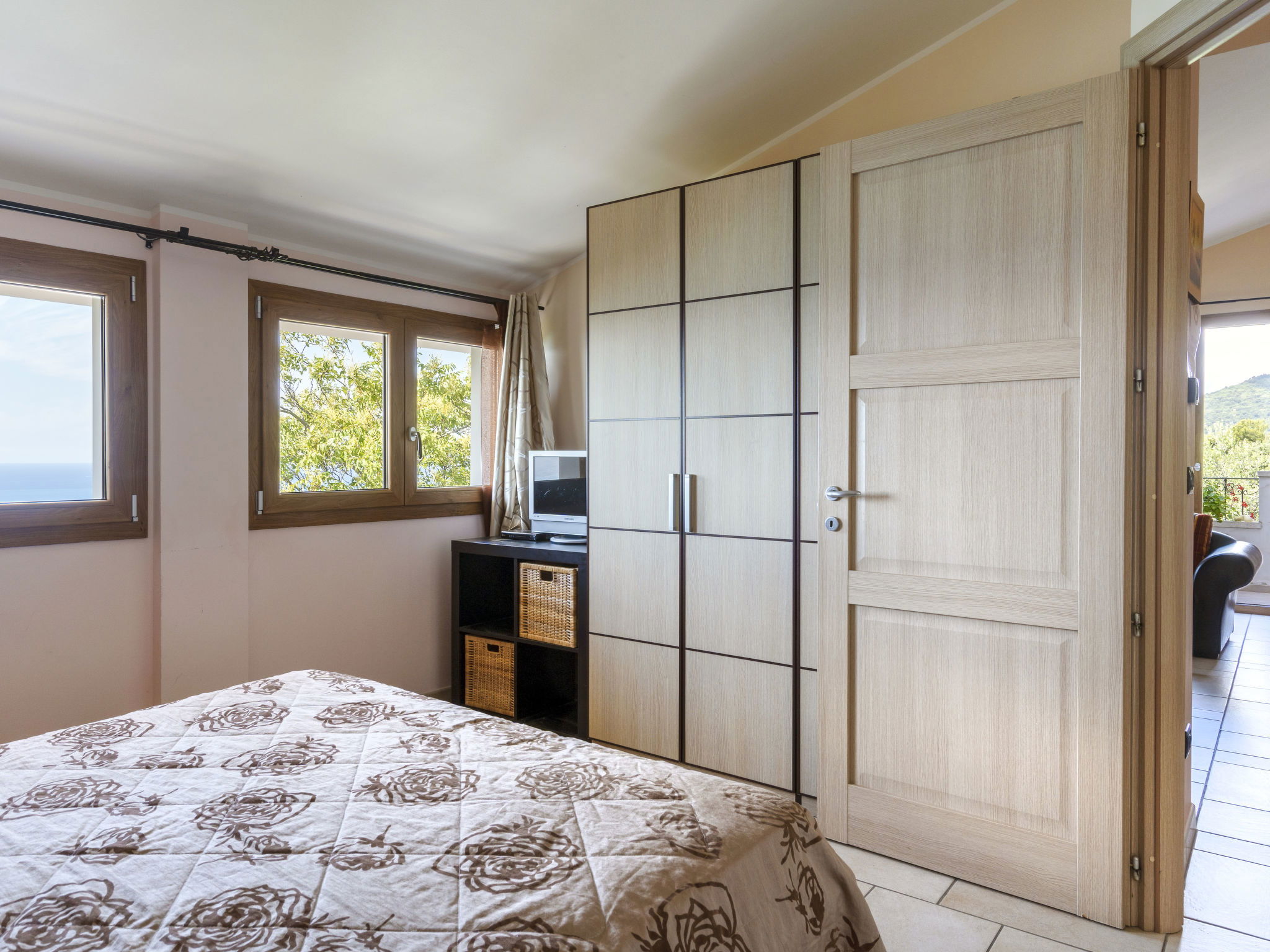 "Ginestra", 3-room apartment 74 m2 on 2nd floor. Bright, modern and tasteful furnishings: living room with satellite TV, DVD, electric heating and air conditioning. Exit to the balcony. 1 double bedroom with 1 double bed (160 cm, length 200 cm). 1 room with 1 french bed (140 cm, length 200 cm). Kitchen (oven, dishwasher, 4 gas rings, toaster, kettle, freezer) with dining table. Shower/bidet/WC. Gas heating. Small balcony 5 m2, large terrace 20 m2 partly roofed, garden, lawn, porch. Terrace furniture, balcony furniture, barbecue (portable), deck chairs (2), box-room. Marvellous panoramic view of the sea, the countryside and the bay. Facilities: washing machine, iron. Internet (WiFi, free). Please note: non-smokers only. Maximum 1 pet/ dog allowed. Private entrance. IT008065C2FEFV5UUI