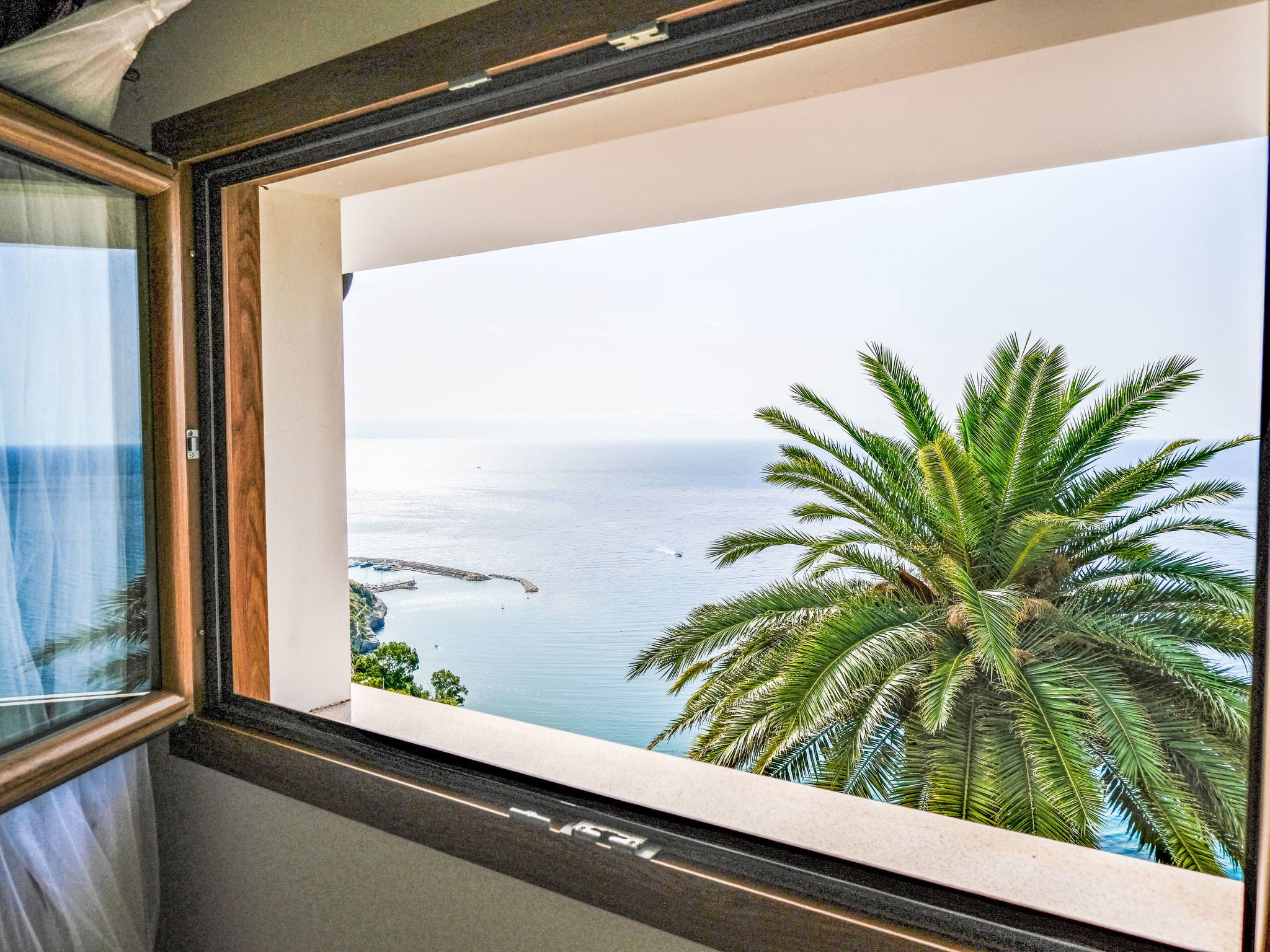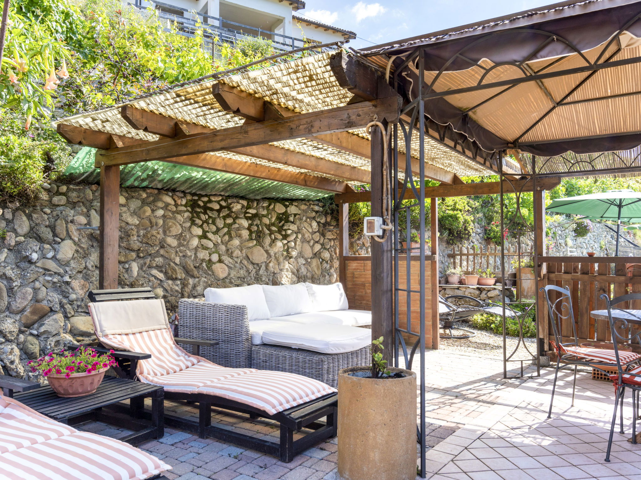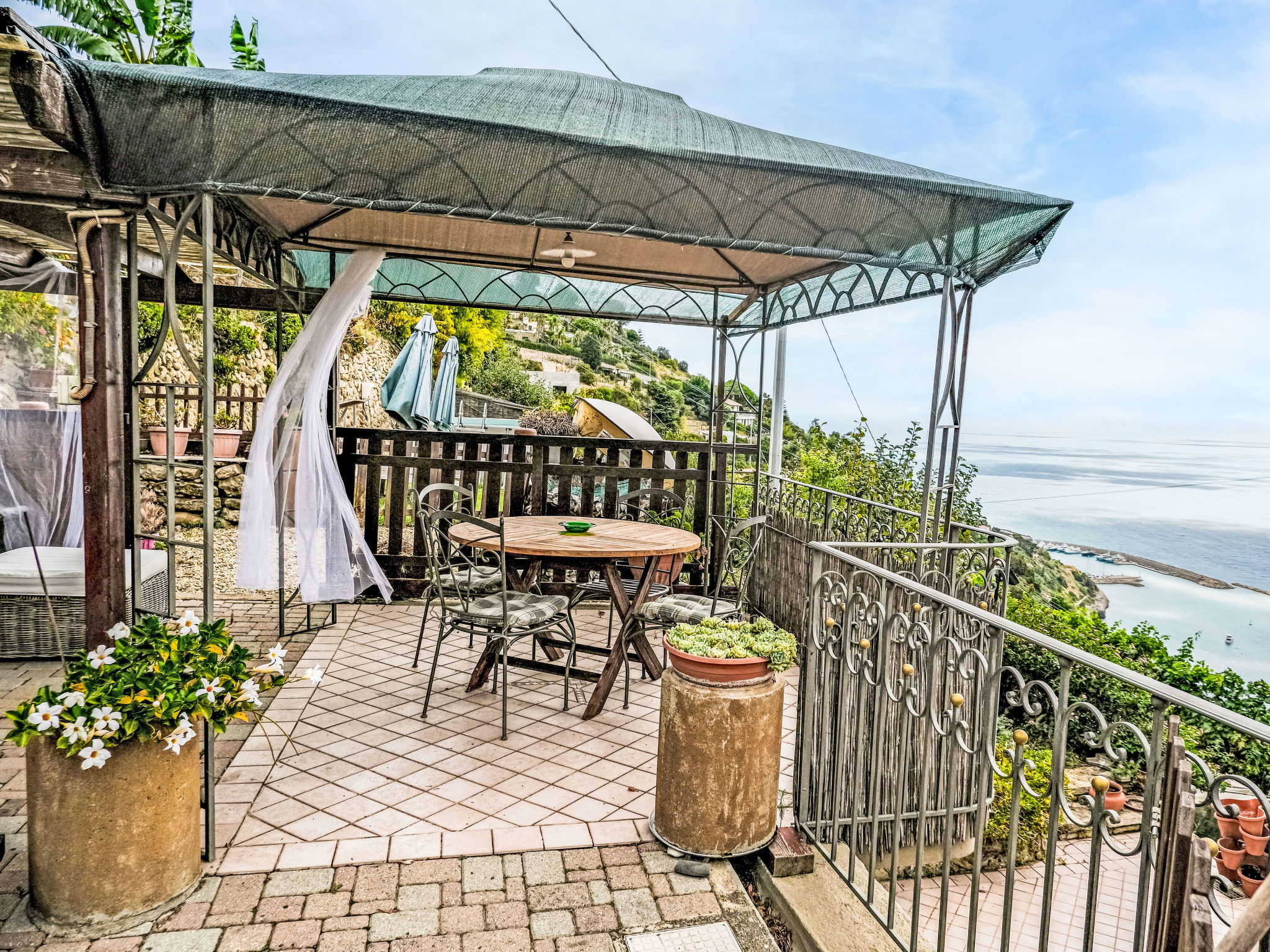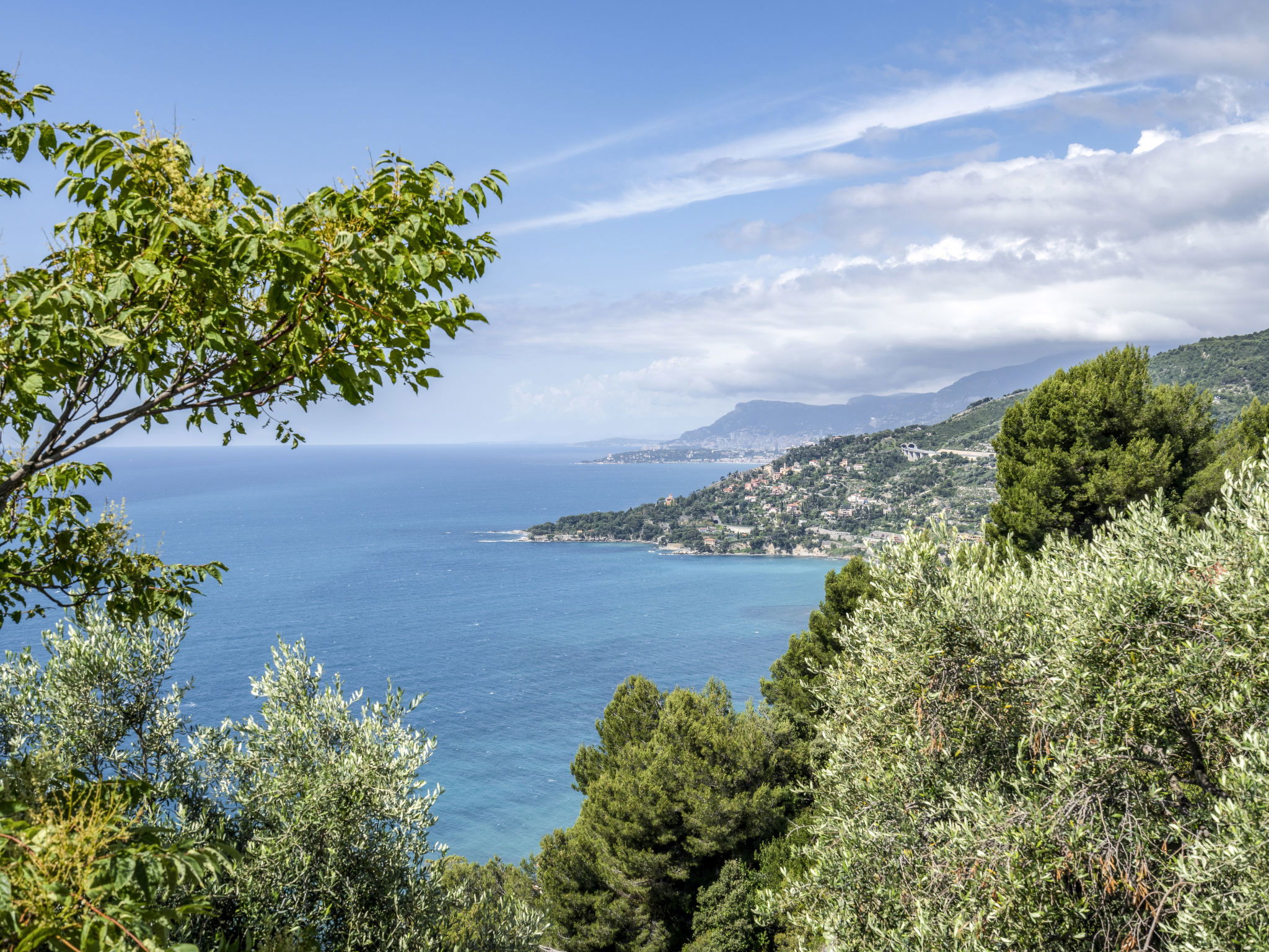 Very beautiful, comfortable 2-family house "Villa Ginestra", 2 storeys. 2.5 km from the centre of Ventimiglia, 5 km from the centre of Bordighera, 13 km from the centre of Menton (Côte d'Azur), in a secluded, sunny, elevated position on a slope, 2.4 km from the sea, in the countryside. For shared use: large, well-kept terraced garden, 5'000 m2 with plants and trees. Private: swimming pool (above ground) (4 x 2 m, depth 120 cm, seasonal availability: 15.May. - 15.Oct.). Pergola, garden furniture. 150 m long steep motor access. Stepped path to the house. Roofed, parking (for 2 cars). Shop 1.8 km, supermarket 2.5 km, restaurant 1.8 km, bus stop 3.1 km, railway station "Ventimiglia" 3.5 km, sandy beach 2.4 km. Marina 9 km, golf course (18 hole) 25 km. Please note: the owner lives in the same residence.