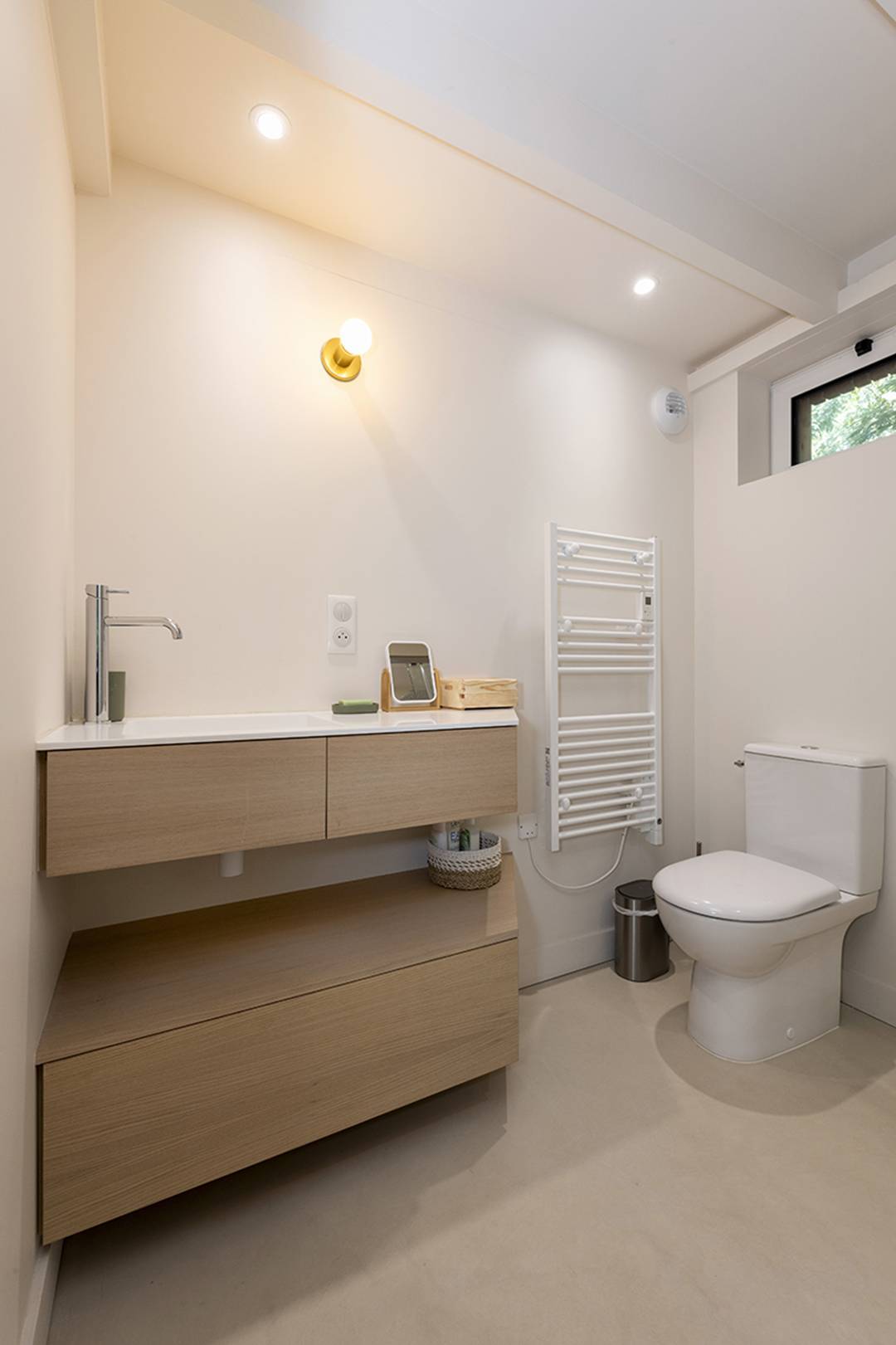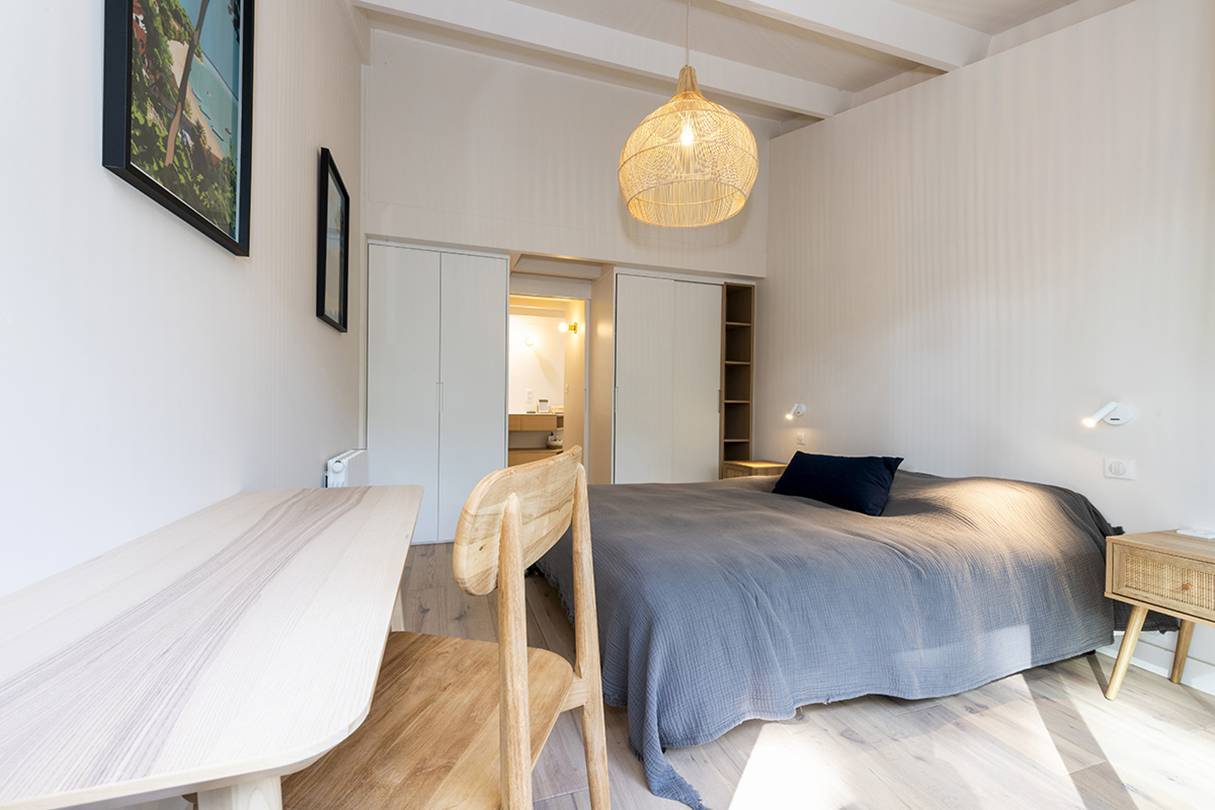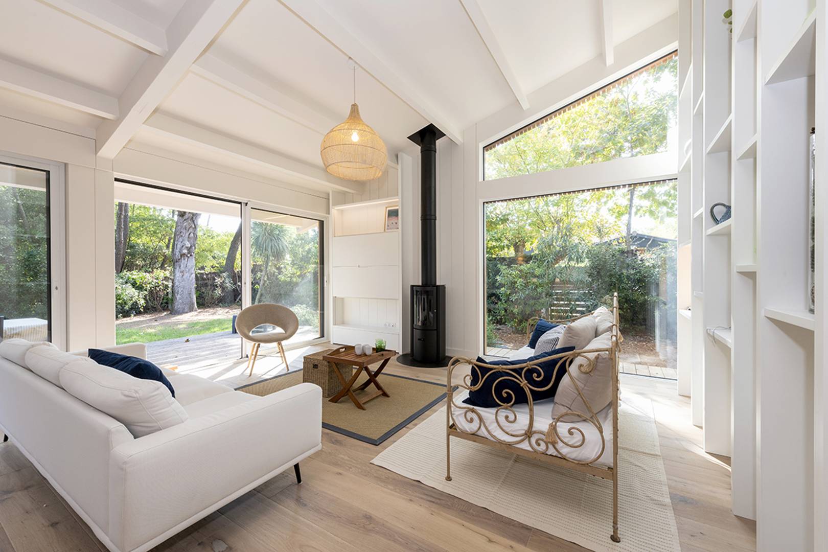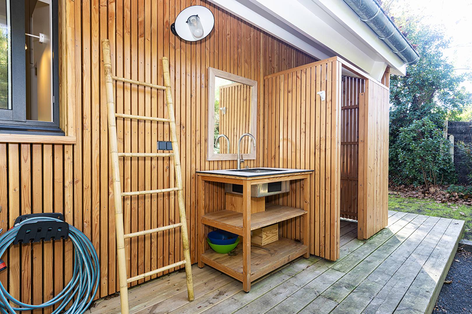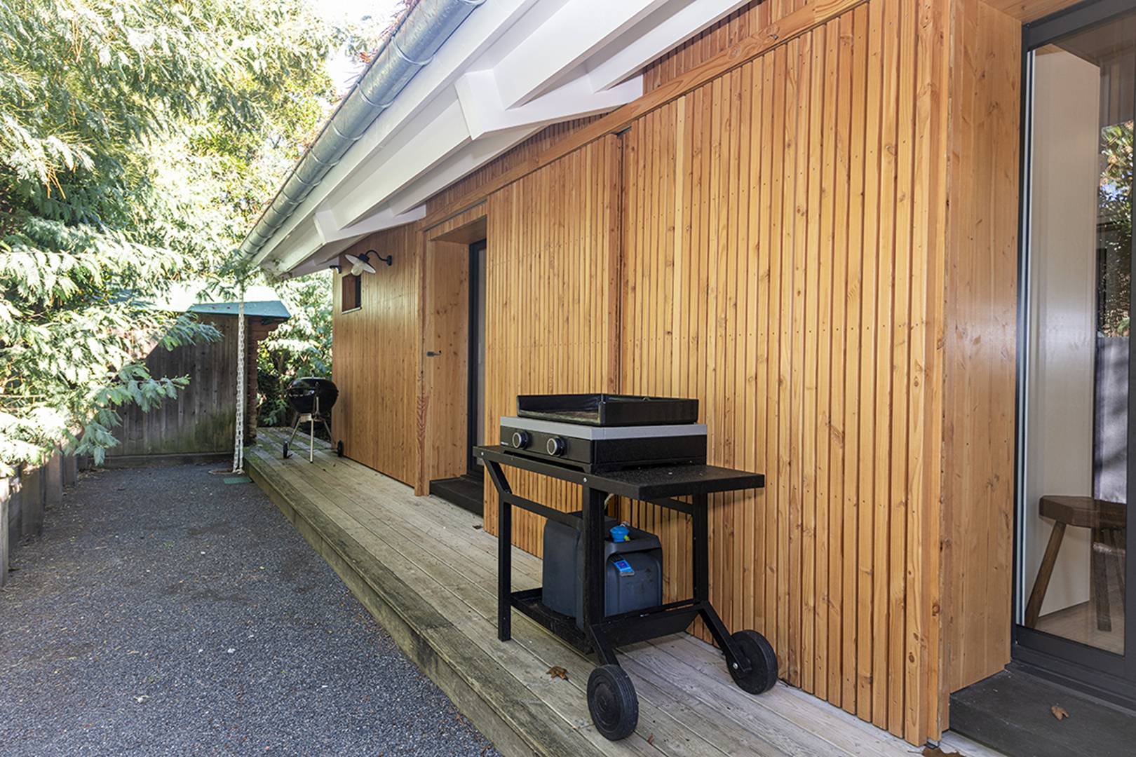 The living room features a beautiful wood-burning stove (wood not provided), which is very pleasant in the off-season. The outdoor areas are very comfortable, with access to a proper outdoor shower, a griddle, a BBQ, a shaded terrace for meals, a parking space for your car, a bicycle storage area, and a pétanque court at the rear of the house.