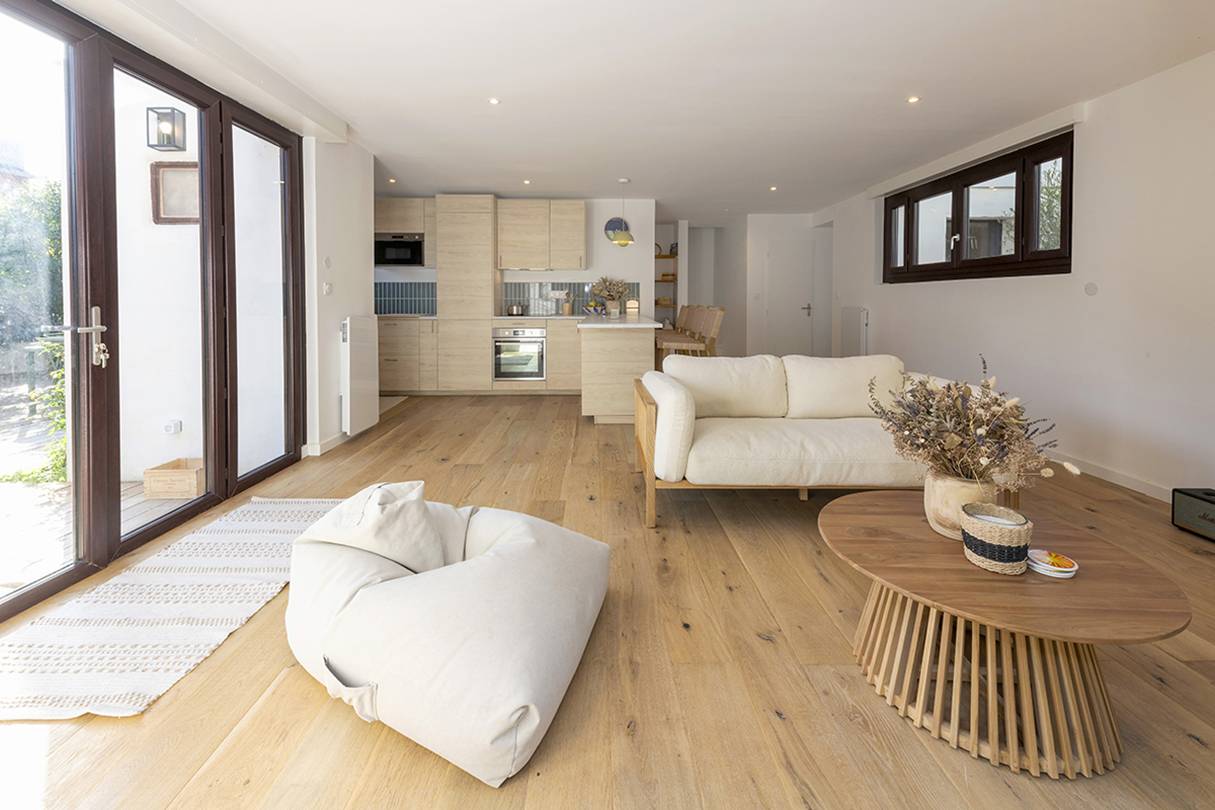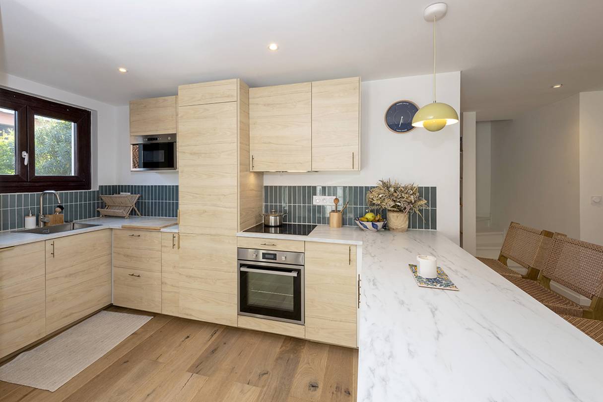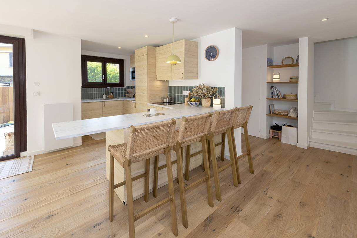 Completely renovated in 2023, this 120m² house features 4 bedrooms, a bright living room with an open-plan kitchen equipped with a breakfast bar. On the ground floor, you will find a beautiful master suite with an en-suite shower room including a walk-in shower and toilet, a laundry room with a washer-dryer, and a separate toilet.