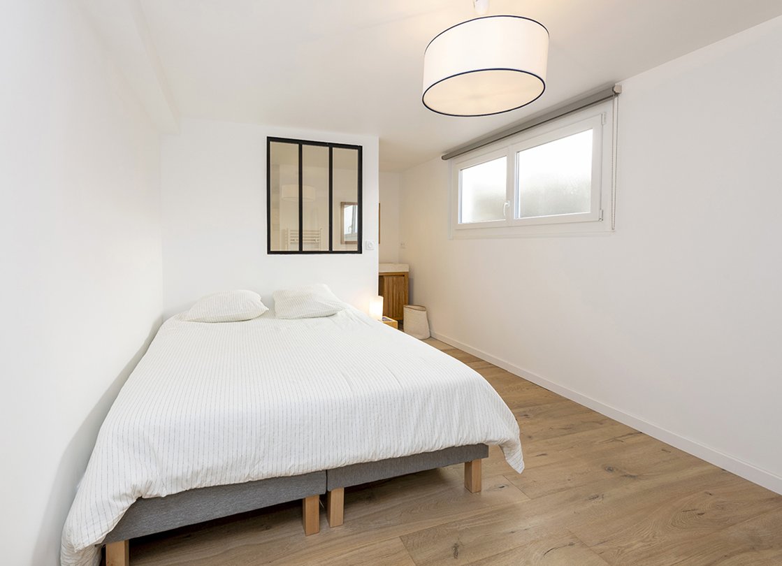 - A flexible bedroom: 2 single beds (80cm) or 1 double bed (160cm) with a desk area