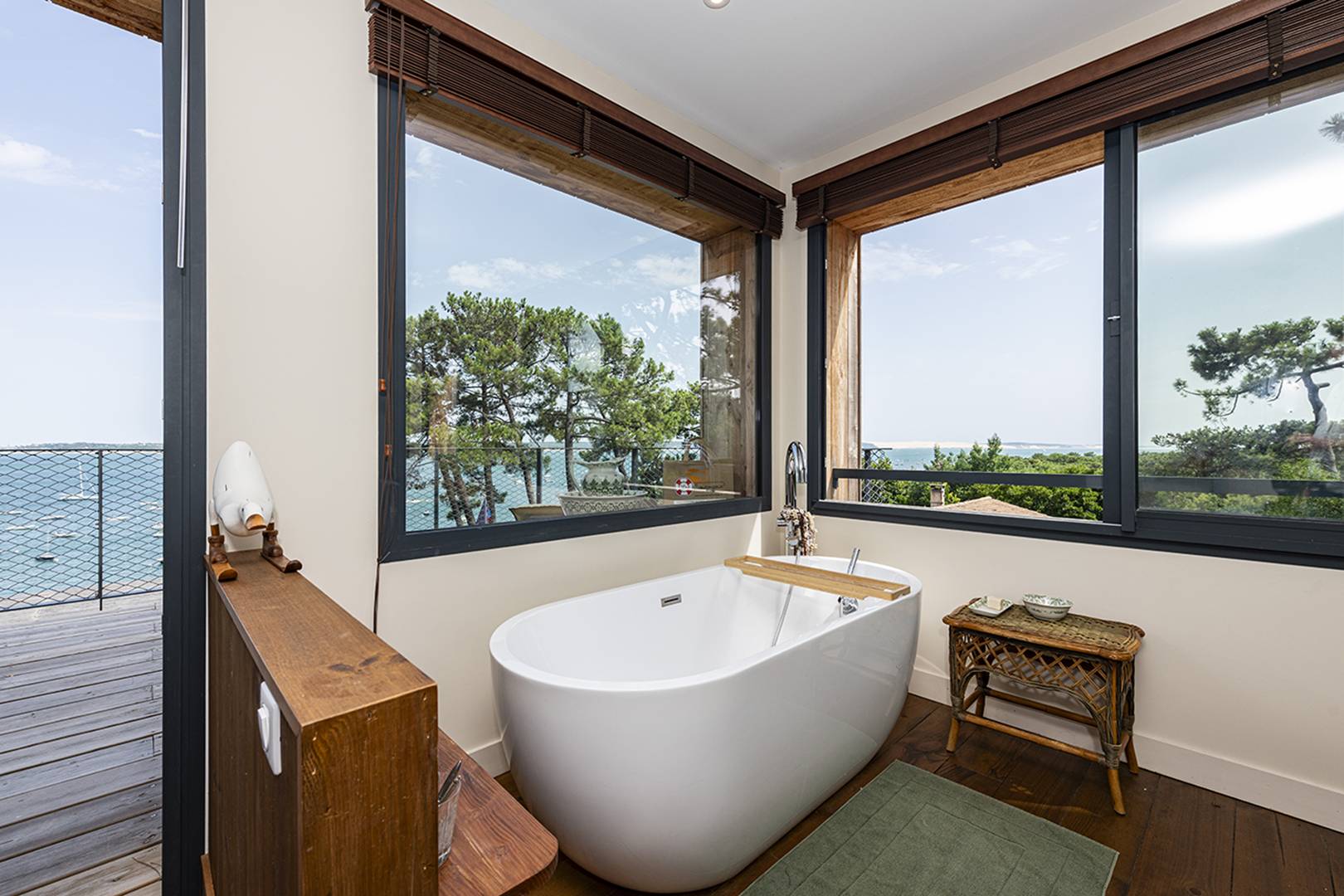 Cette sublime villa saura sans aucun doute vous faire passer des vacances inoubliables. L'une des plus belle vue de la Presqu’ile avec une très grande terrasse de 100m2 donnant sur le Bassin d'Arcachon nichée dans un écrin de verdure au calme à quelques pas de la plage des Américains. Un environnement calme et privilégié pour que vous puissiez profiter en toute tranquillité.