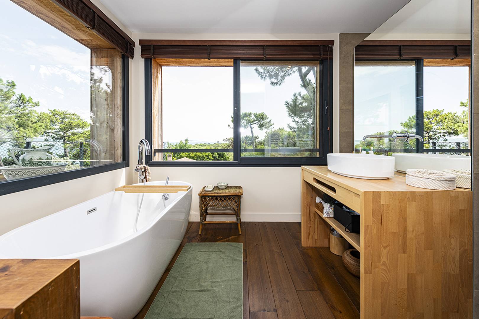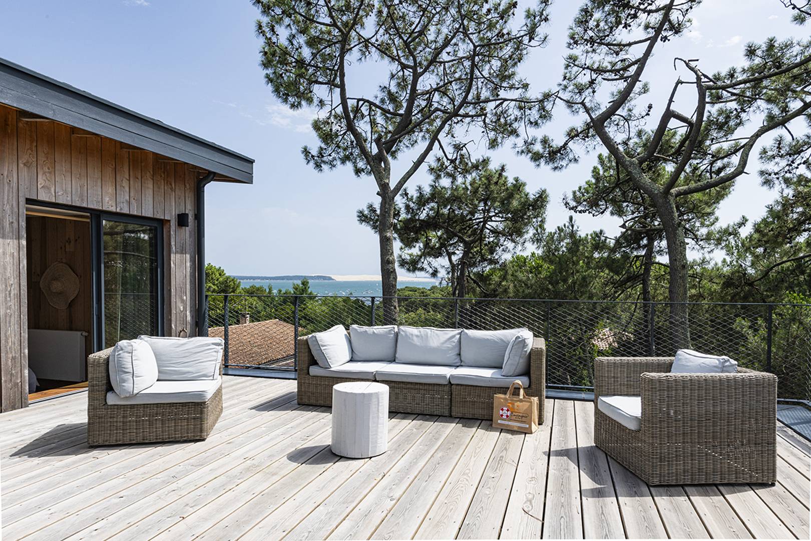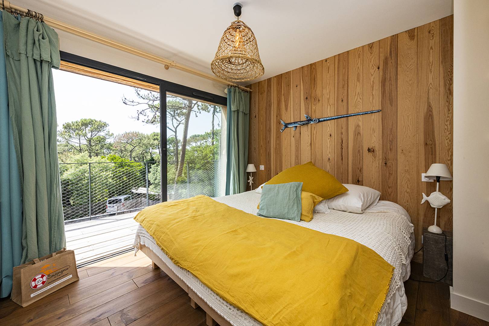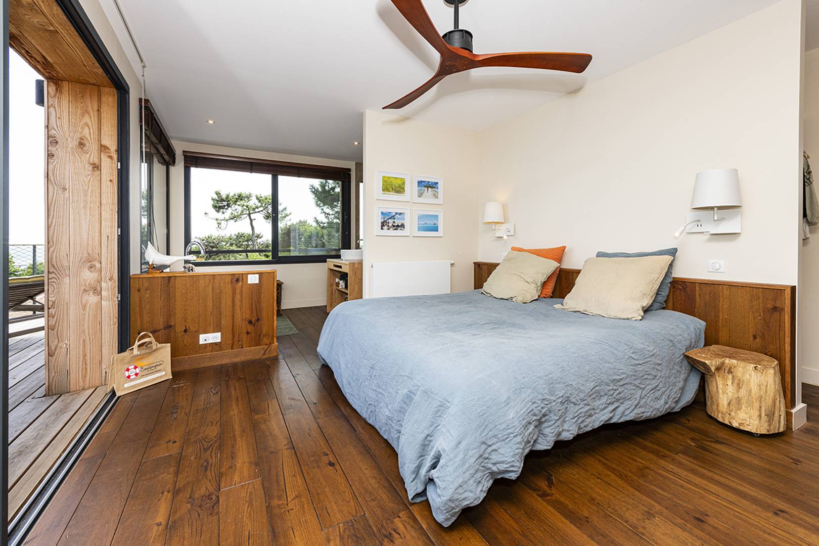 La villa dispose de 4 chambres avec salle d'eau ou salle de bain. Une magnifique suite parentale (lit en 160) avec terrasse privée dans laquelle vous pourrez prendre des bains avec vue sur la Dune du Pyla. Vous aurez également 3 autres chambres avec des salle d'eau composée de douche à l'italienne, l'une d'elle disposant d'une terrasse privée de 60m2 en plein milieu de la forêt de pin pour profiter des couchers de soleil.