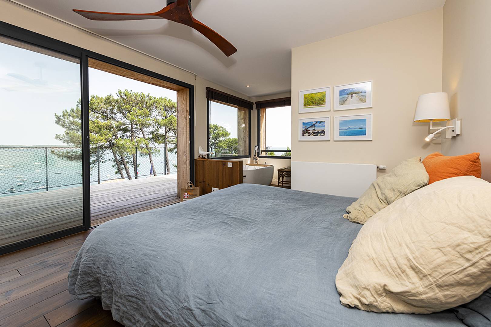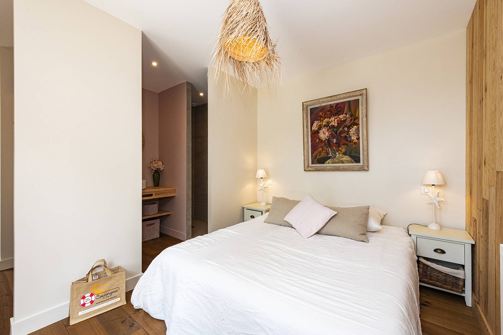 - 1 Suite avec un lit en 160, une salle de bain avec baignoire et terrasse donnant sur la Dune du Pyla.