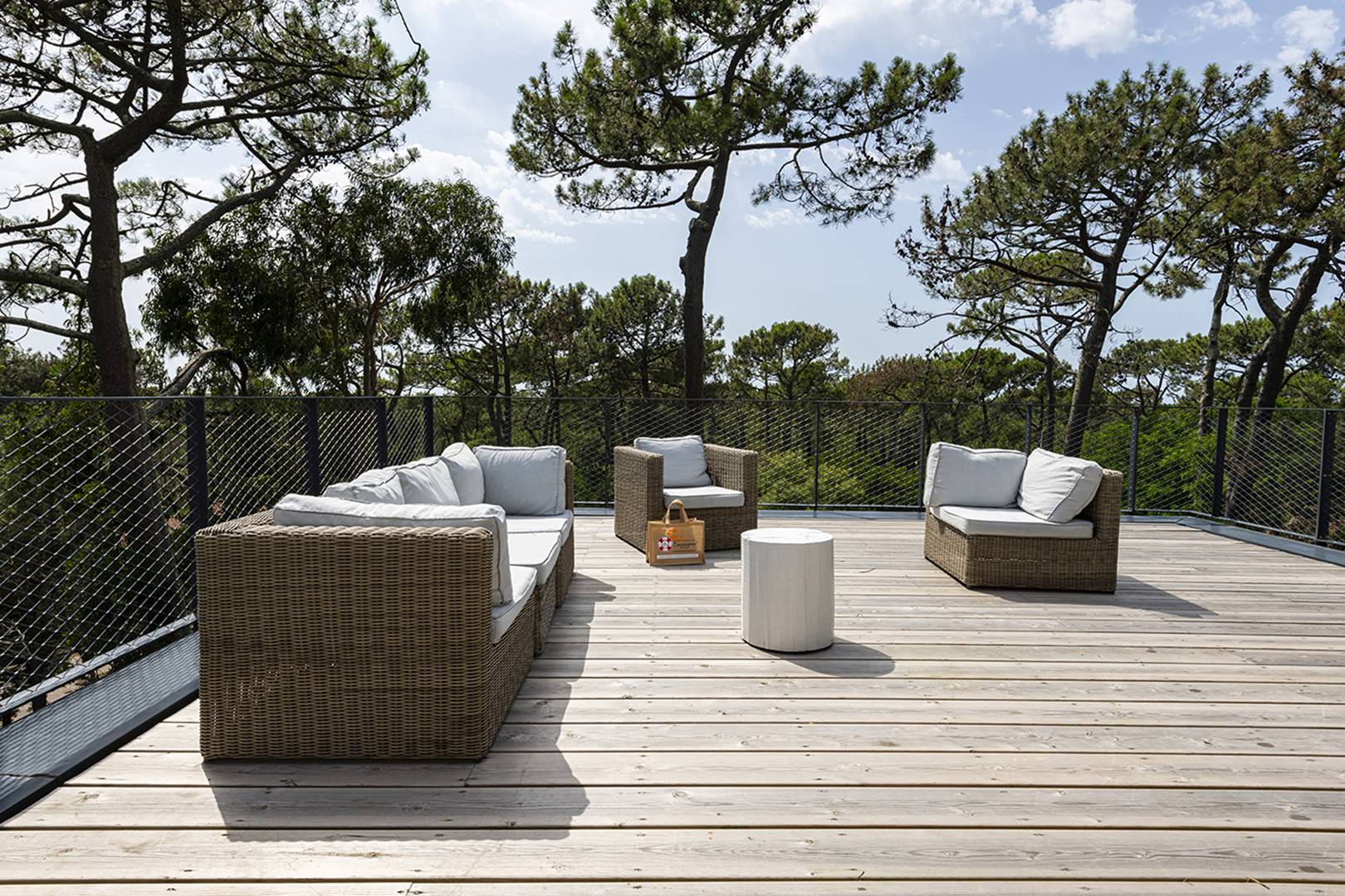 - 1 Suite avec un lit en 160, une salle d'eau avec douche et une terrasse donnant côté Océan sur la forêt de pins.