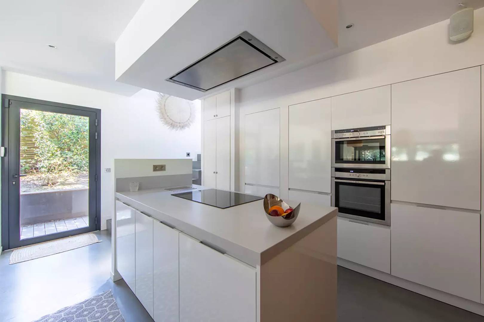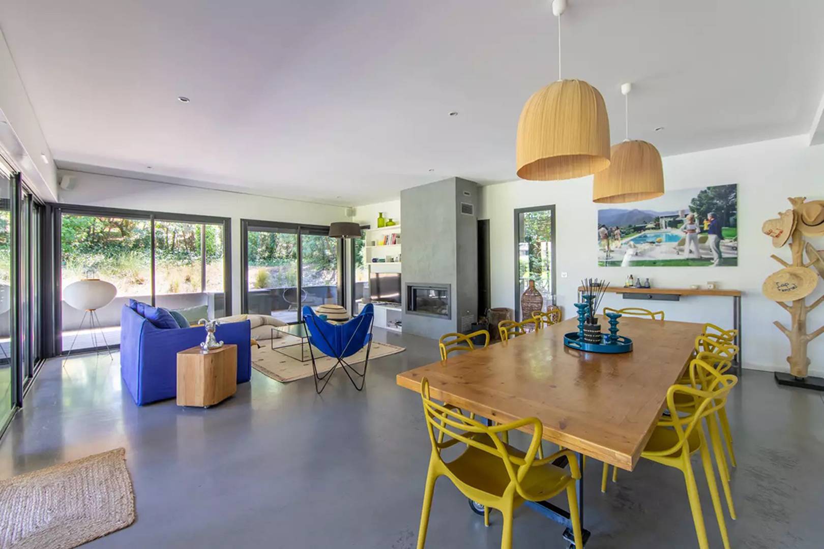 Un large salon/salle à manger cosy entièrement tourné vers les extérieurs vous permettra de passer d'agréables moments en famille. La pièce de vie est spacieuse et le poële à bois rajoute un côté chaleureux au salon. La cuisine américaine est entièrement équipée avec tout le nécessaire (machine à café Nespresso, plaques induction, four, bouilloire, micro-onde, réfrégirateur, lave-vaisselle, machine à laver le linge).