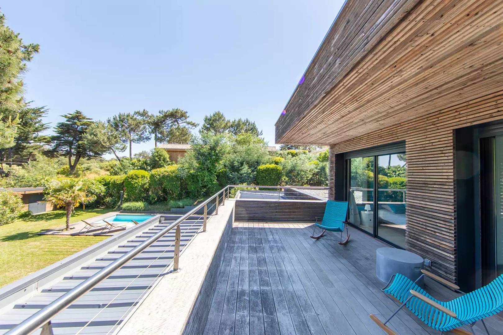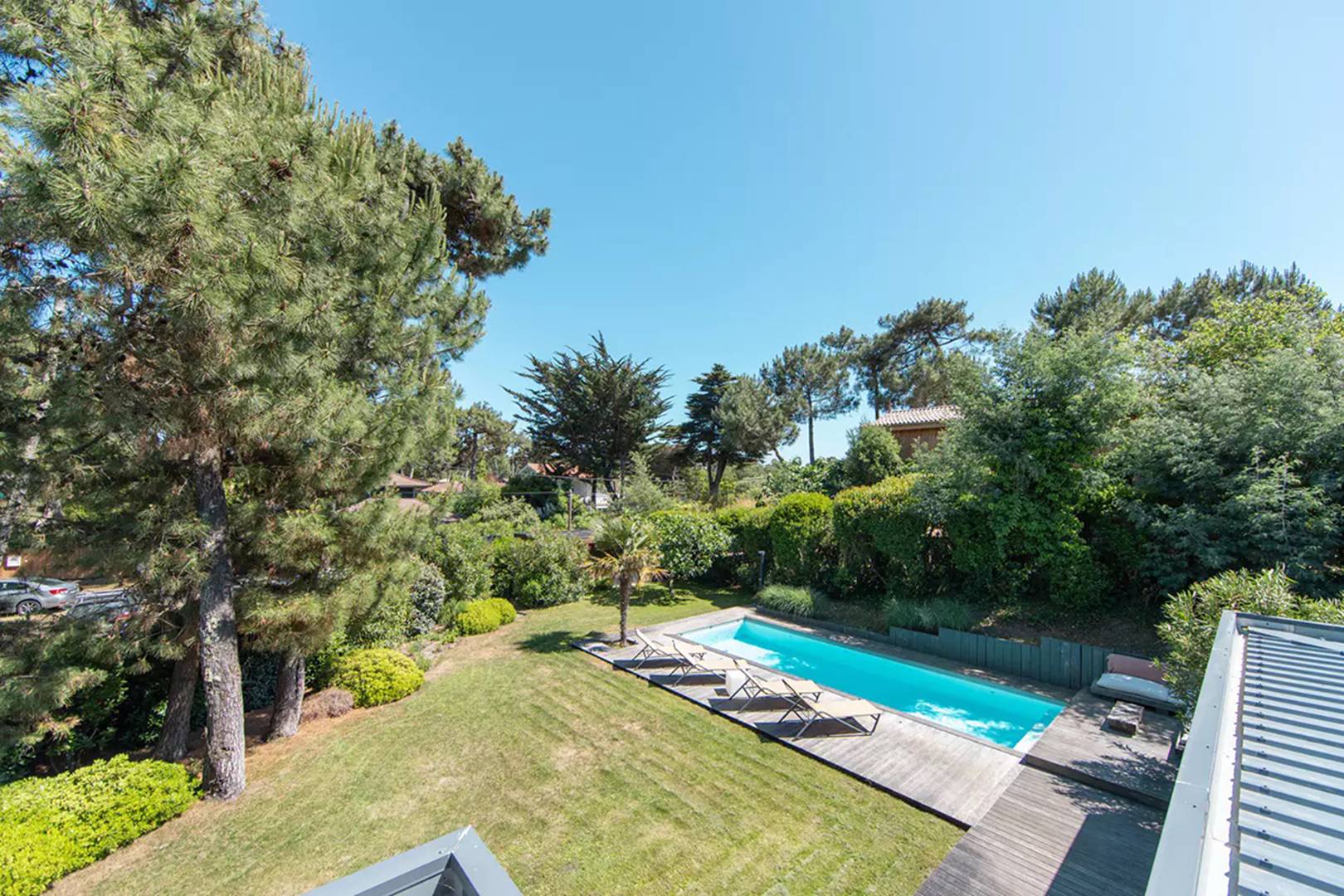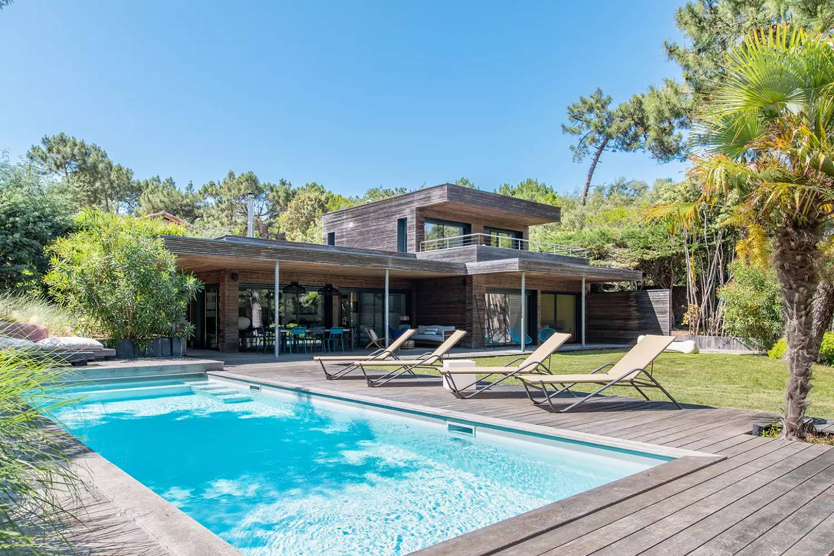 Entourée d'un écrin de verdure cette villa de standing est idéalement située en plein coeur du Cap-Ferret.