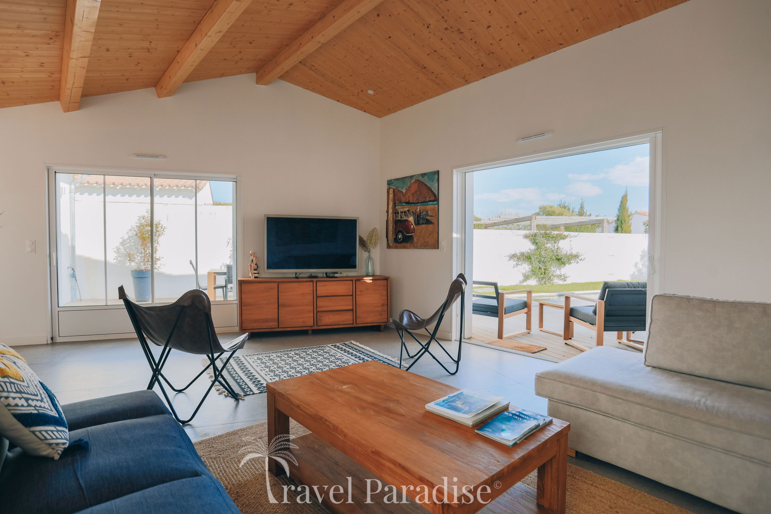 Welcome to Villa Blanche, a new villa designed to offer comfort and tranquillity. Entirely enclosed and sheltered from view, it features a landscaped garden, a relaxation patio and a heated swimming pool, perfect for fully enjoying your stay.
